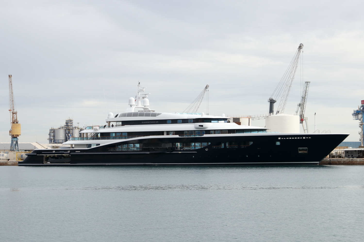 Construit en 2002 par le chantier naval allemand de Lürssen basé à Brême au prix catalogue de $180 millions, le super yacht Carinthia VII de 97,20 m faisait escale. Comme tout le monde, nous avons profité de la semaine du Black Friday pour réserver une semaine de croisière au tarif promotionnel de €1,4 million, malheureusement pour nous, le paiement sans contact n’a pas fonctionné.