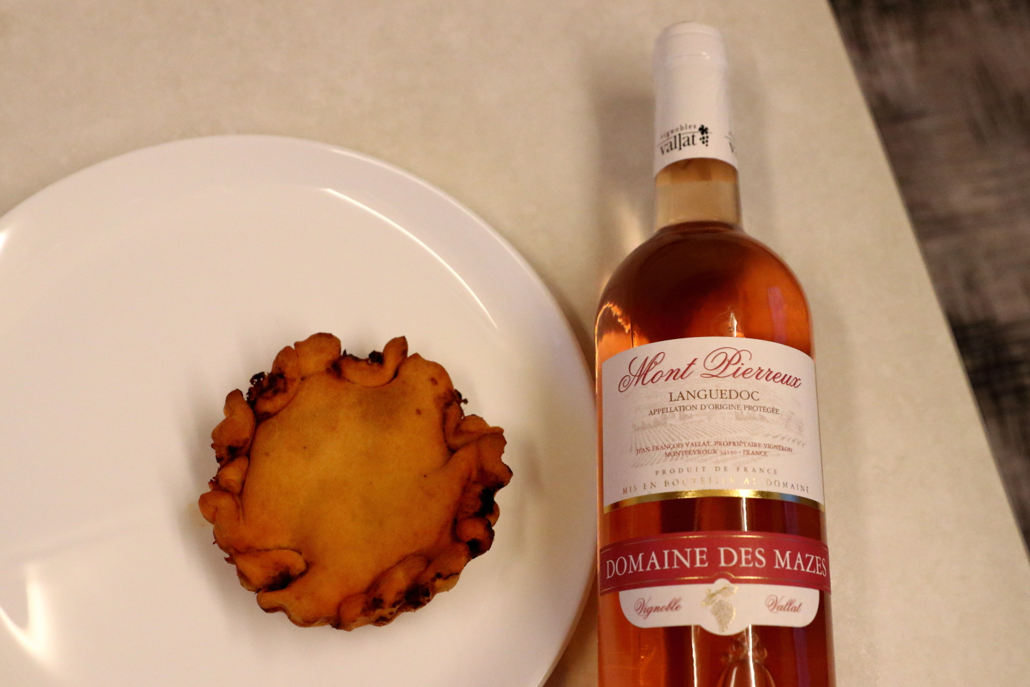 Ce très bon rosé de Montpeyroux de 2022 a parfaitement accompagné la Tielle, tarte locale fourrée de sauce tomate et d’émincé de poulpe. Autre spécialité, les Zézettes, un biscuit au moment du café.