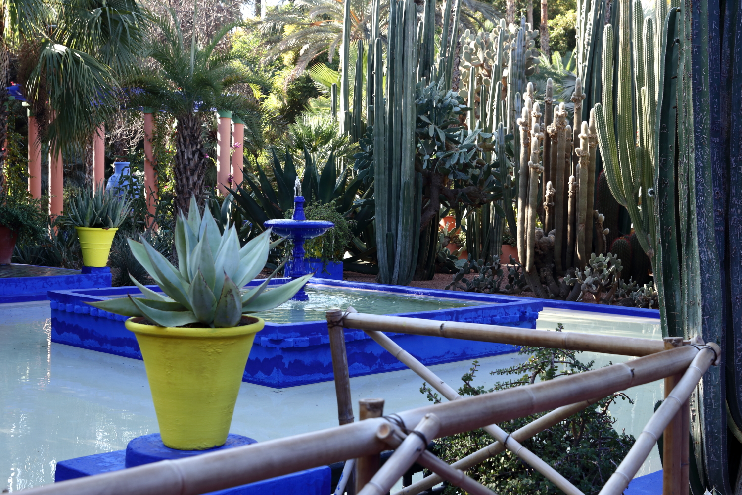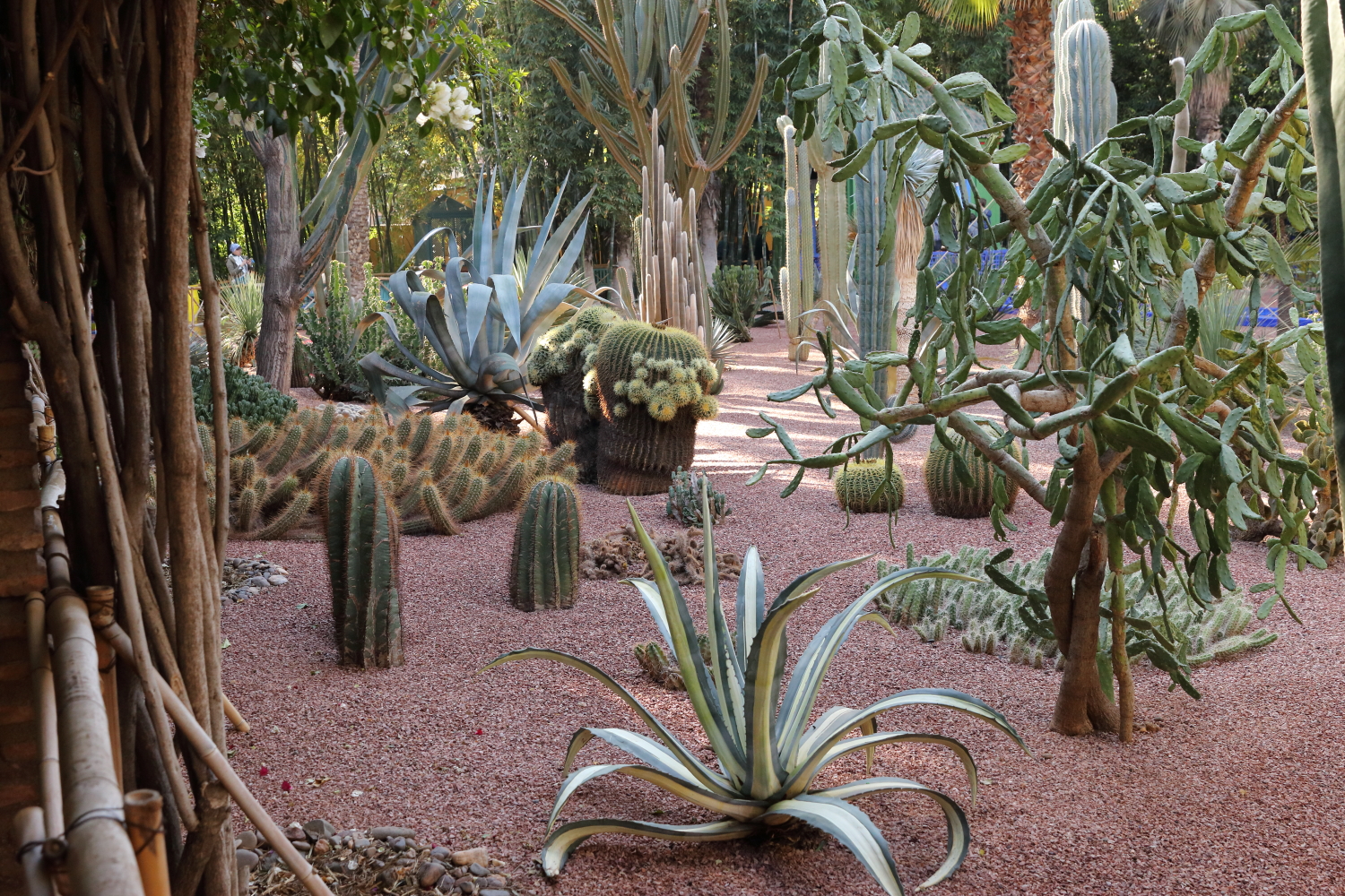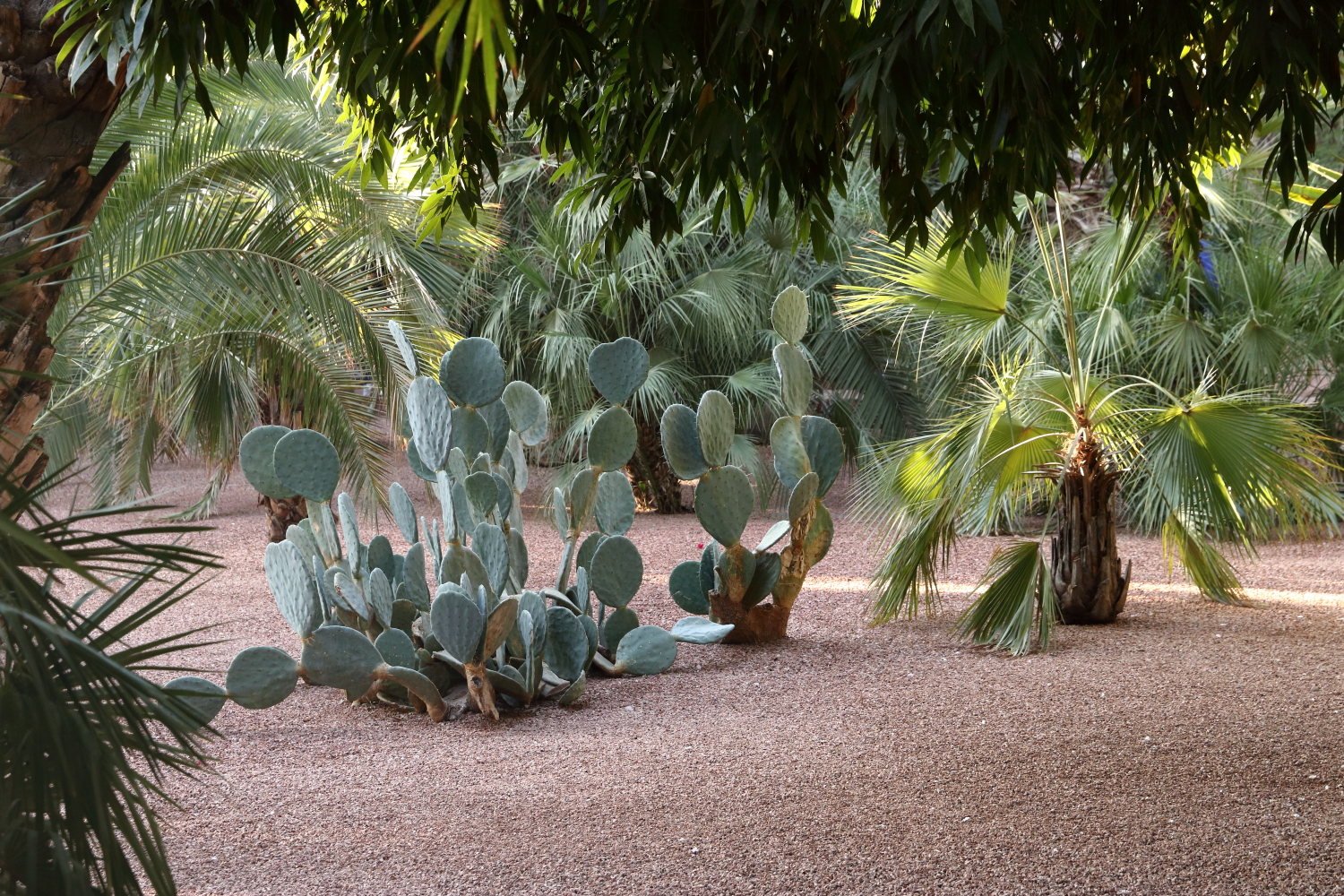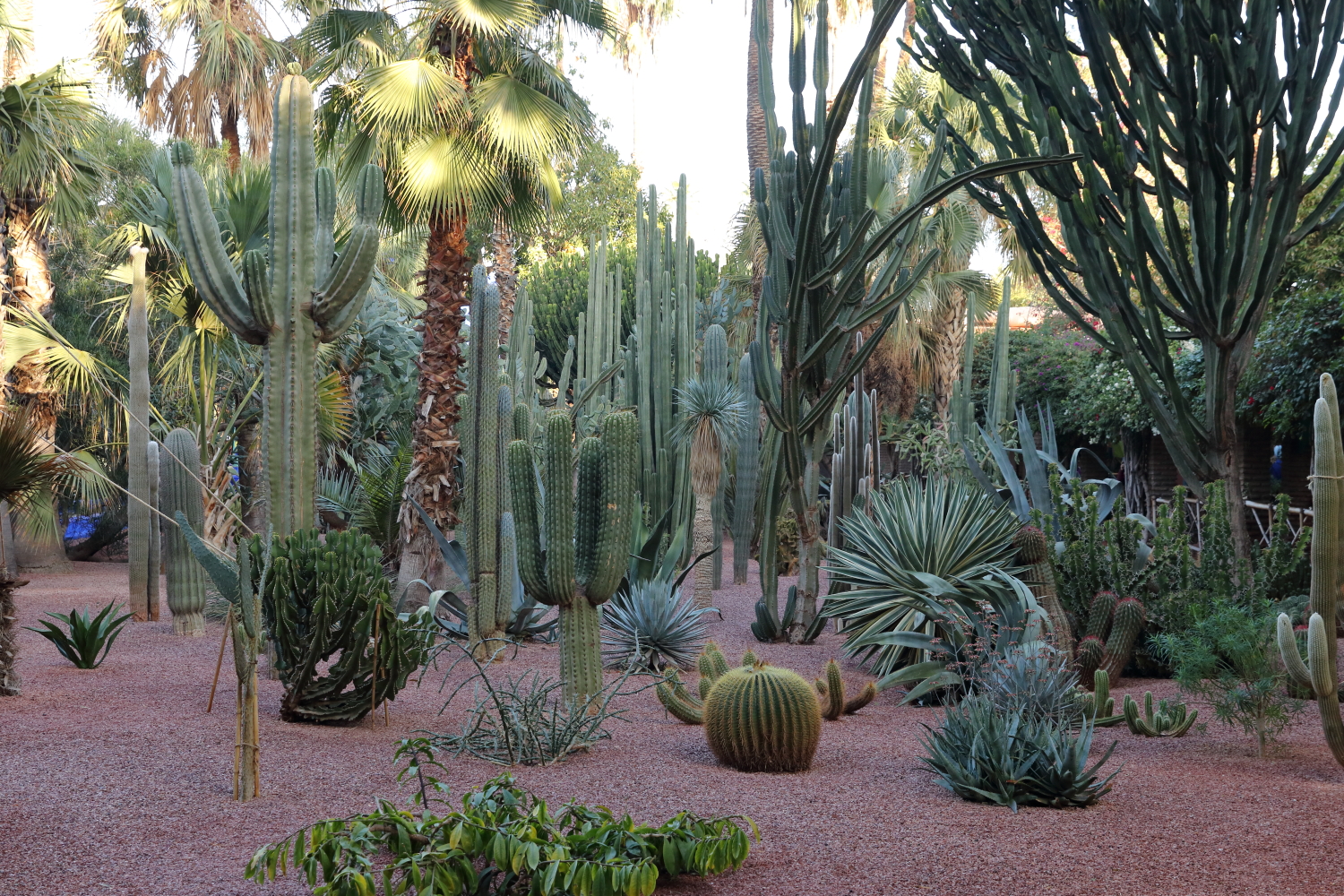Si l’ensemble de l’aménagement est un écrin d’une exceptionnelle beauté, les plantes en sont le couronnement par l’aboutissement consenti, par leurs formes, leurs variétés et leurs tailles. Petite parenthèse, sur les boulevards de Marrakech, on plante une variété de cocotier qui pousse beaucoup plus vite qu’un palmier dont le développement est très lent.