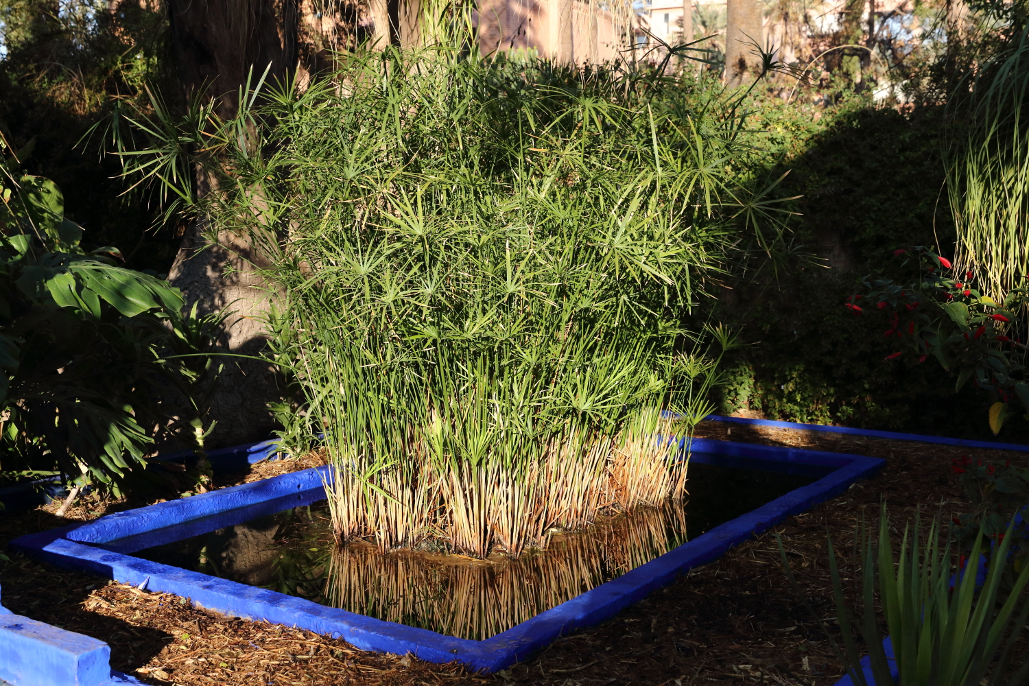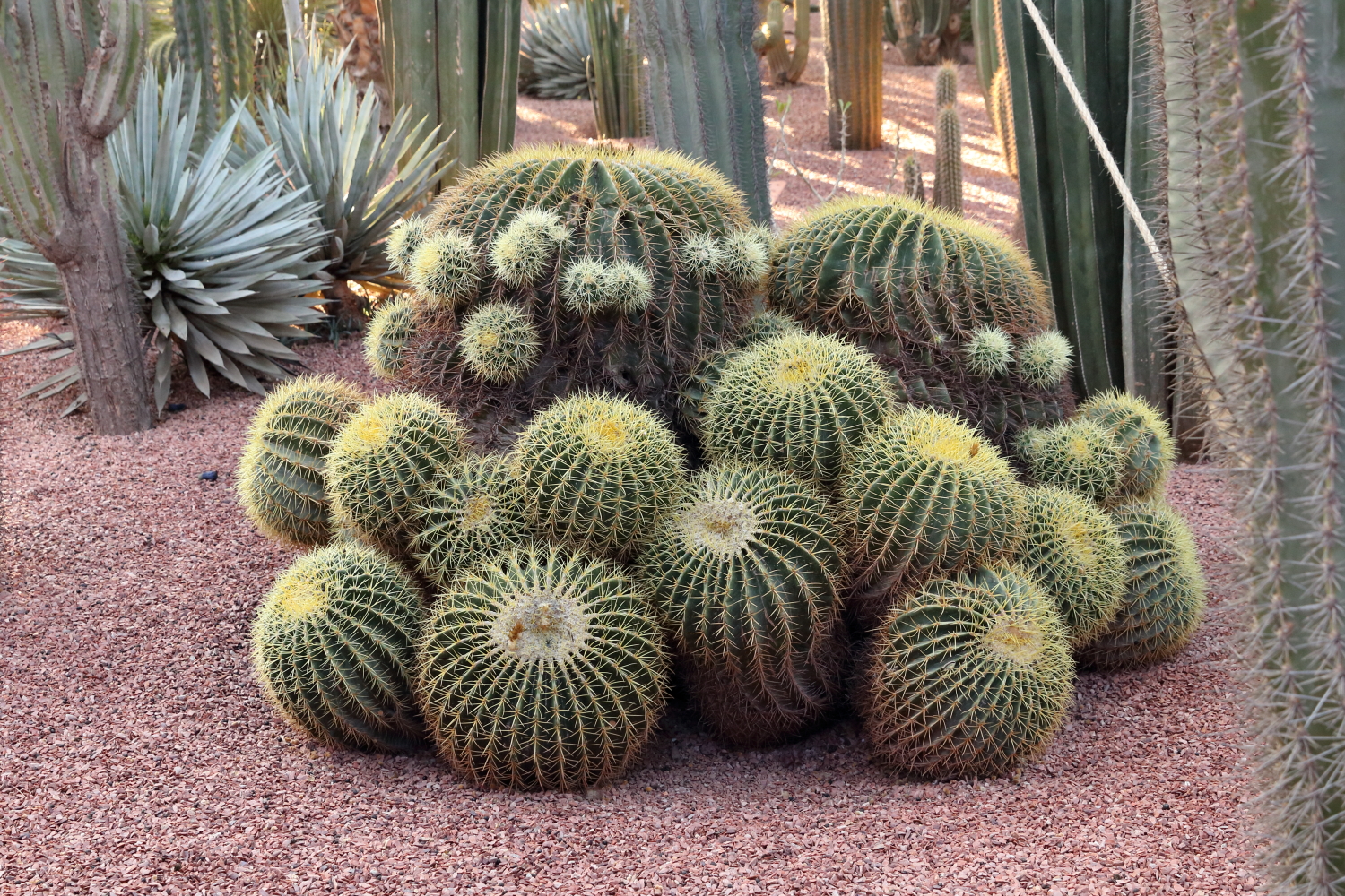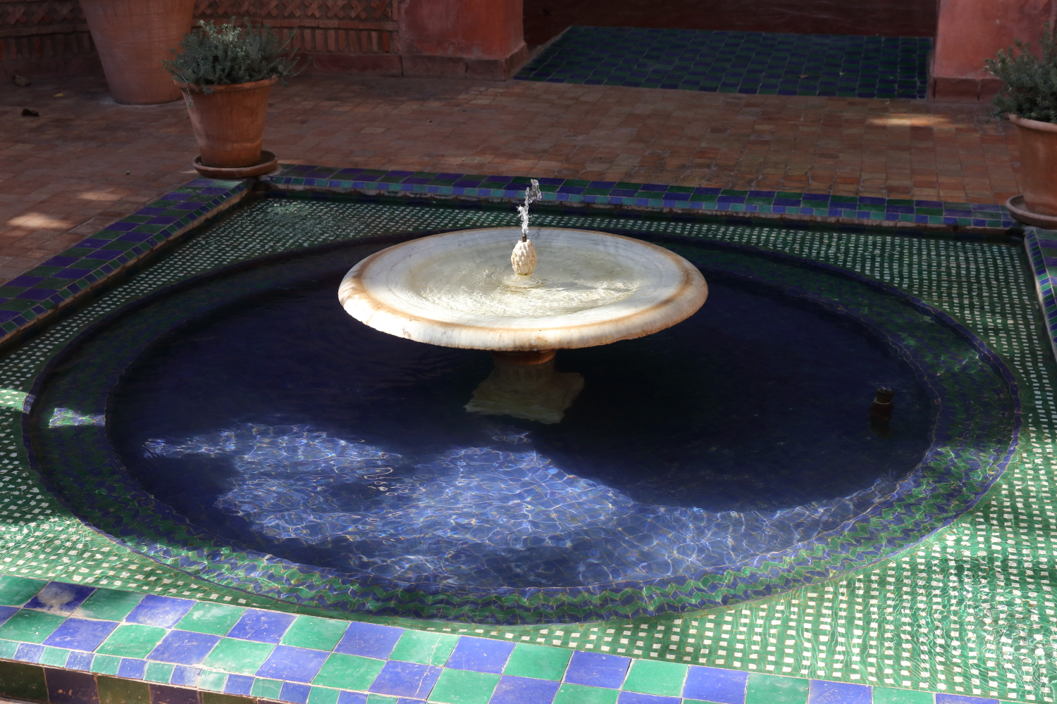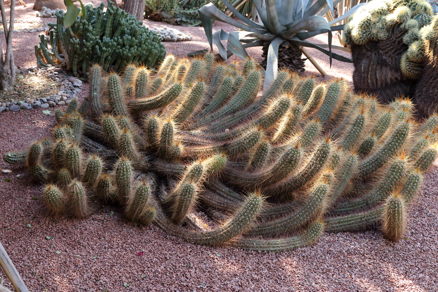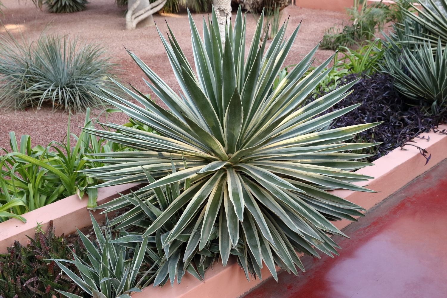 Si l’ensemble de l’aménagement est un écrin d’une exceptionnelle beauté, les plantes en sont le couronnement par l’aboutissement consenti, par leurs formes, leurs variétés et leurs tailles. Petite parenthèse, sur les boulevards de Marrakech, on plante une variété de cocotier qui pousse beaucoup plus vite qu’un palmier dont le développement est très lent.