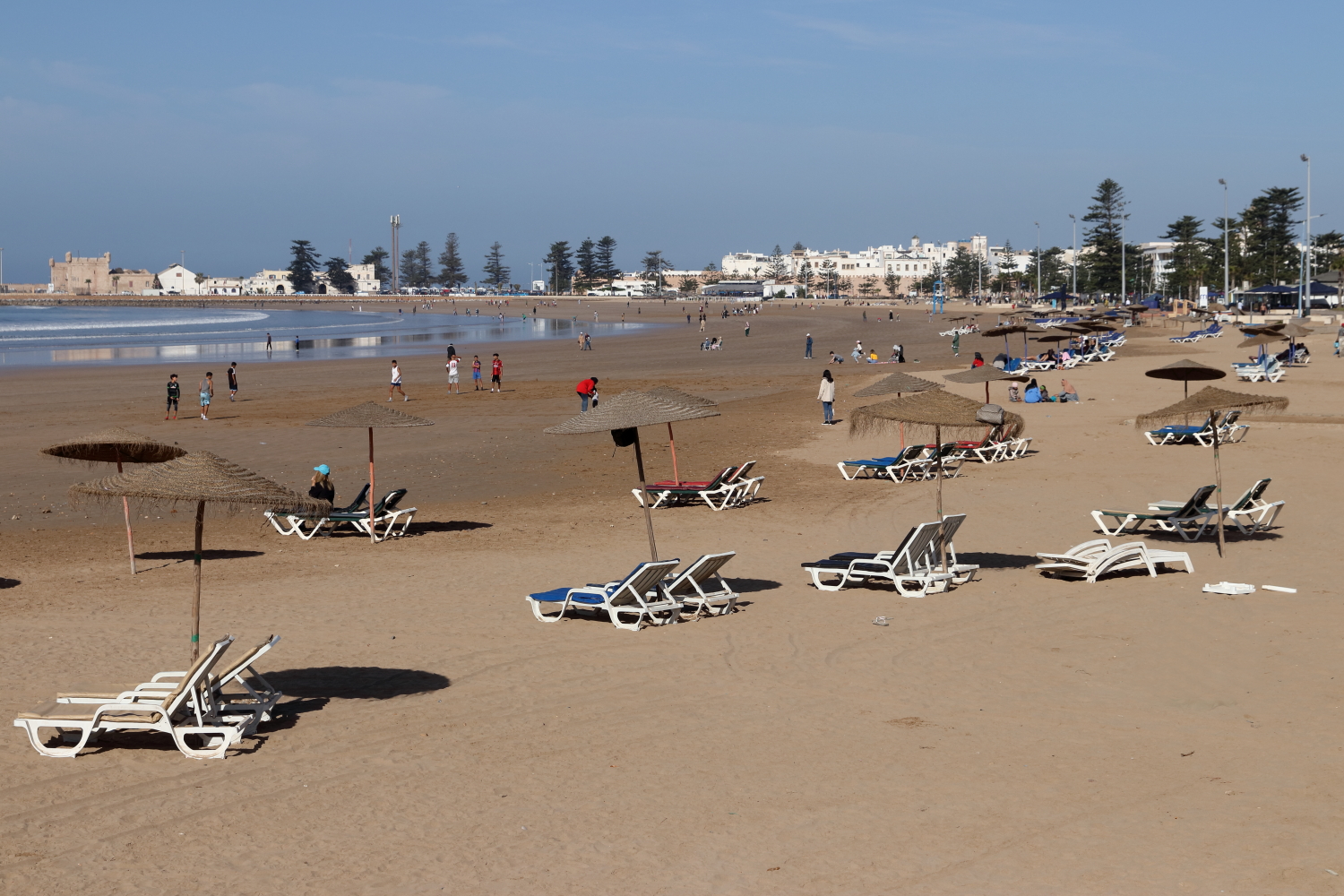 C’est une immense baie qui s’ouvre au visiteur en arrivant à Essaouira. La plage, son artère principale, invite au farniente ou à diverses activités. Qu’il soit de style moderne ou mauresque, l’aspect architectural est assez flatteur.