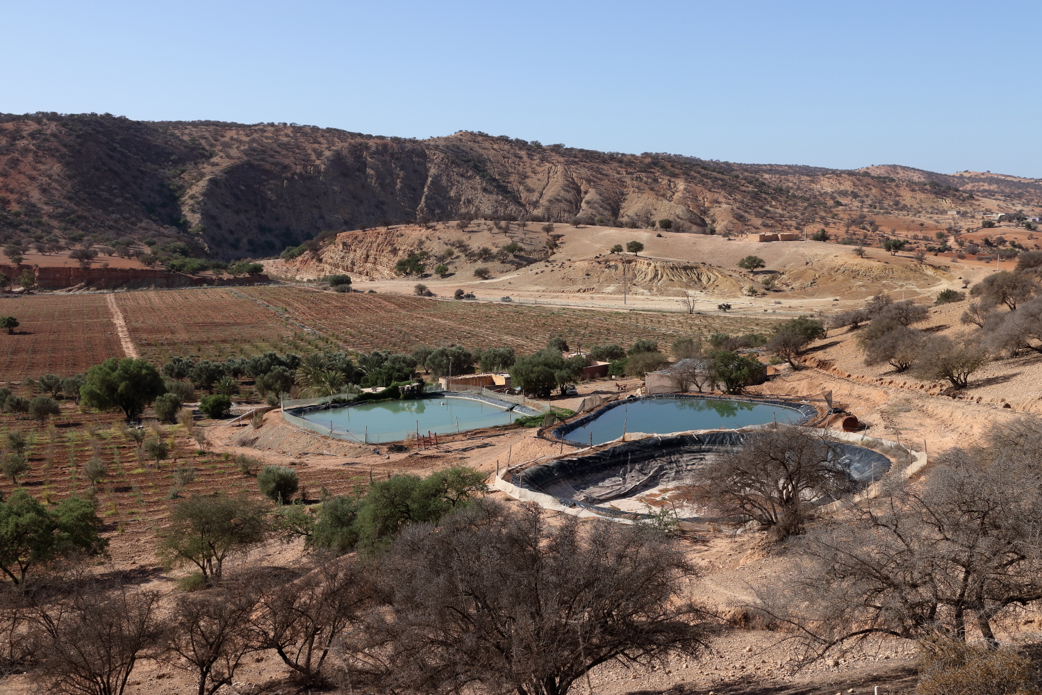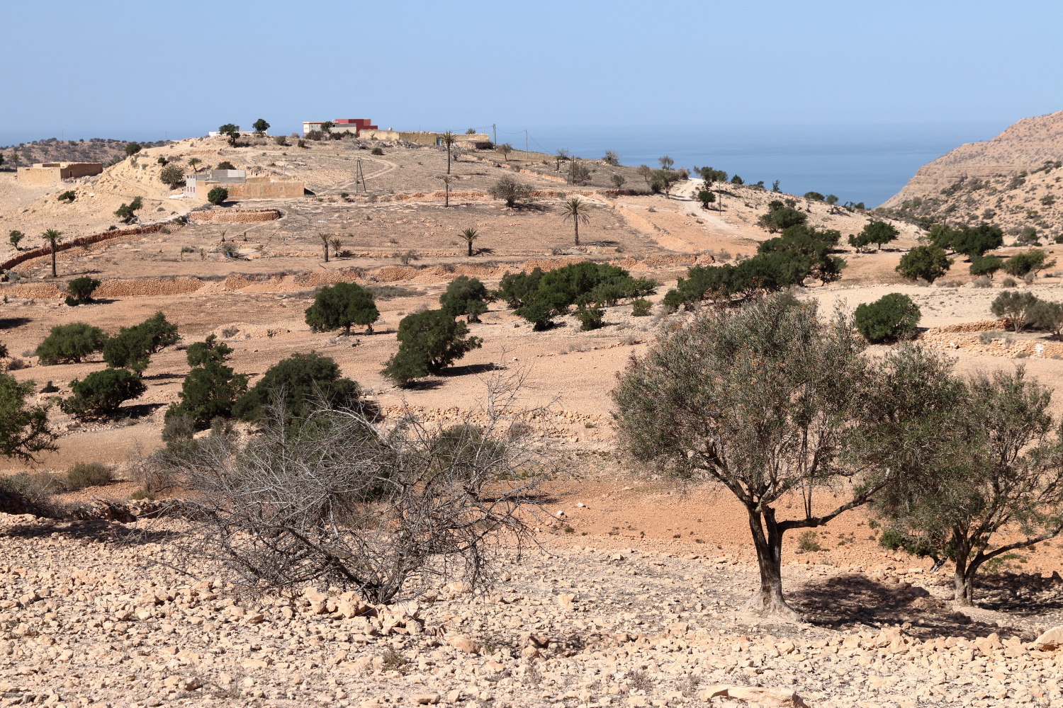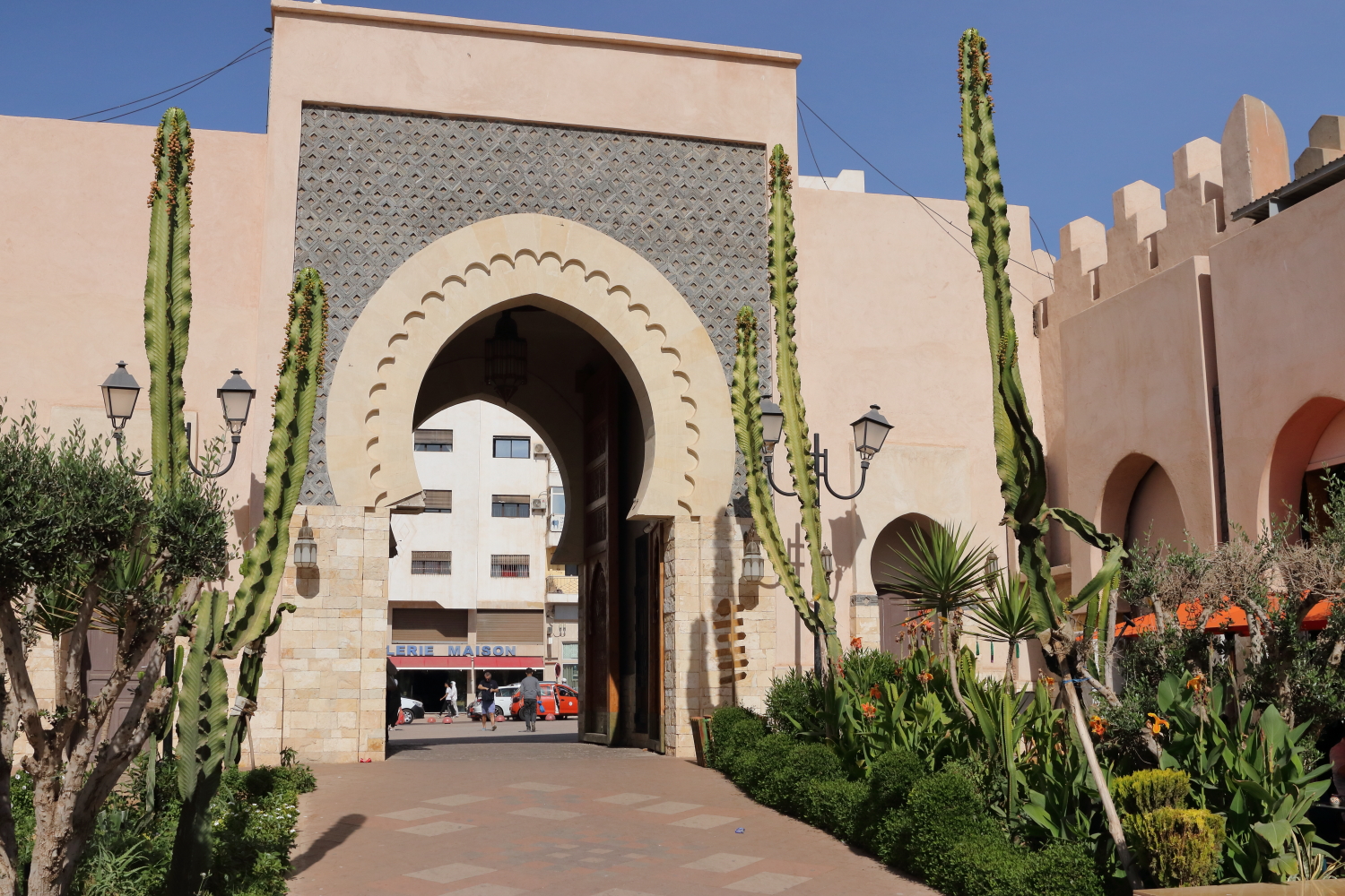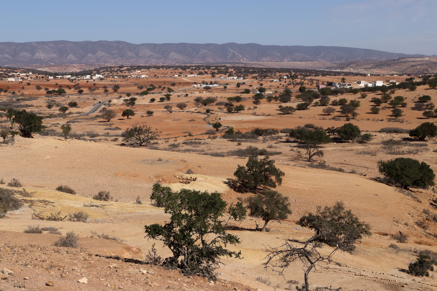 Agadir, la ville la plus importante du Sud marocain. Depuis Tanger, en comptant la boucle à Marrakech, nous avons parcouru 1100 km en 1 mois. Sur le flanc de la colline, l’écriture comporte un ordre bien précis, la traduction est dans la légende de la photo.