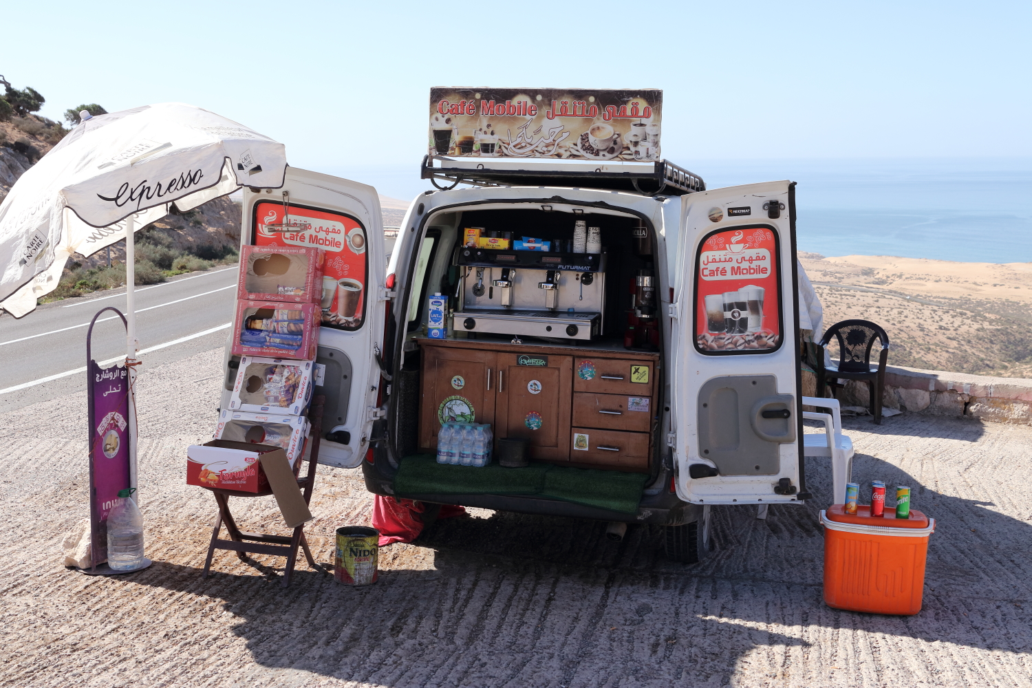 S’arrêter pour faire une pause-café, aucun problème, les cafés mobiles sont partout sur la route. Il n’y avait pas d’effet euphorisant avec cette boisson, les chèvres grimpent bien aux arbres.
