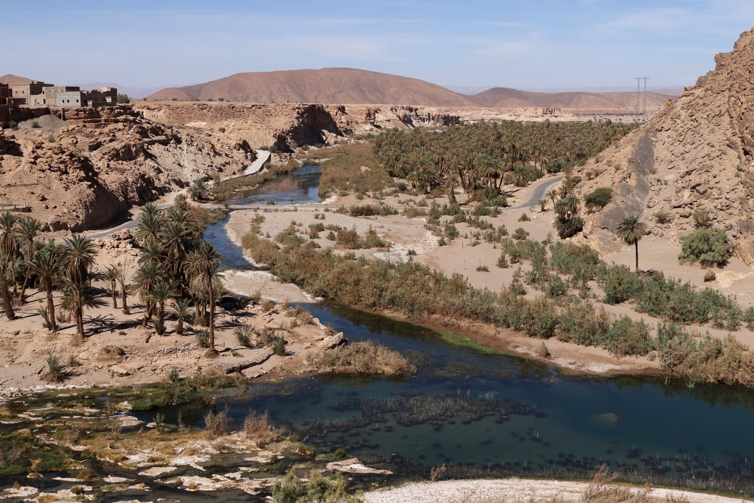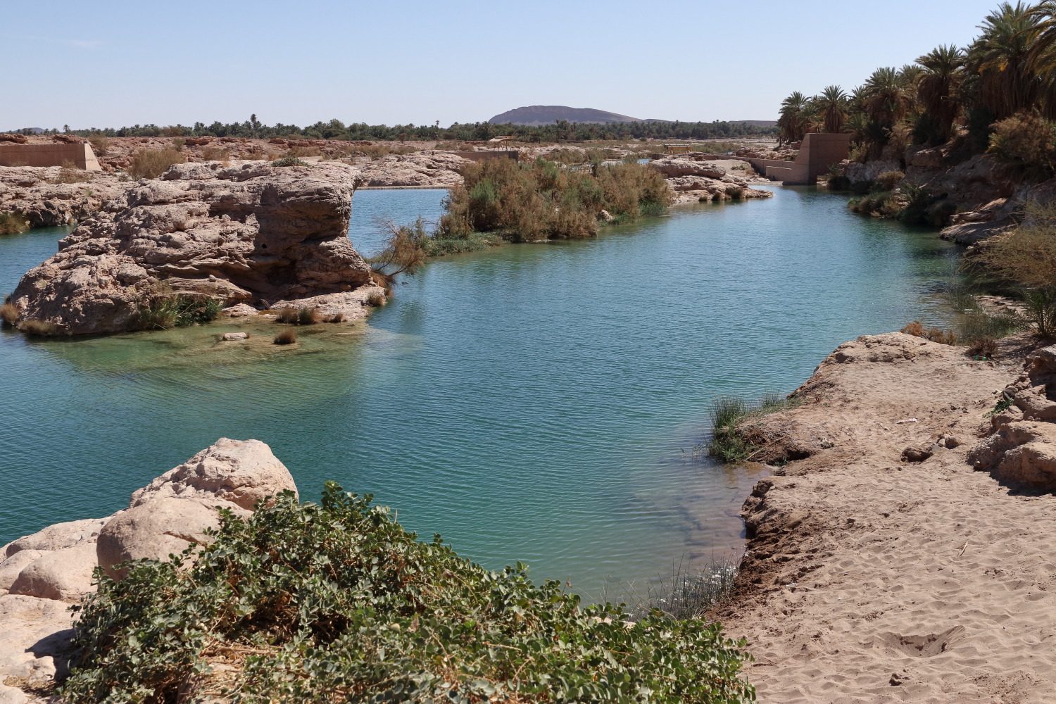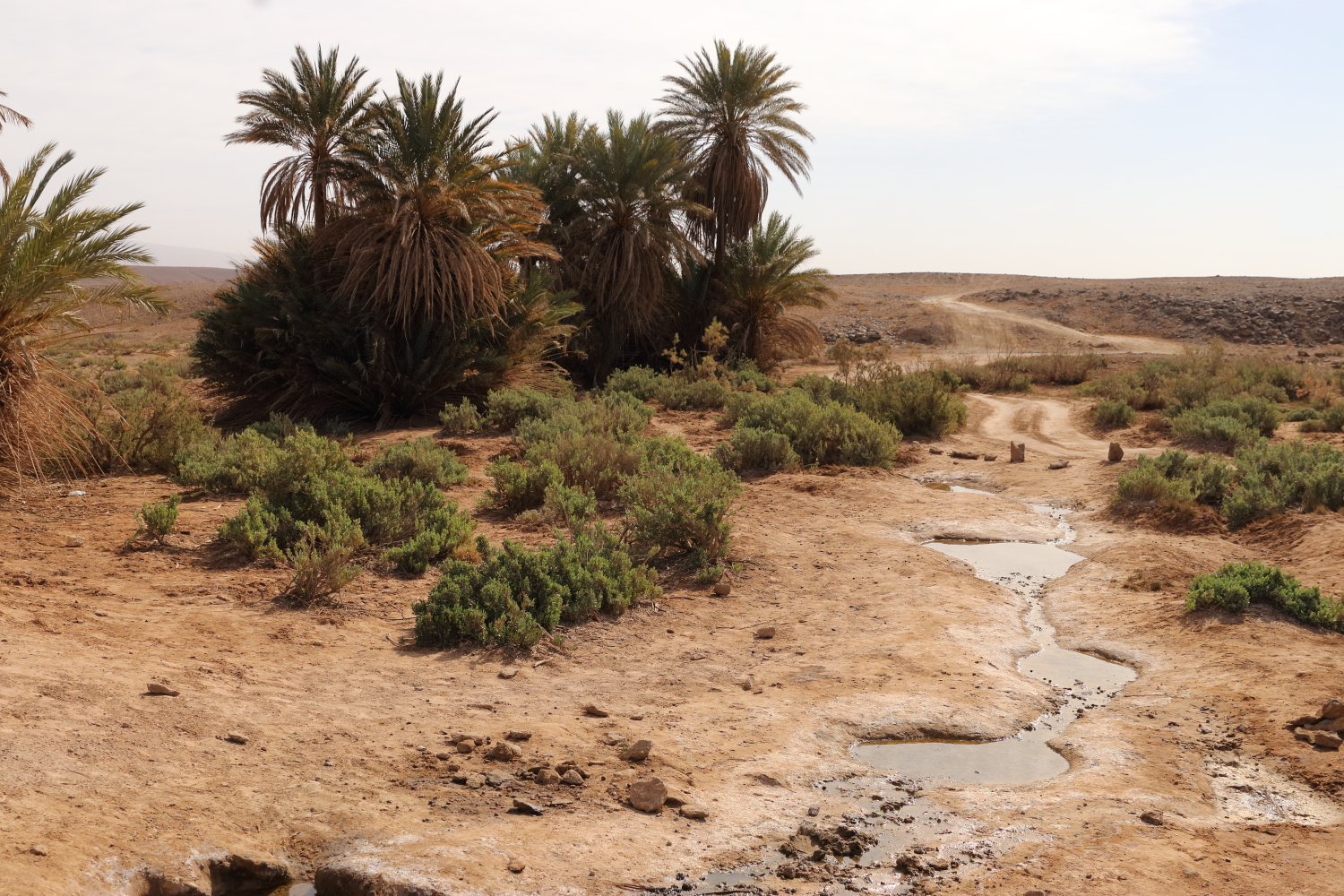 Arrêt dans une oasis, l’eau affleure à la surface.