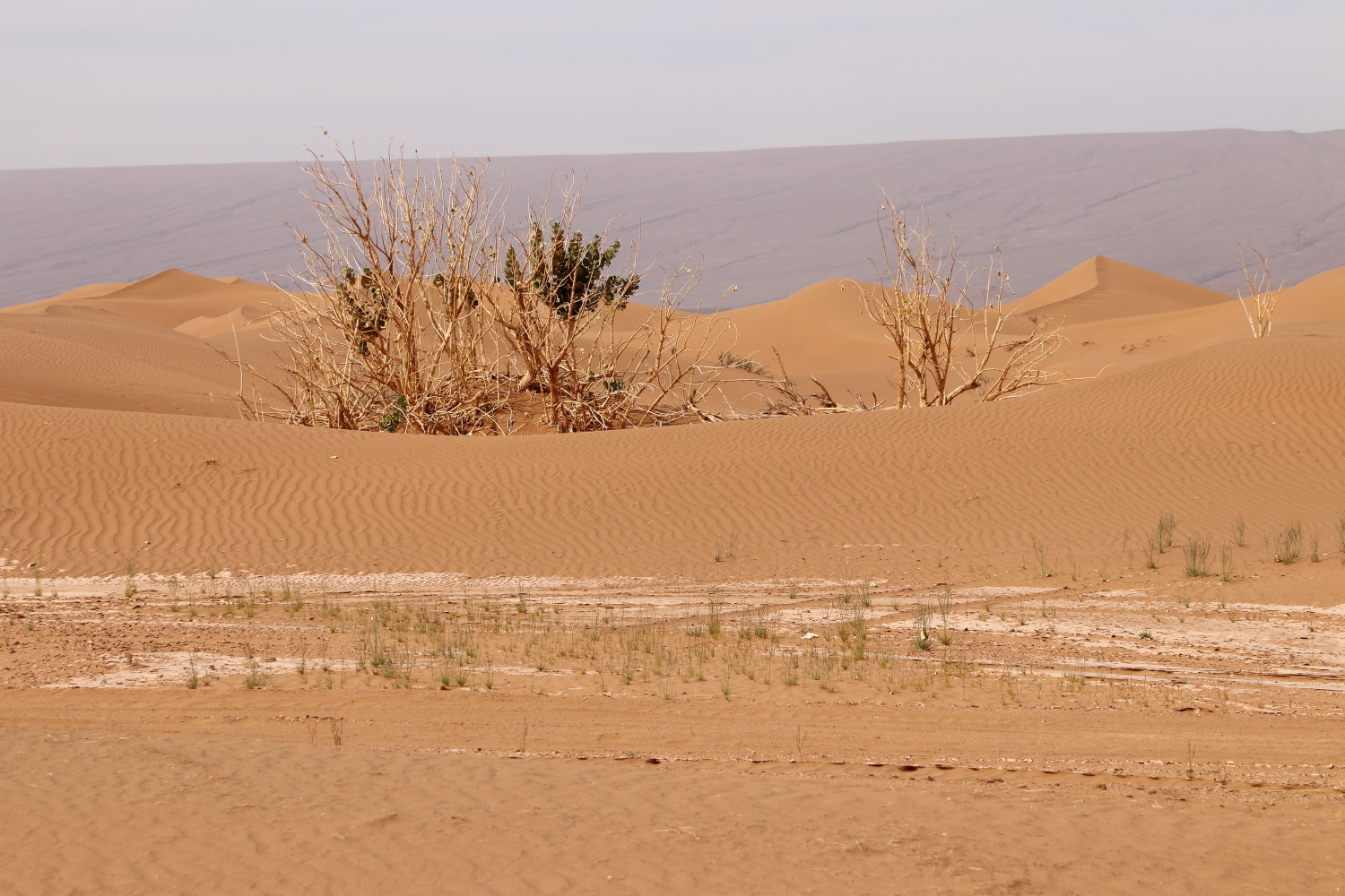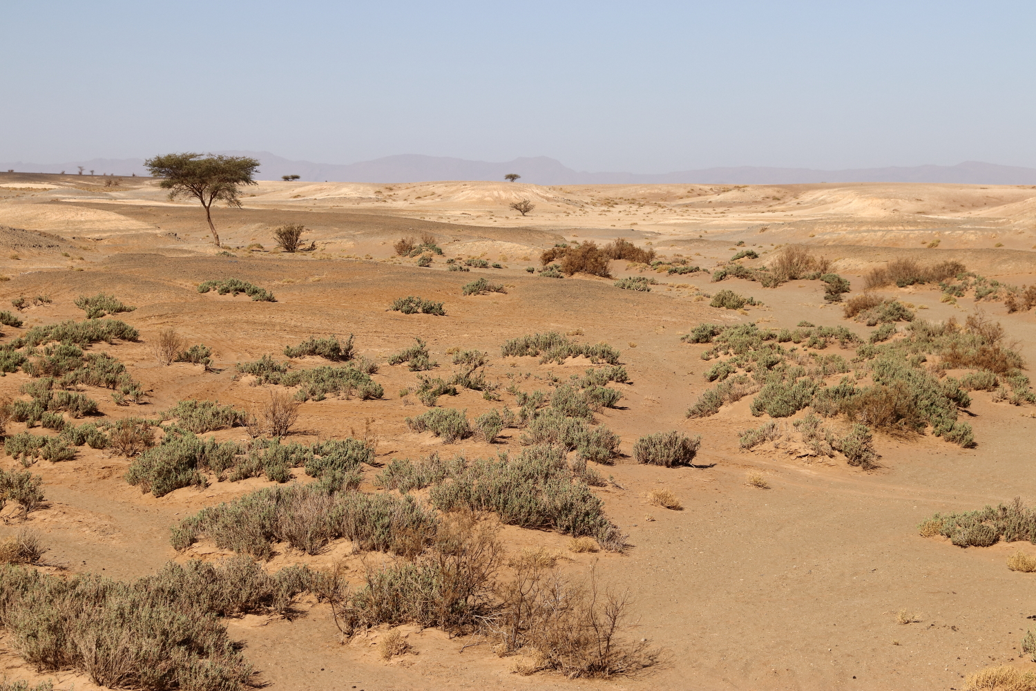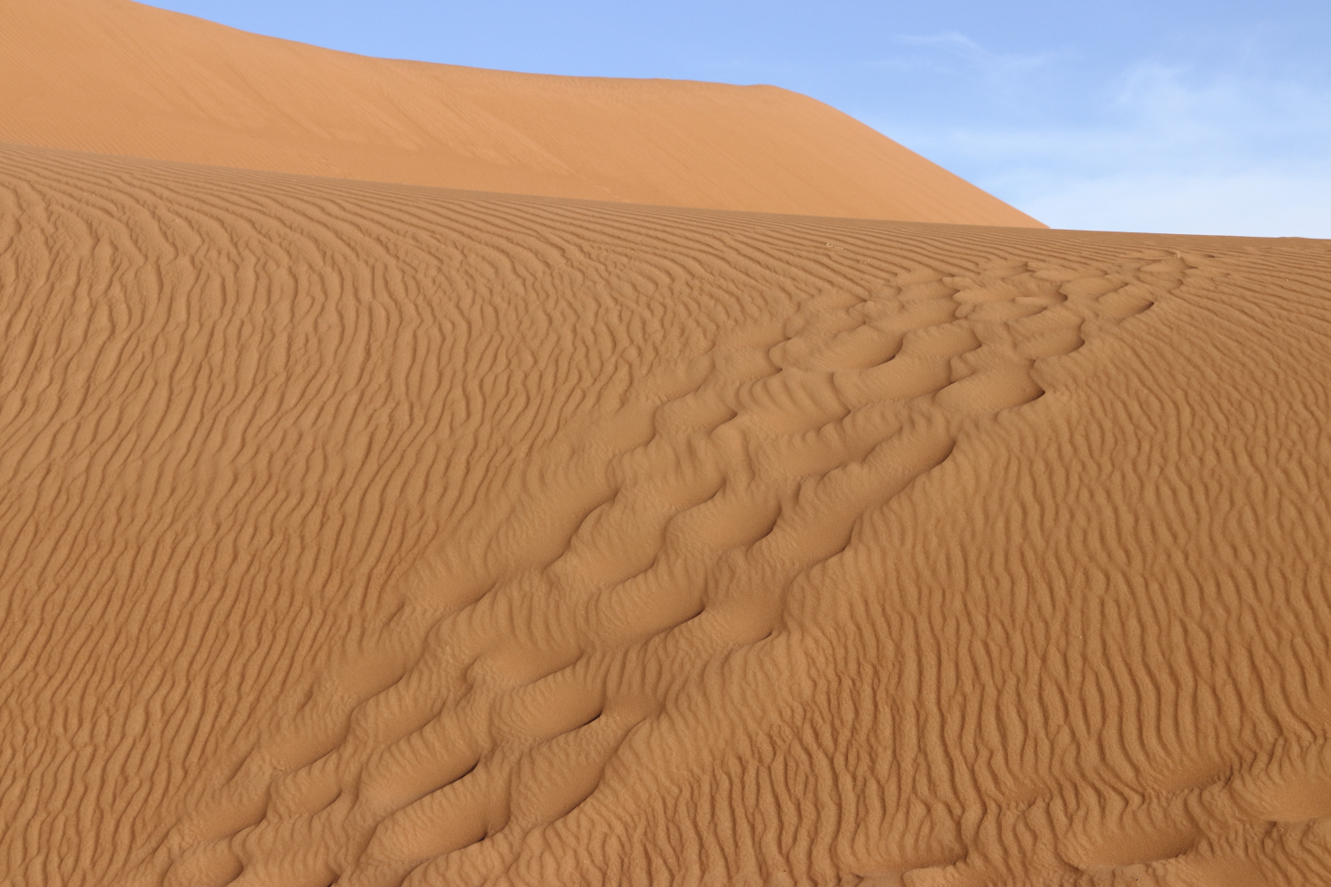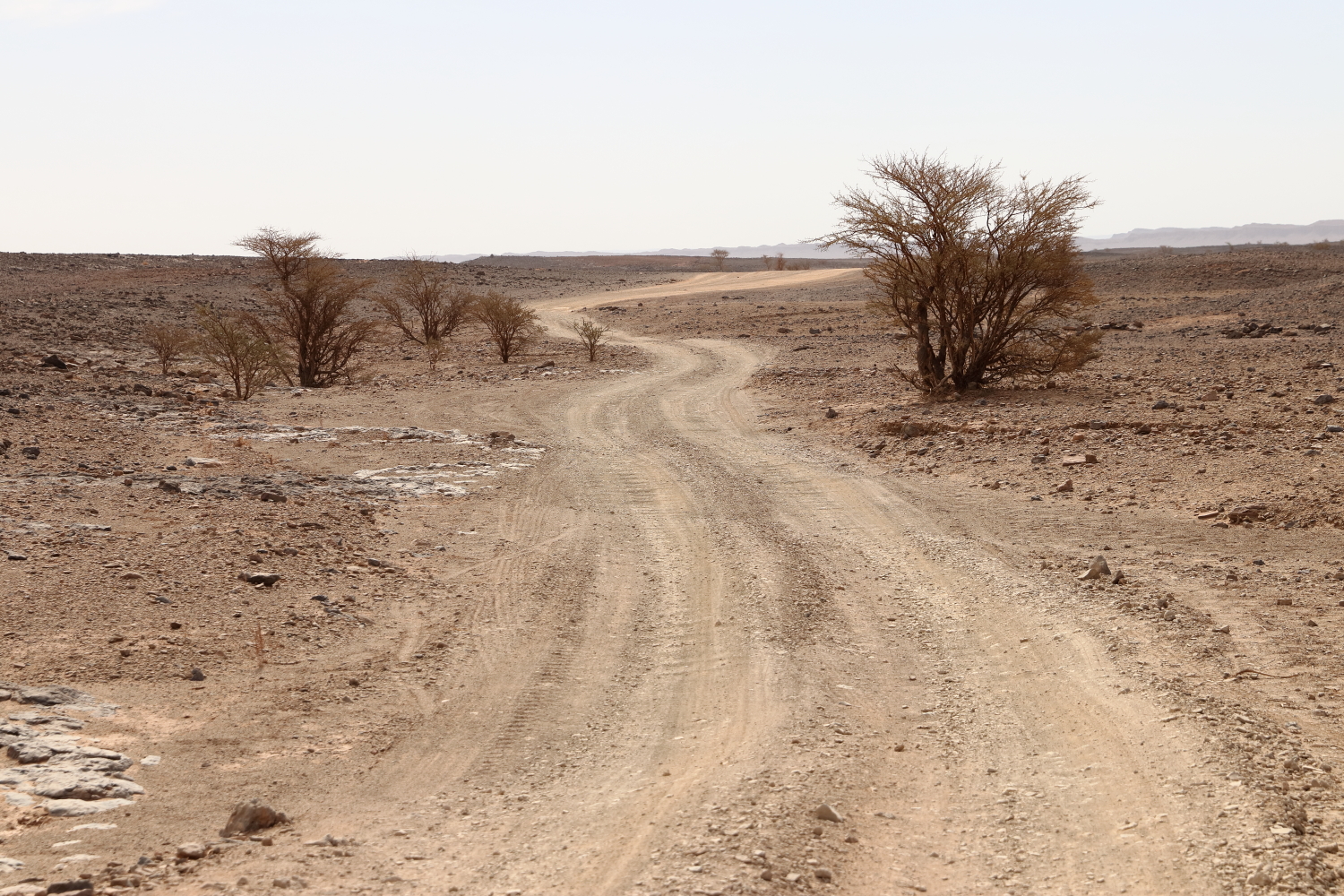 Passage dans les dunes, emprunté autrefois par le rallye du Paris-Dakar. Tout comme les dromadaires, les ânes sauvages se regroupent sous un arbre pour se mettre à l’ombre.