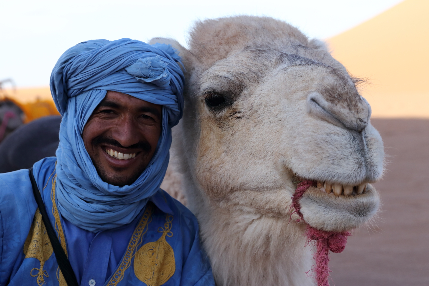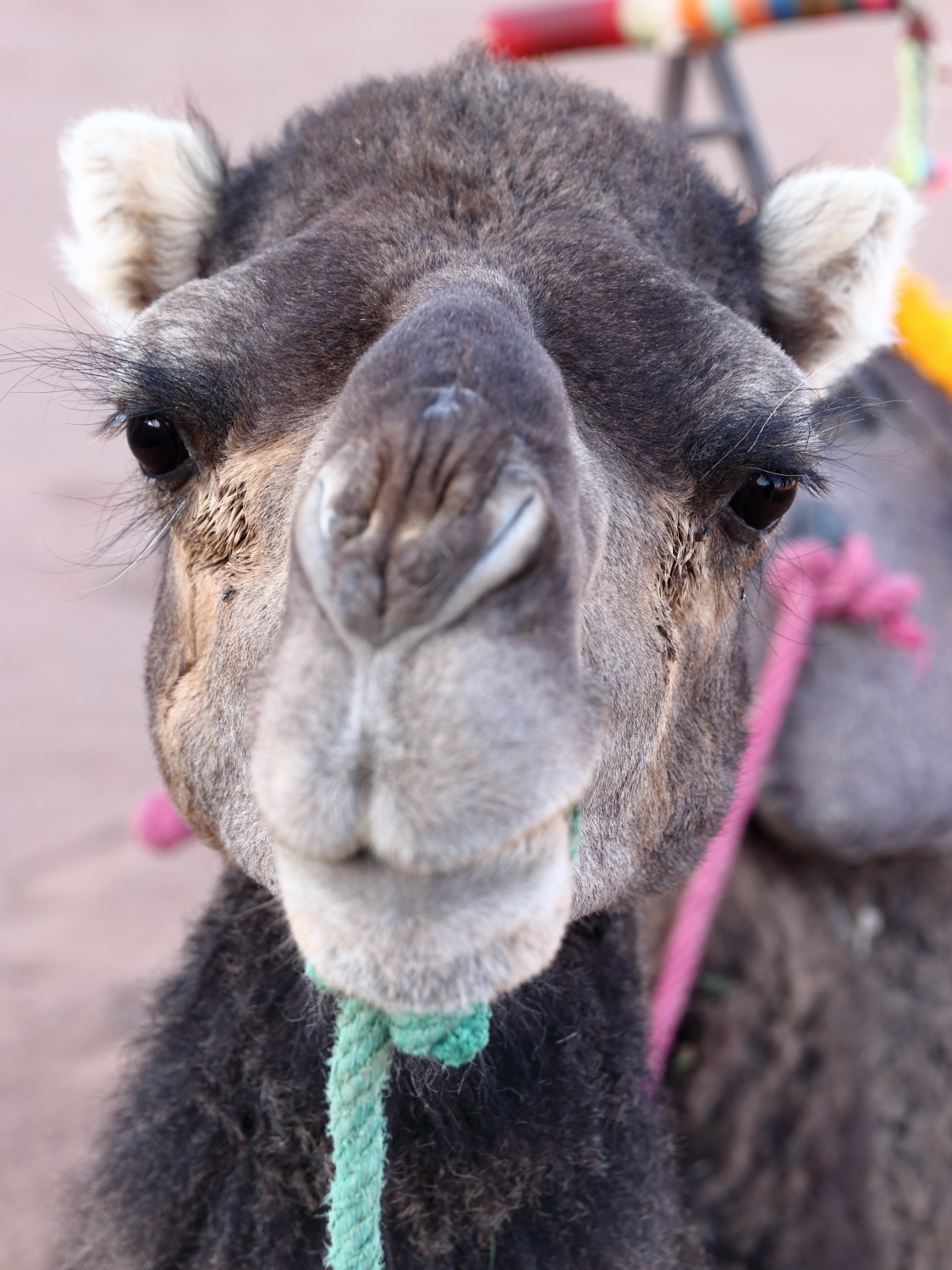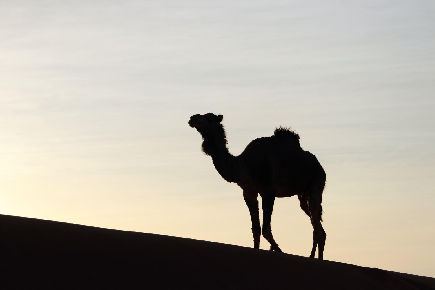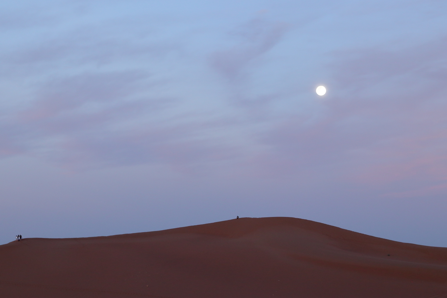 Le clou du spectacle, une balade en dromadaire pour assister au coucher du soleil sur le haut des dunes. Il fallait regagner nos montures avant la tombée de la nuit. La pleine lune était de la partie elle aussi.