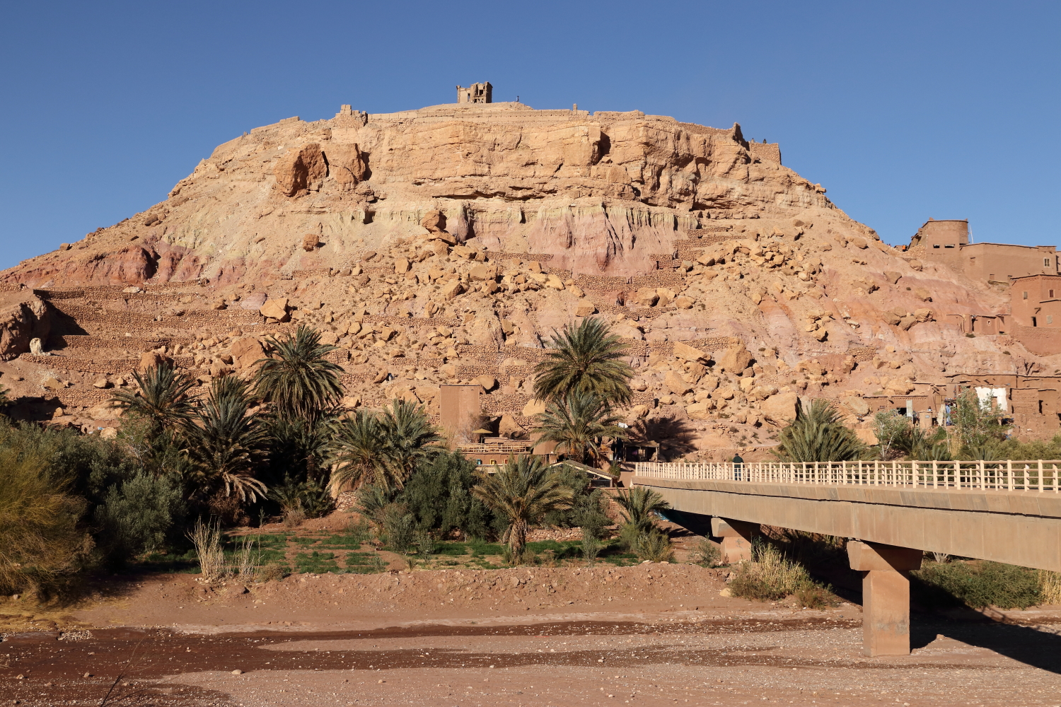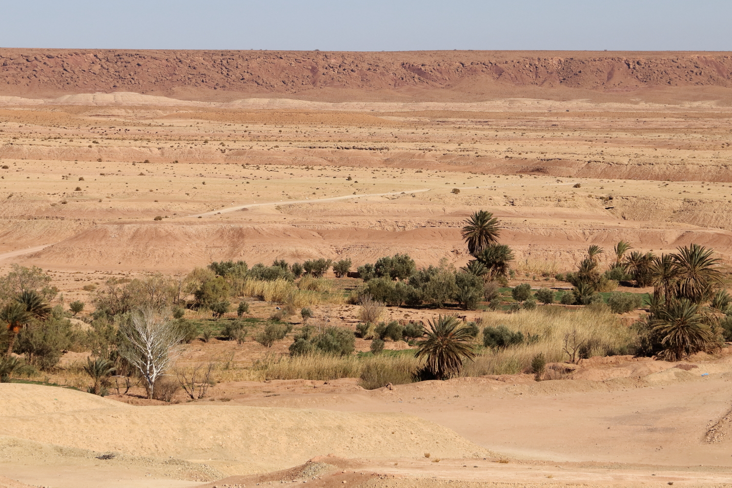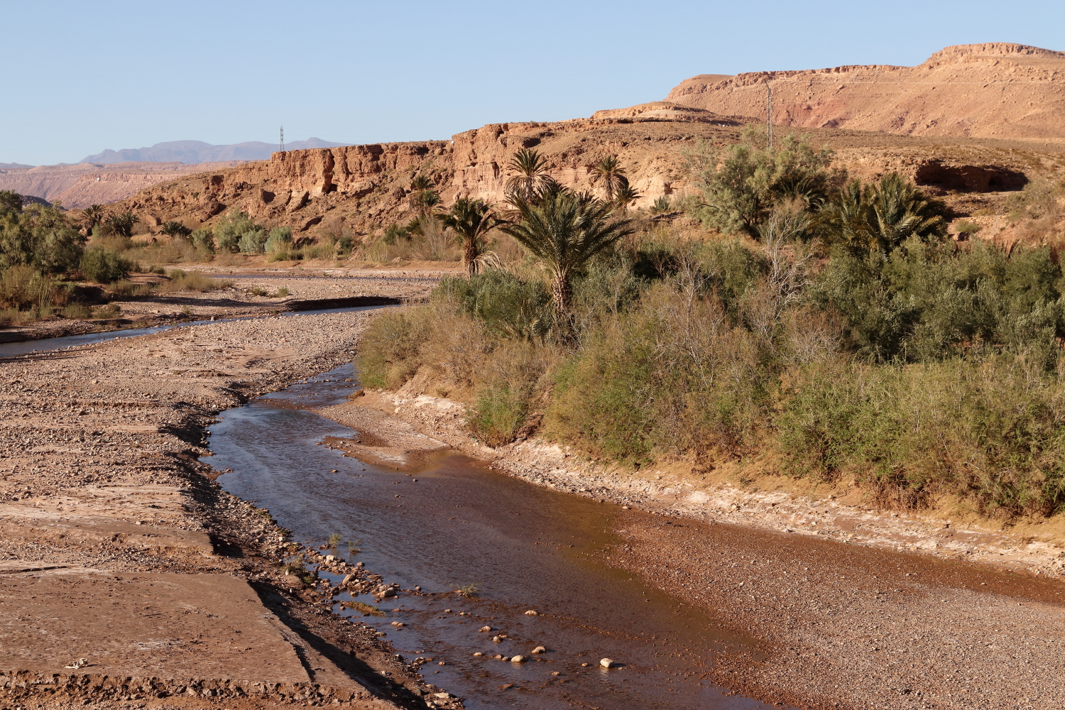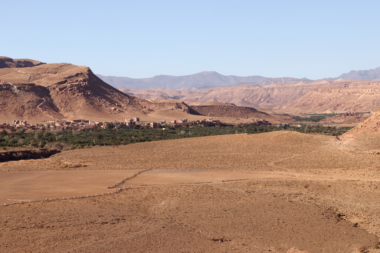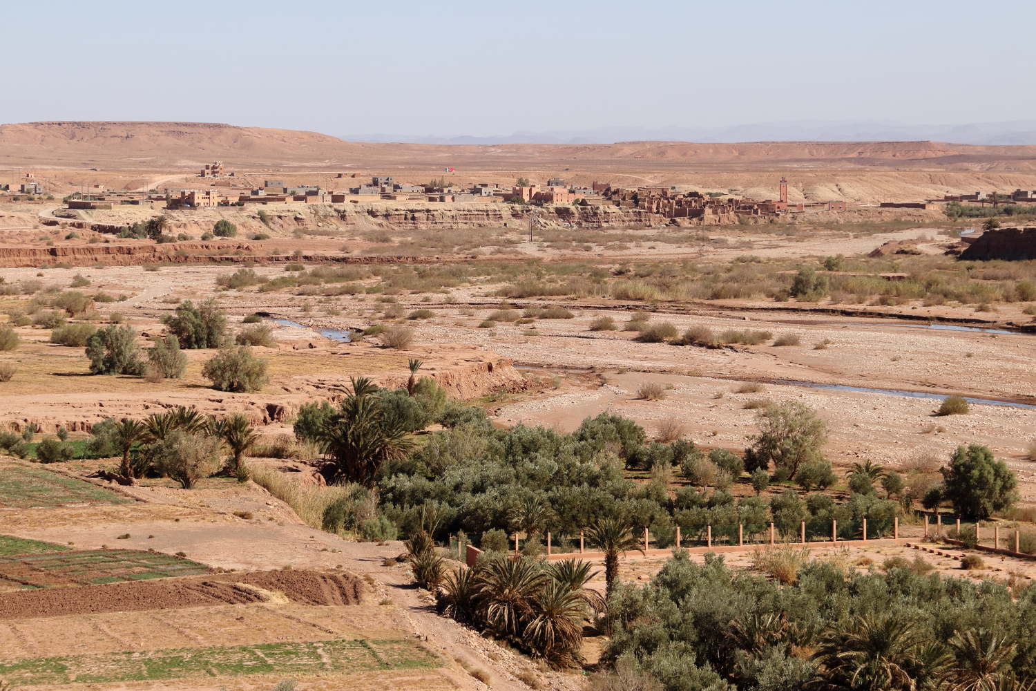 L’eau amène la vie, tout autour de la commune, le paysage est désertique.