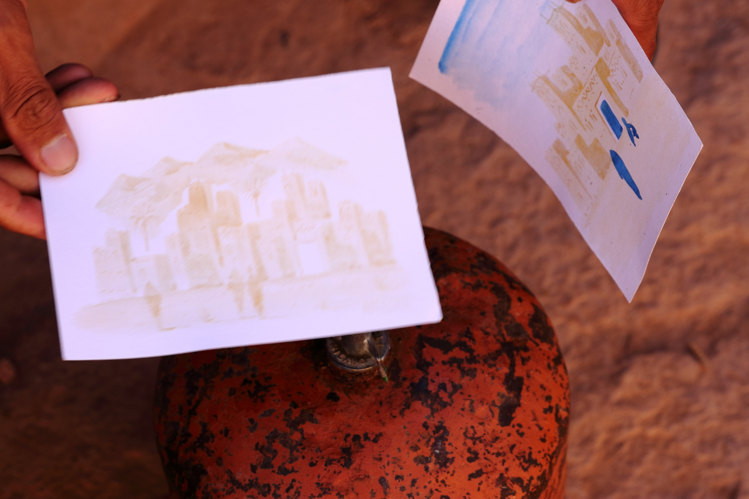 Il suffit de passer le papier sous une flamme pour que l’image apparaisse, une technique qui permettait autrefois de transmettre des secrets. Avec la laine de moutons, la tapisserie est une autre activité principale dans ce village.