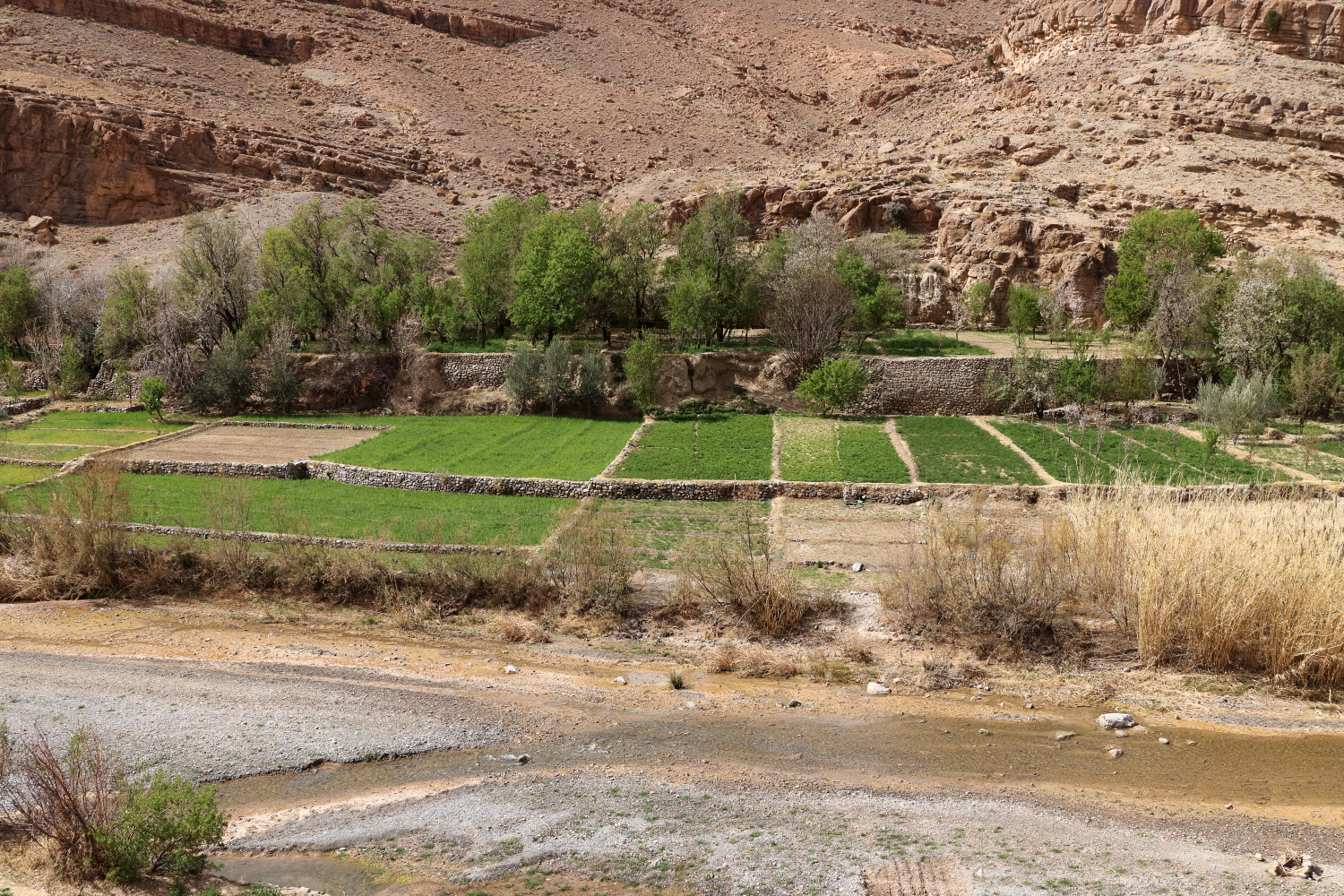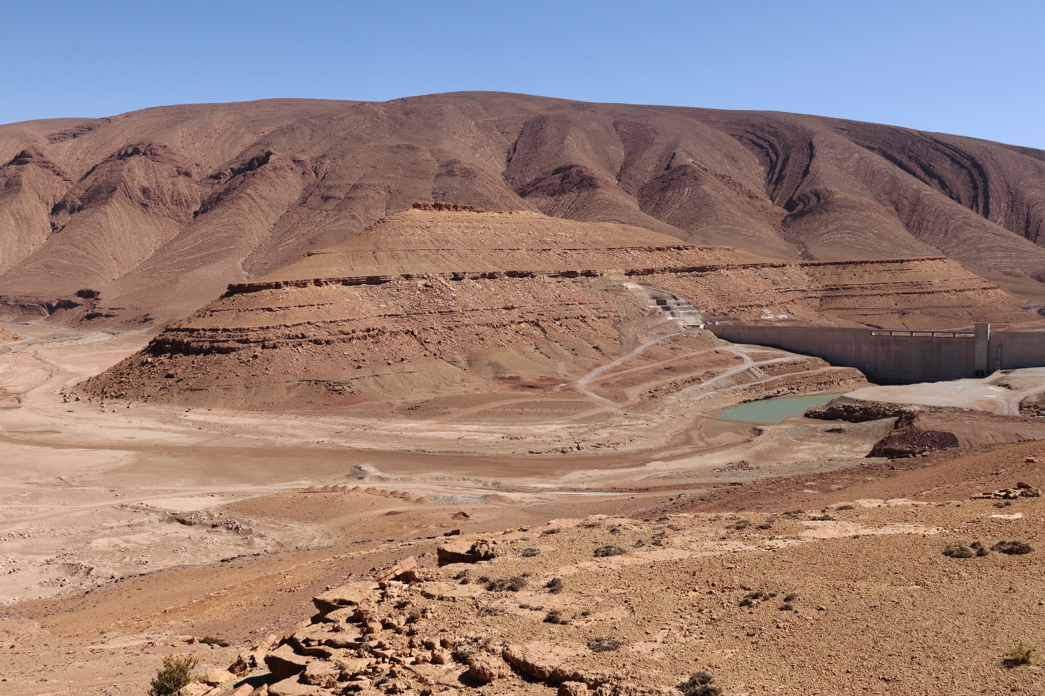 Dans les gorges du Todra, le barrage en amont ne contient pas beaucoup d’eau.
