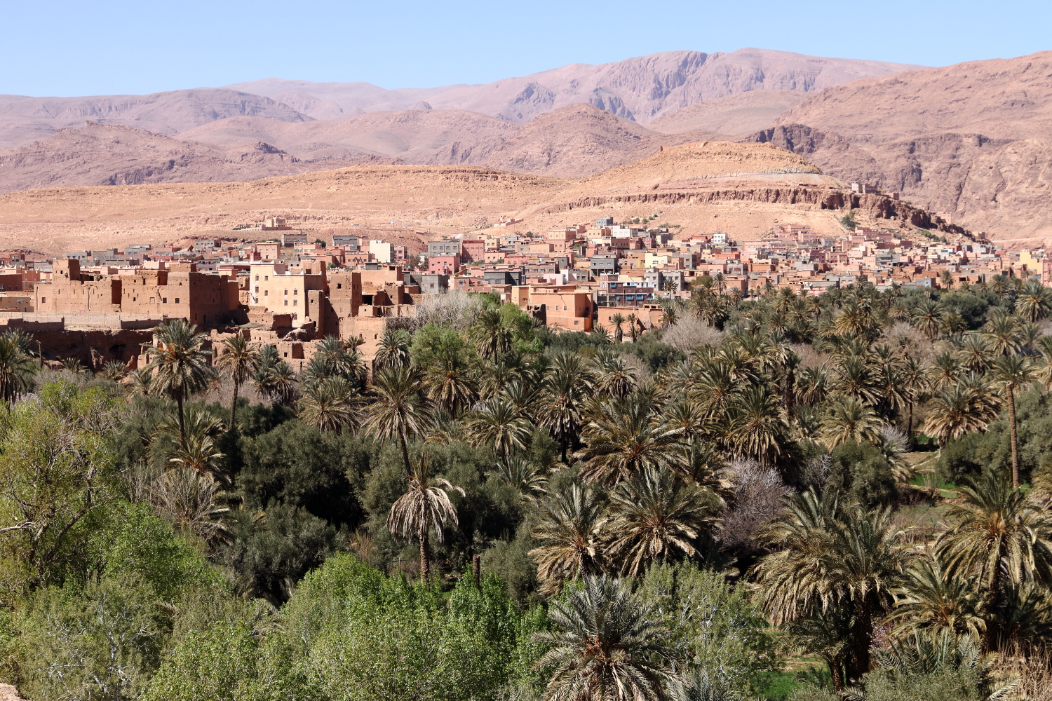 Depuis la ville de Tinghir et ses environs, les perspectives sont déjà une belle entrée en matière. Nous sommes dans le Haut Atlas, le Maroc compte plus de 300 sommets de plus de 3000 m et 5 de plus de 4000 m, dont le Toubkal à 4167 m, point culminant de l’Afrique du Nord.