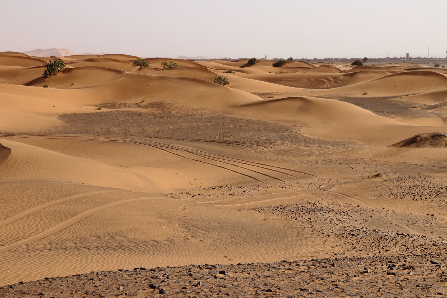L’Erg Chebbi est le second massif dunaire du sud marocain, il est complémentaire avec l’Erg Chigaga, car l’environnement est encore différent. Une première approche jusqu’à une petite oasis.