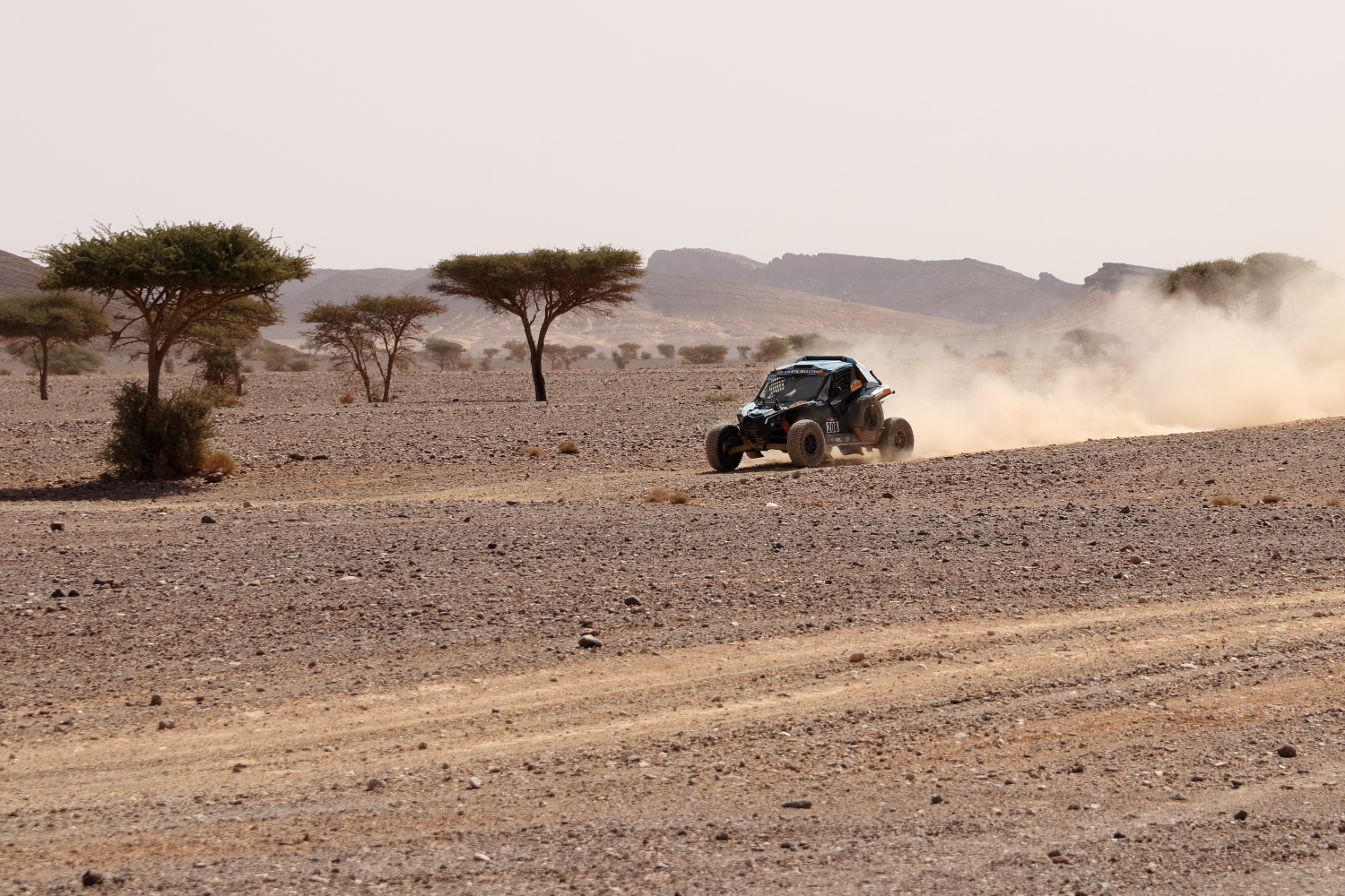 On les repère à leur traînée de poussière et il vaut mieux ne pas être dans leur sillage. Ce territoire connait une multitude de rallyes internationaux pendant six mois environ. Notre guide a couru et remporté des courses et nous a fait profiter de ses talents de pilote et des paddocks. Petite confidence, l’avantage, lorsqu’on a été Bédouin, est qu’on connait la région comme sa poche, le roadbook devient presque superflu.