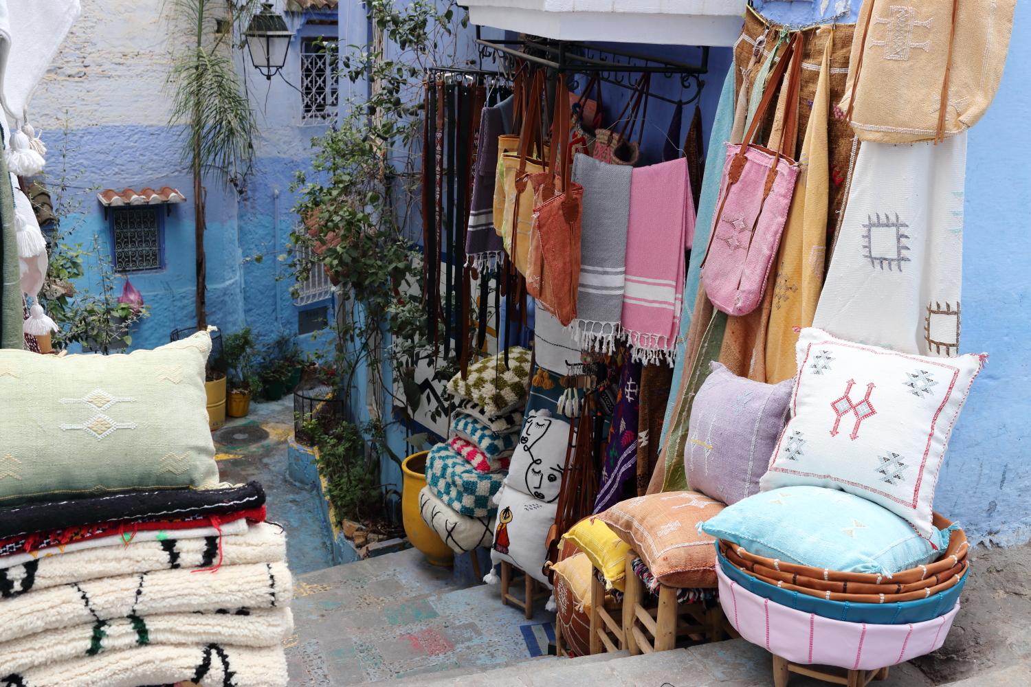 Sa teinte bleue reflète la lumière, gardant la fraîcheur à l’intérieur des maisons tout en éloignant les moustiques. Ces variantes de couleur à la chaux et ces ruelles étroites de sa médina en ont fait une perle touristique. Son passé historique avec l’Espagne est encore visible sur les plaques de rue.