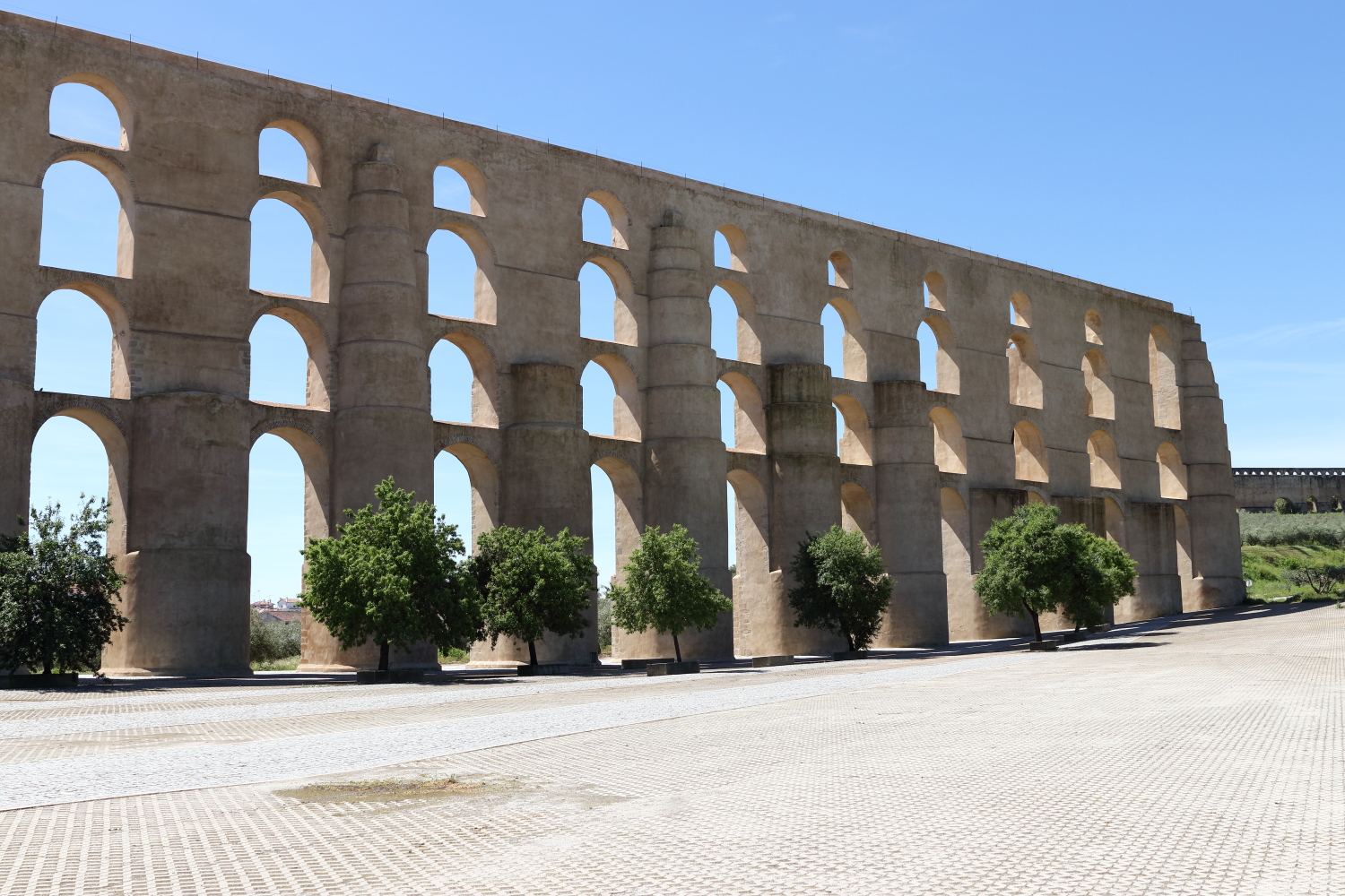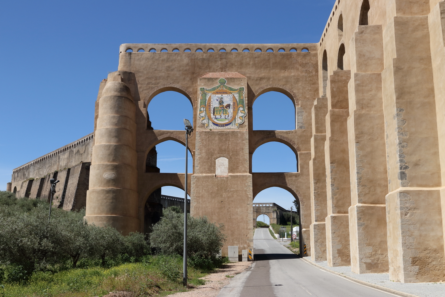 C’est l’édifice qui saute aux yeux en pénétrant à Elvas, par son gigantisme, l’aqueduc d’Amoreira est un ouvrage d’art s’étendant sur plus de 5 km auquel il faut rajouter 1367 m enterrés pour une hauteur maxi de 30 m. Il permettait d’alimenter la ville durant les conflits régionaux.