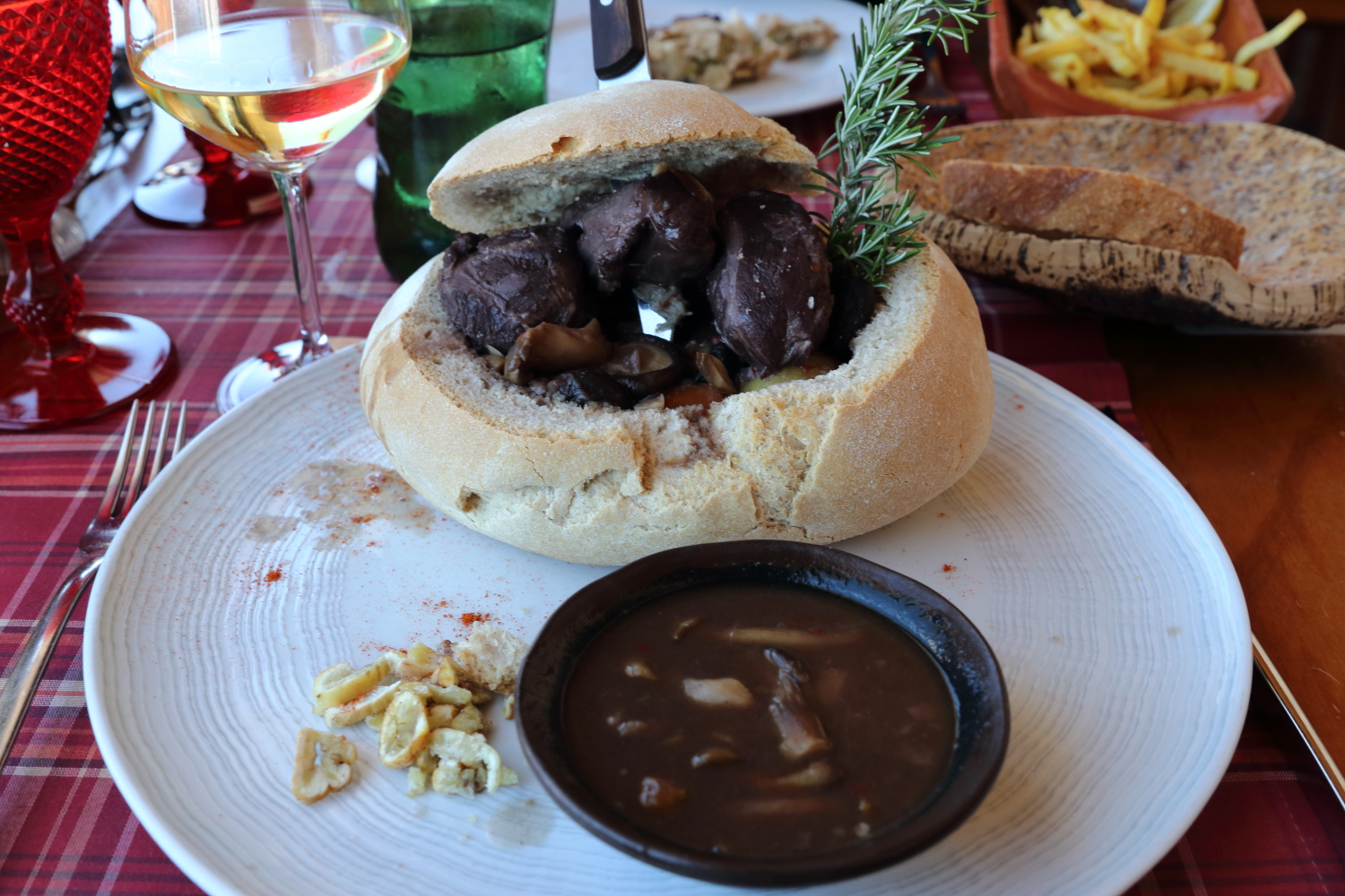 Une petite spécialité locale, la joue de porc noir marinée aux champignons et légumes et aux brisures de marron.