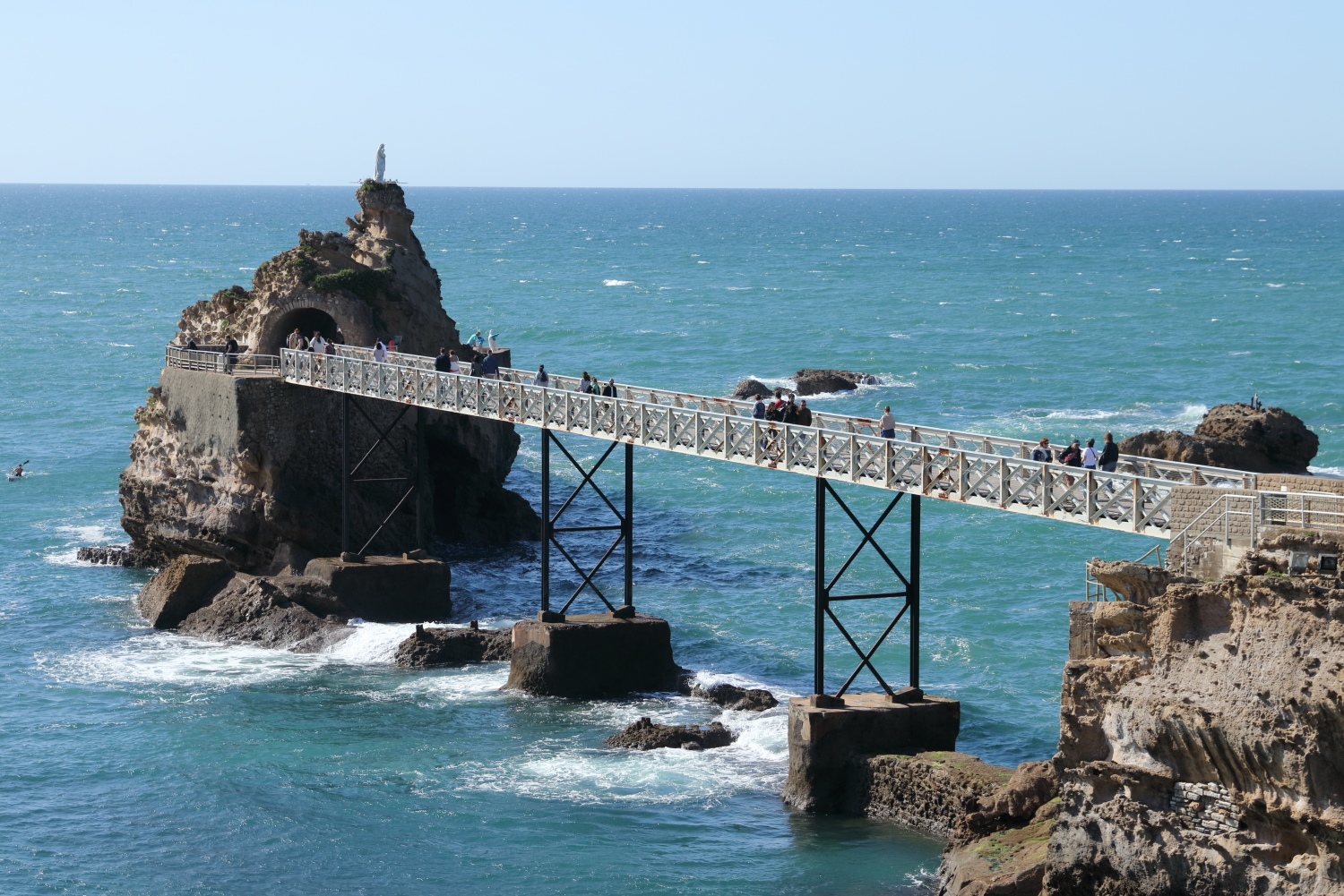 Cette station balnéaire fut très prisée par la noblesse dans les années 1800. Biarritz est aujourd’hui d’avantage connue pour le surf sur cette partie de la côte basque. Le rocher de la Vierge, presqu’île emblématique, balaye toute une perspective sur le Golfe de Gascogne.