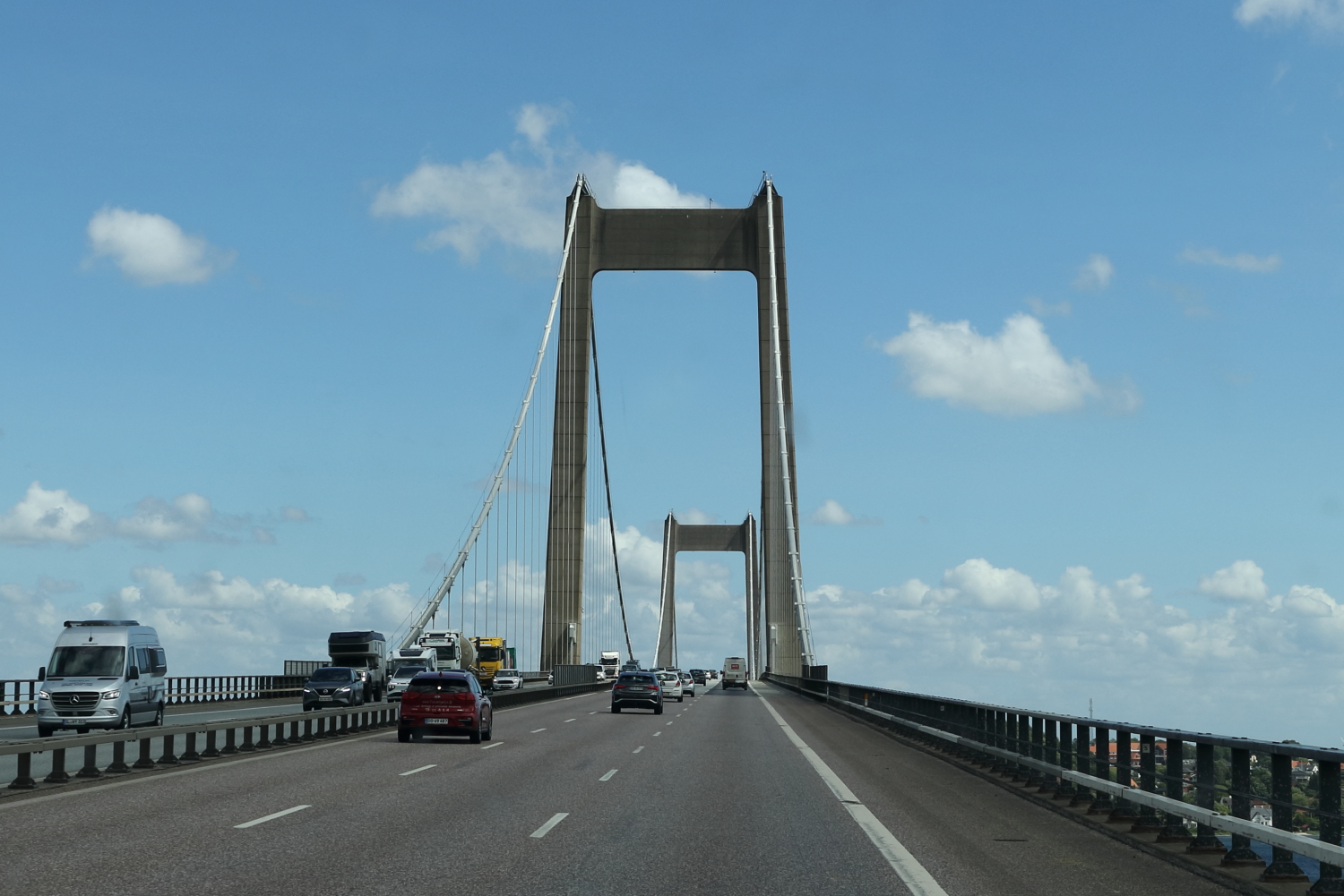 Direction l’île de Fionie (Fyn), troisième plus importante île du Danemark, en traversant le Nouveau Pont du Petit Belt, pour rejoindre la ville d’Odense.