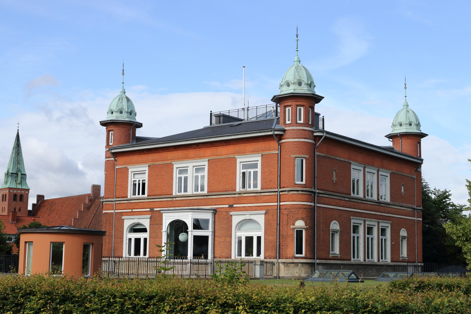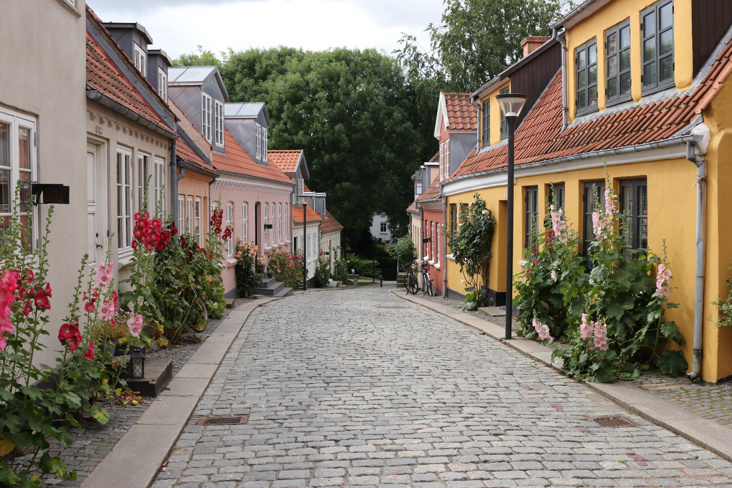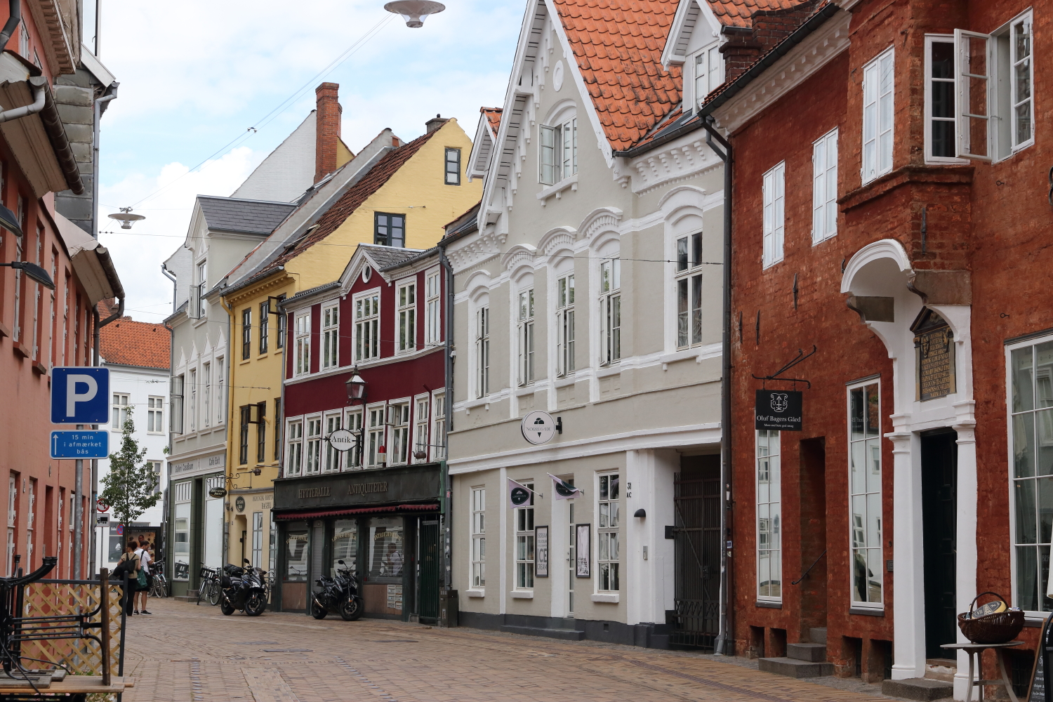 Nous avons relevé deux caractéristiques au Danemark : la brique est le matériau le plus usité, parfois peinte, et il n’y a pas de volets aux fenêtres. Odense est une agglomération qui offre un cadre verdoyant, plus de 120 parcs à son actif. Knut IV, dernier roi viking danois, y fut assassiné, une ville emprunte de mythologie nordique, demeure d’Odin, dieu de la sagesse et de la guerre…