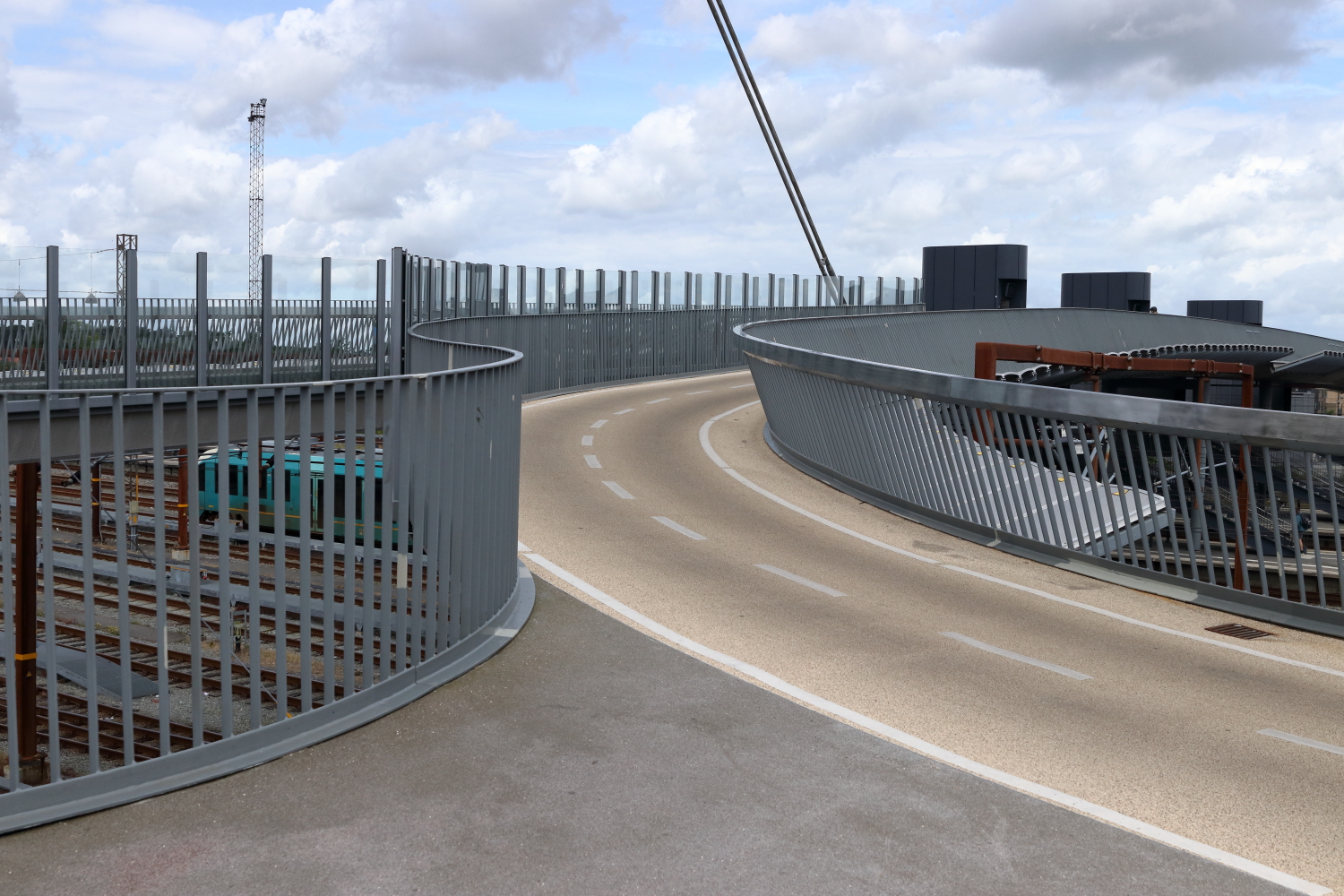 Dans cet exercice de style qui surplombe les voies ferrées de la gare, un architecte a créé une passerelle originale pour les piétons et les cyclistes. La marche à pied a du bon, j’ai bien affiné ma taille.