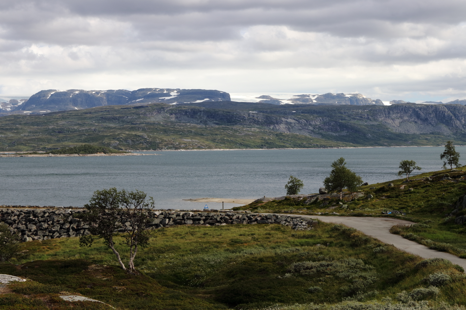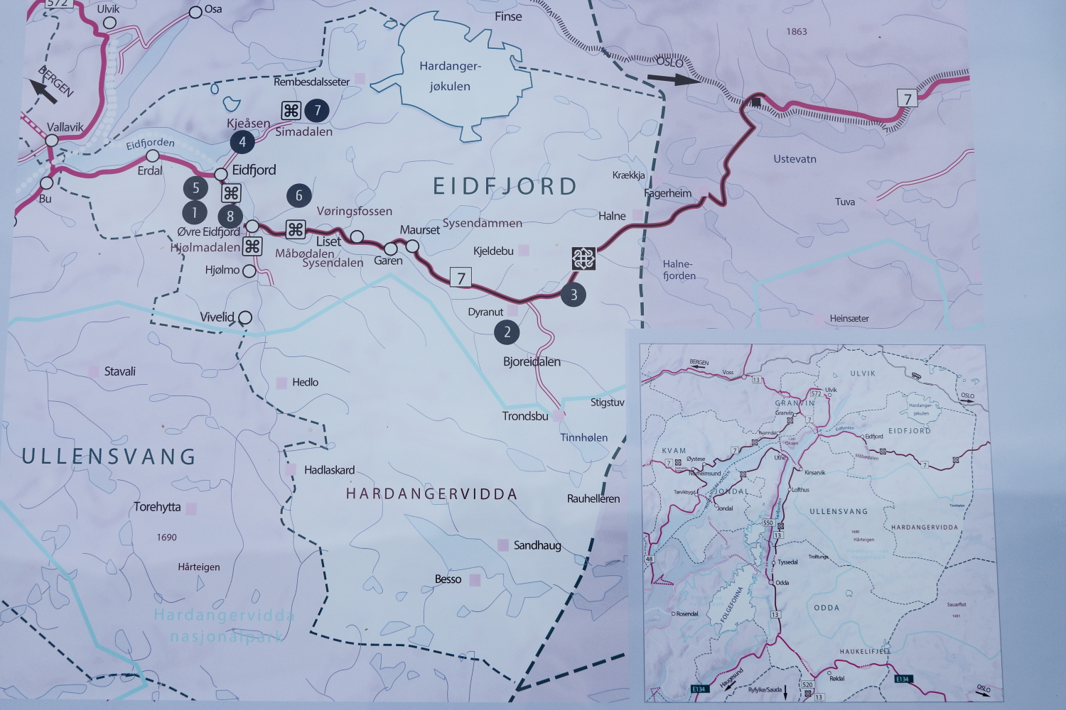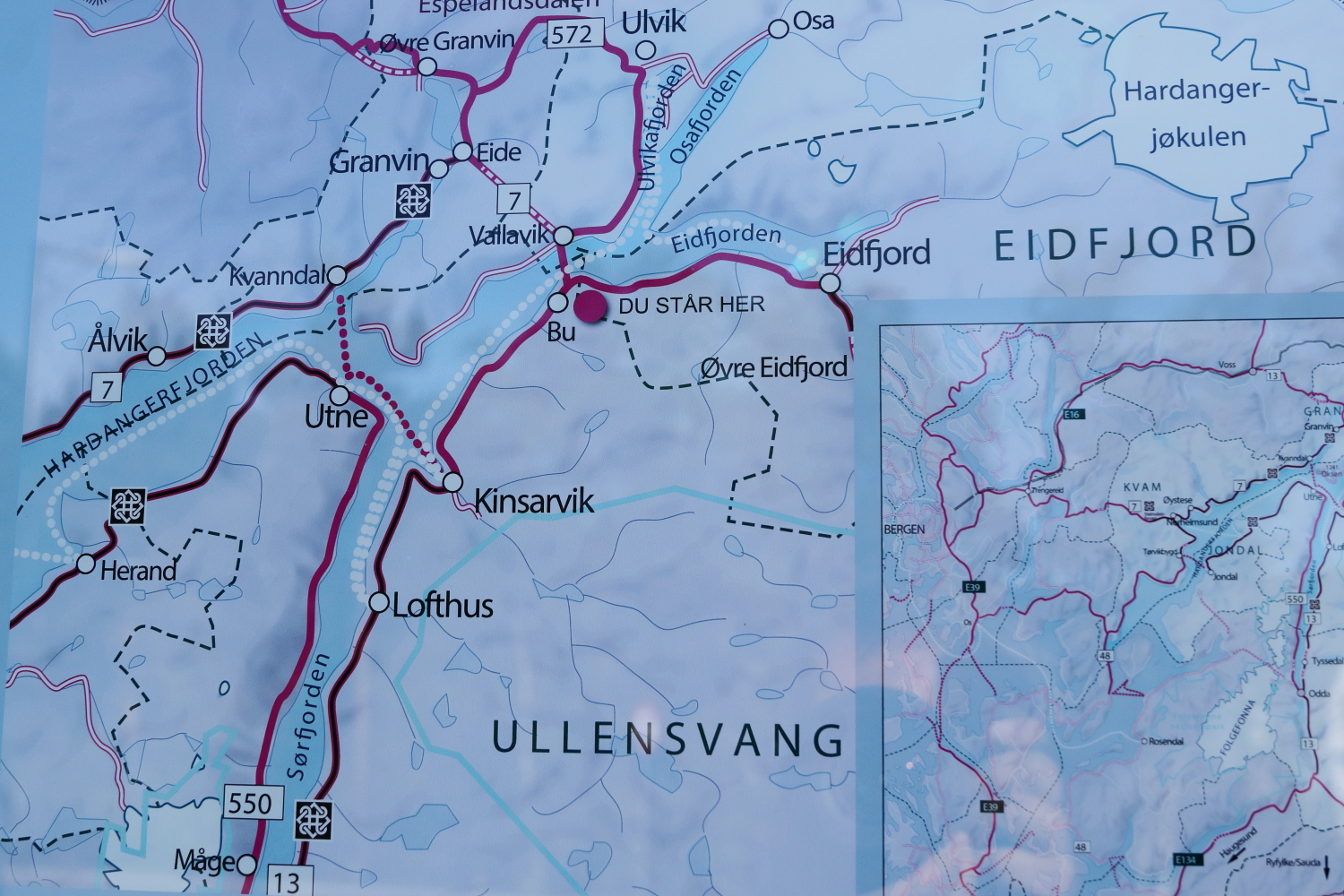 Sur ce tronçon de la nationale 13 qui borde le Sørfjorden, le relief laisse entrevoir les premiers glaciers. Nous sommes sur une nouvelle route touristique, dans la continuité vers le Nord.