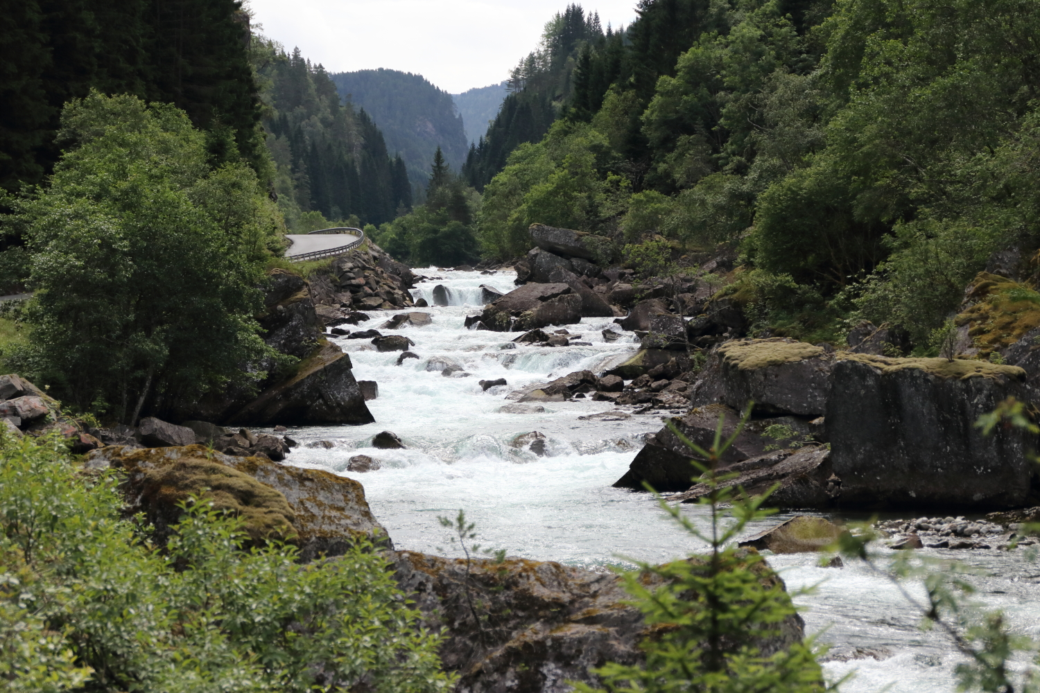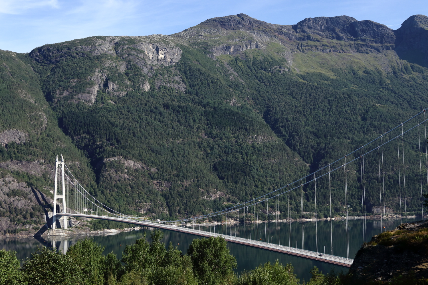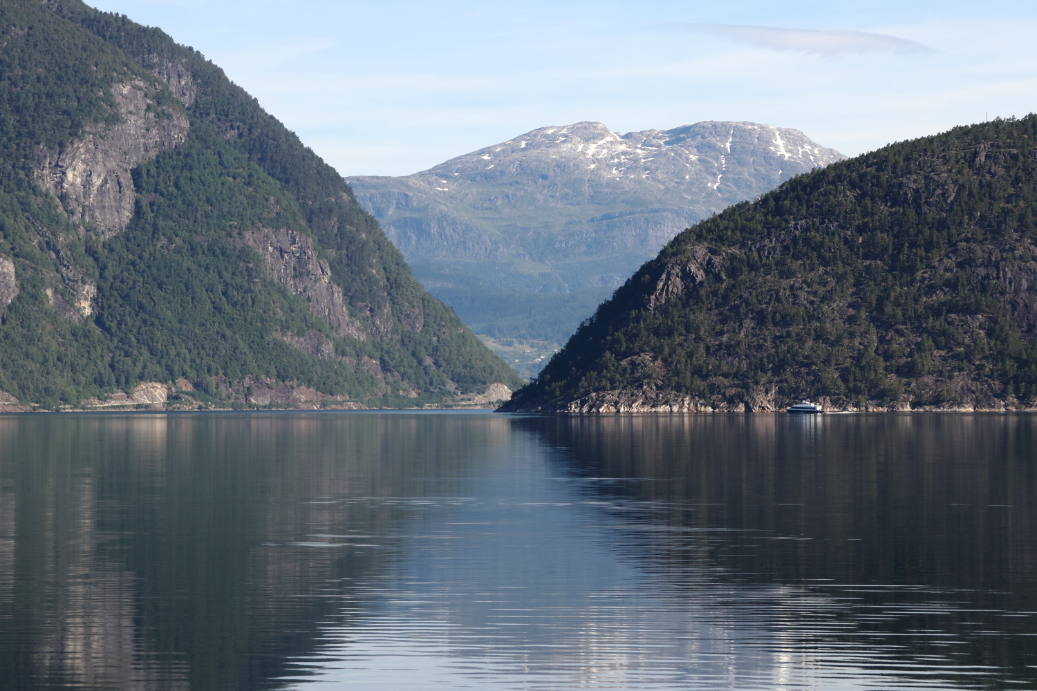 Sur ce tronçon de la nationale 13 qui borde le Sørfjorden, le relief laisse entrevoir les premiers glaciers. Nous sommes sur une nouvelle route touristique, dans la continuité vers le Nord.