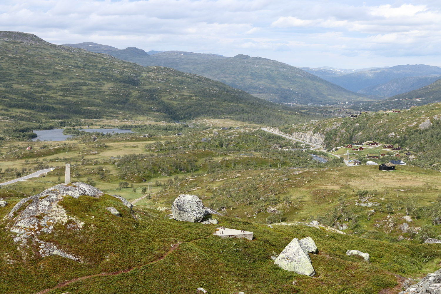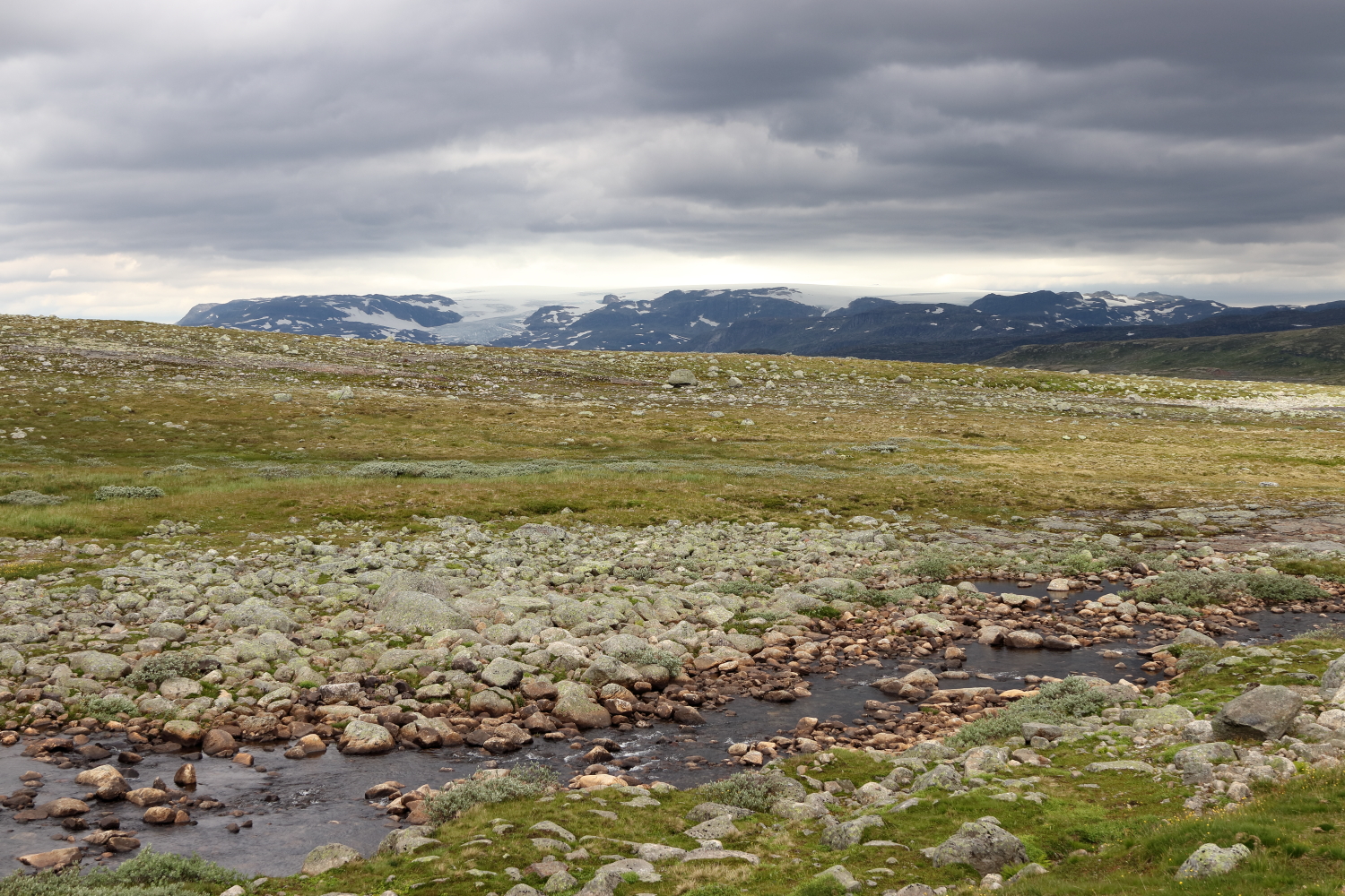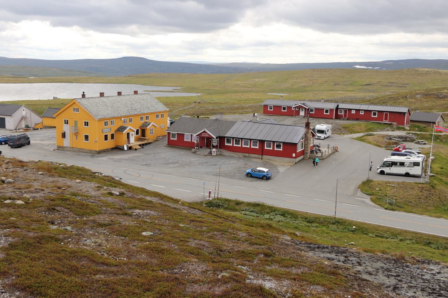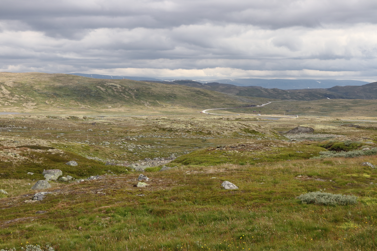 Puis nous débouchons sur le plus haut plateau d’Europe du Nord, le parc national Hardangervidda et son altitude maxi de 1861 m. En été, c’est une steppe garnie de multiples lacs, mais c’est un grand manteau blanc en hiver où les véhicules se déplacent en convoi derrière un chasse-neige.
