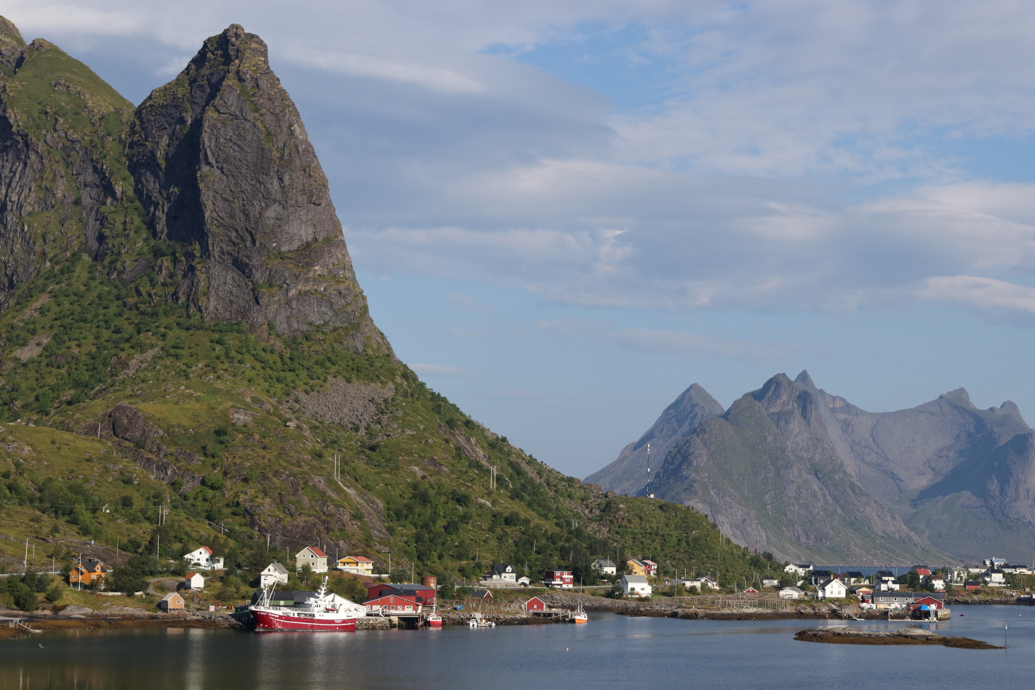 Des îles aux massifs impressionnants, nous accostons dans le petit port de Moskenes.