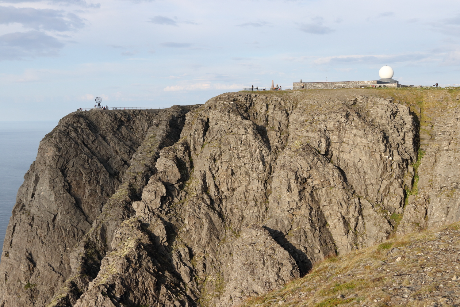 Le cap Nord et ses falaises de 300 m, le voici enfin, après 7876 km depuis notre départ. Du Nord au Sud, la Norvège elle-même s’étire sur près de 2400 km environ.