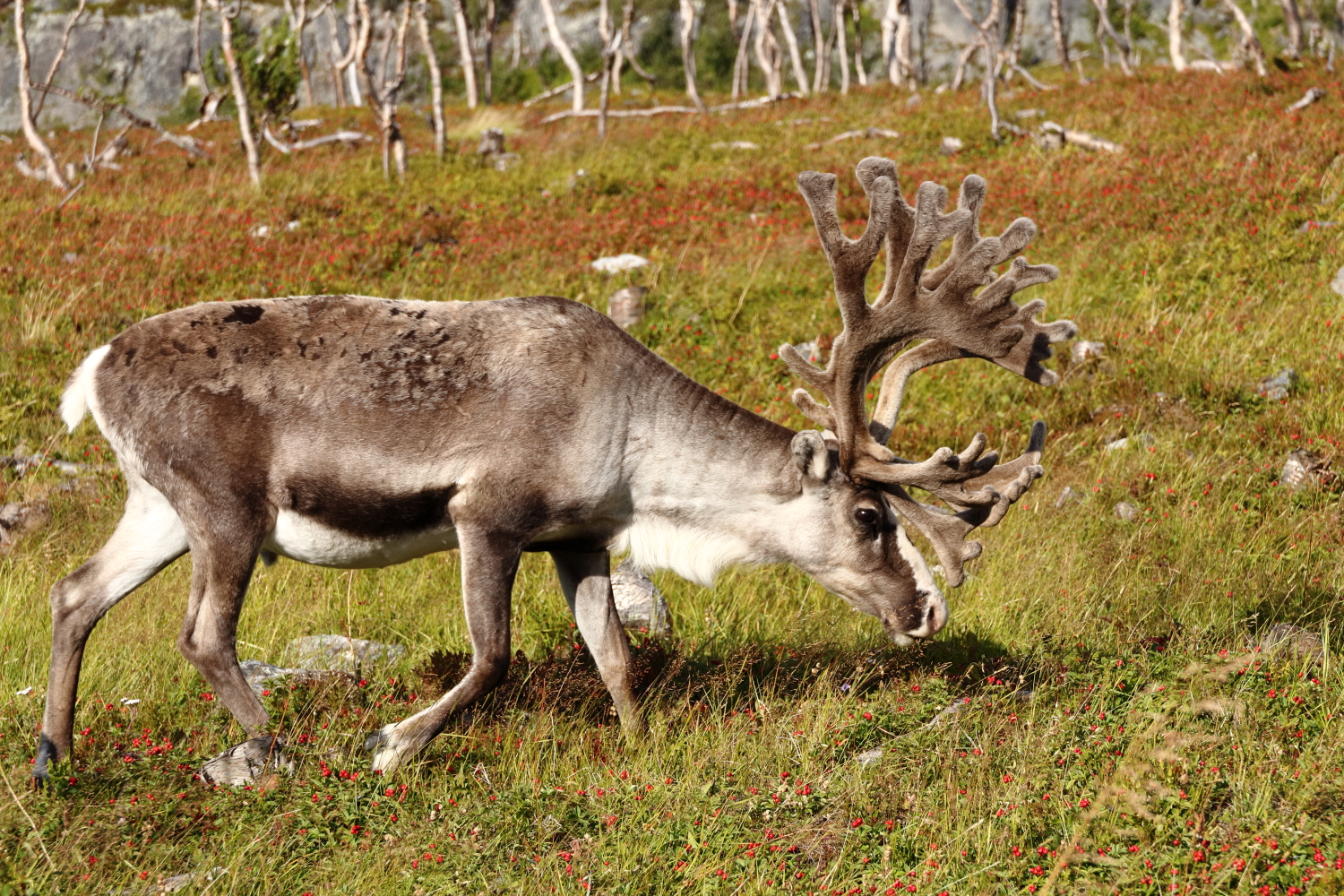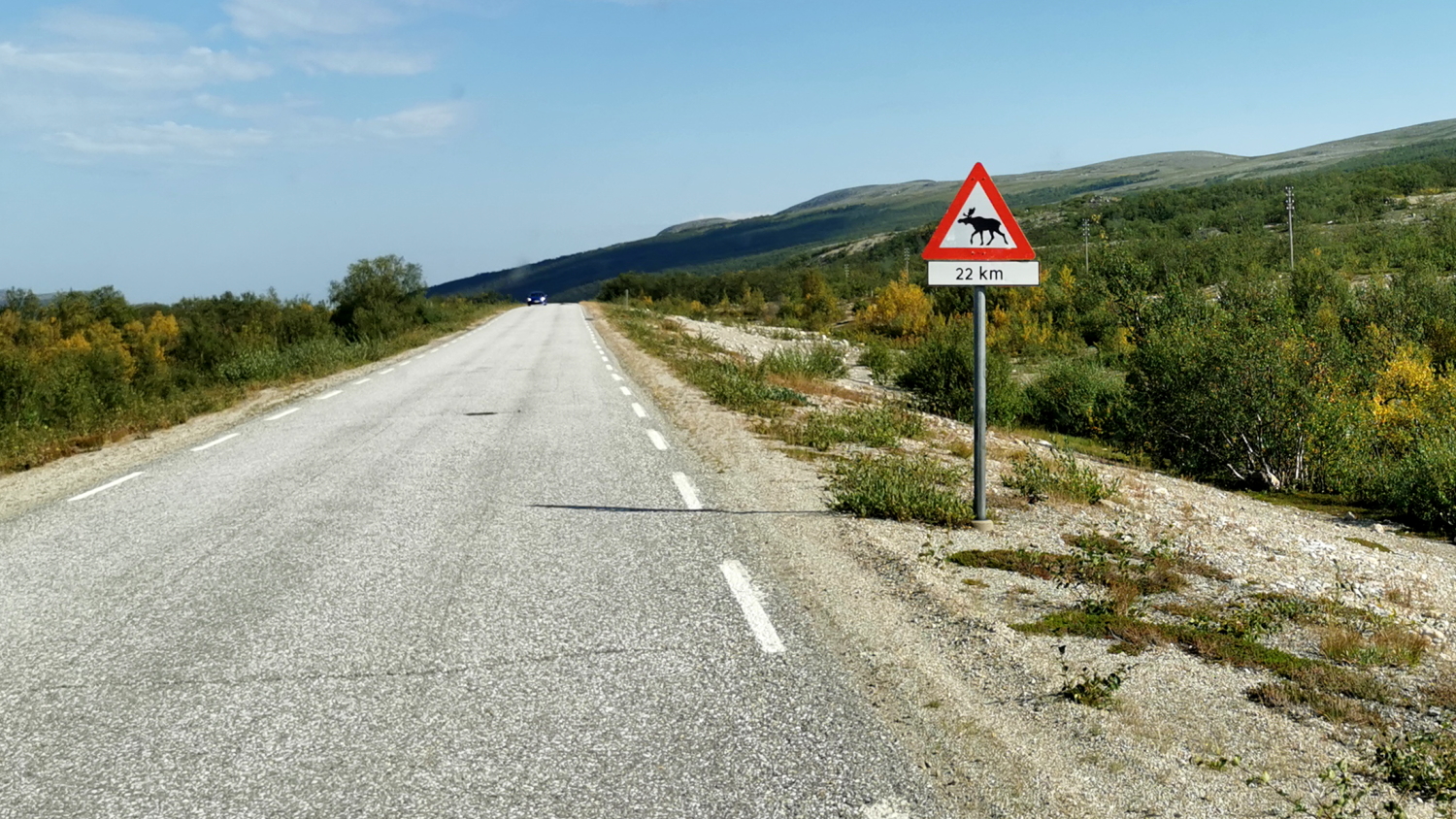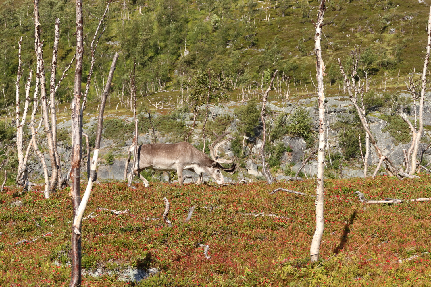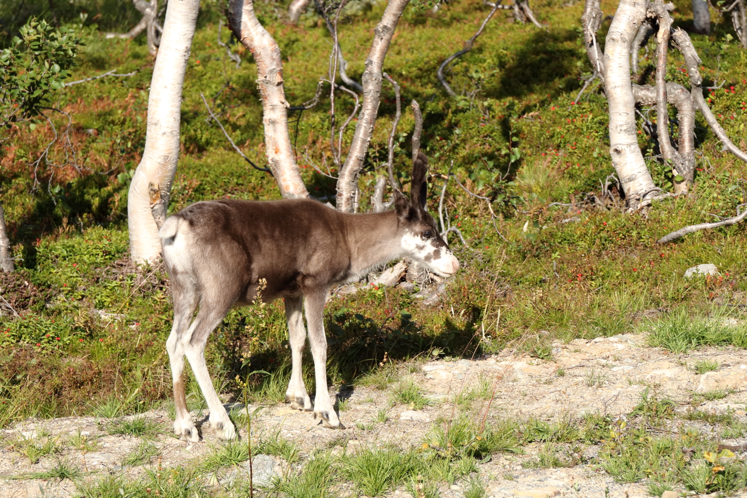 La signalétique routière fait régulièrement état des risques de collisions avec les élans ou les rennes. En pratique, comme avertisseur, les locaux font des appels de phares. Le renne n’est pas craintif si l’on se tient à une vingtaine de mètres. Dans la région, le cornouiller de Suède tapisse les sols.