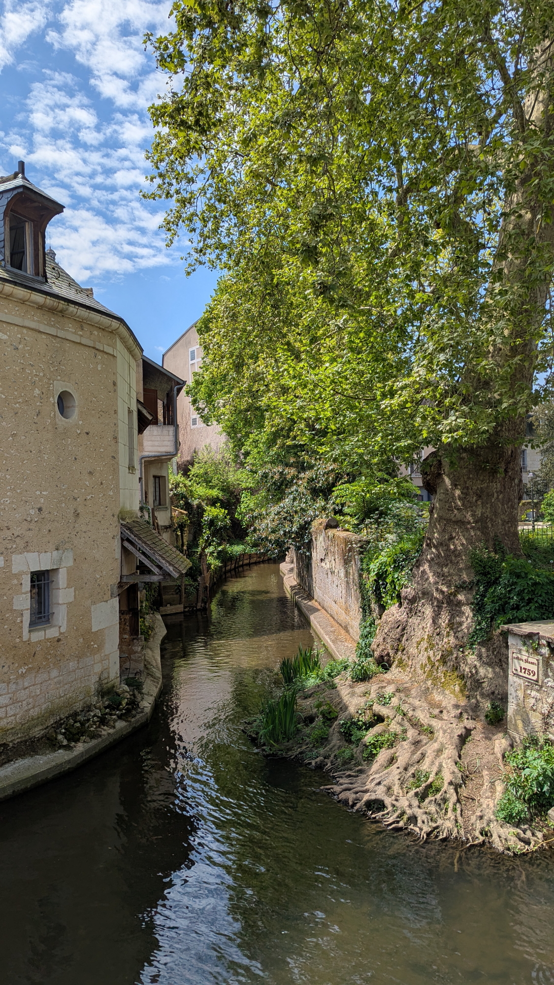 Les bras de la rivière Le Loir enlacent le centre historique et confèrent à cette ville un bel art de vivre. Sur ses rives trône un platane planté en 1759 (photo n° 14).