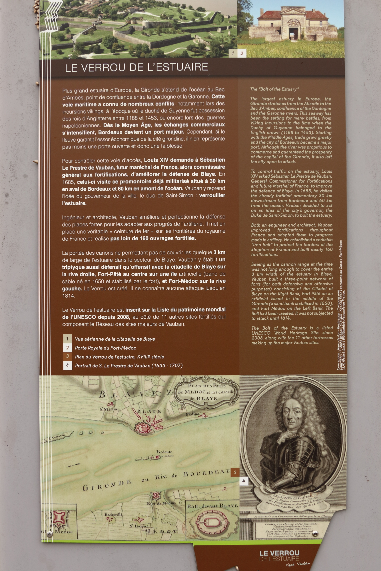Sous l’égide de Louis XIV, avec 160 réalisations à son actif, Vauban a ainsi cadenassé tout le royaume de France. La citadelle de Blaye en illustre parfaitement tout le potentiel géographique et stratégique pour verrouiller l’estuaire de la Gironde.