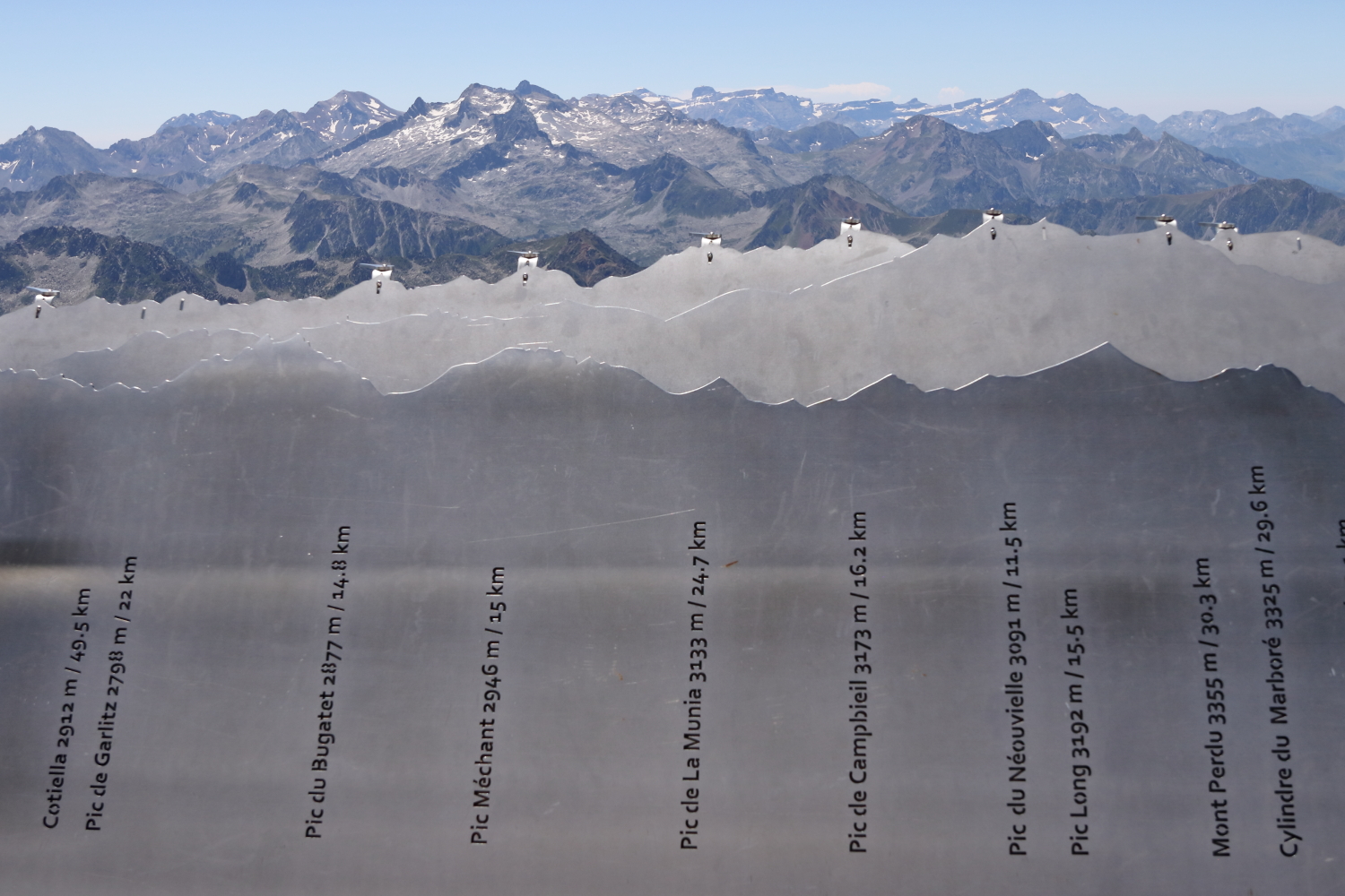 Le Vignemale (3298 m) est le sommet des Pyrénées côté français, et l’Aneto (3404 m) pour le côté espagnol. Le pic du Midi de Bigorre culmine à 2877 mètres. C’est avant tout un observatoire astronomique et un formidable point de vue sur la chaîne des Pyrénées.