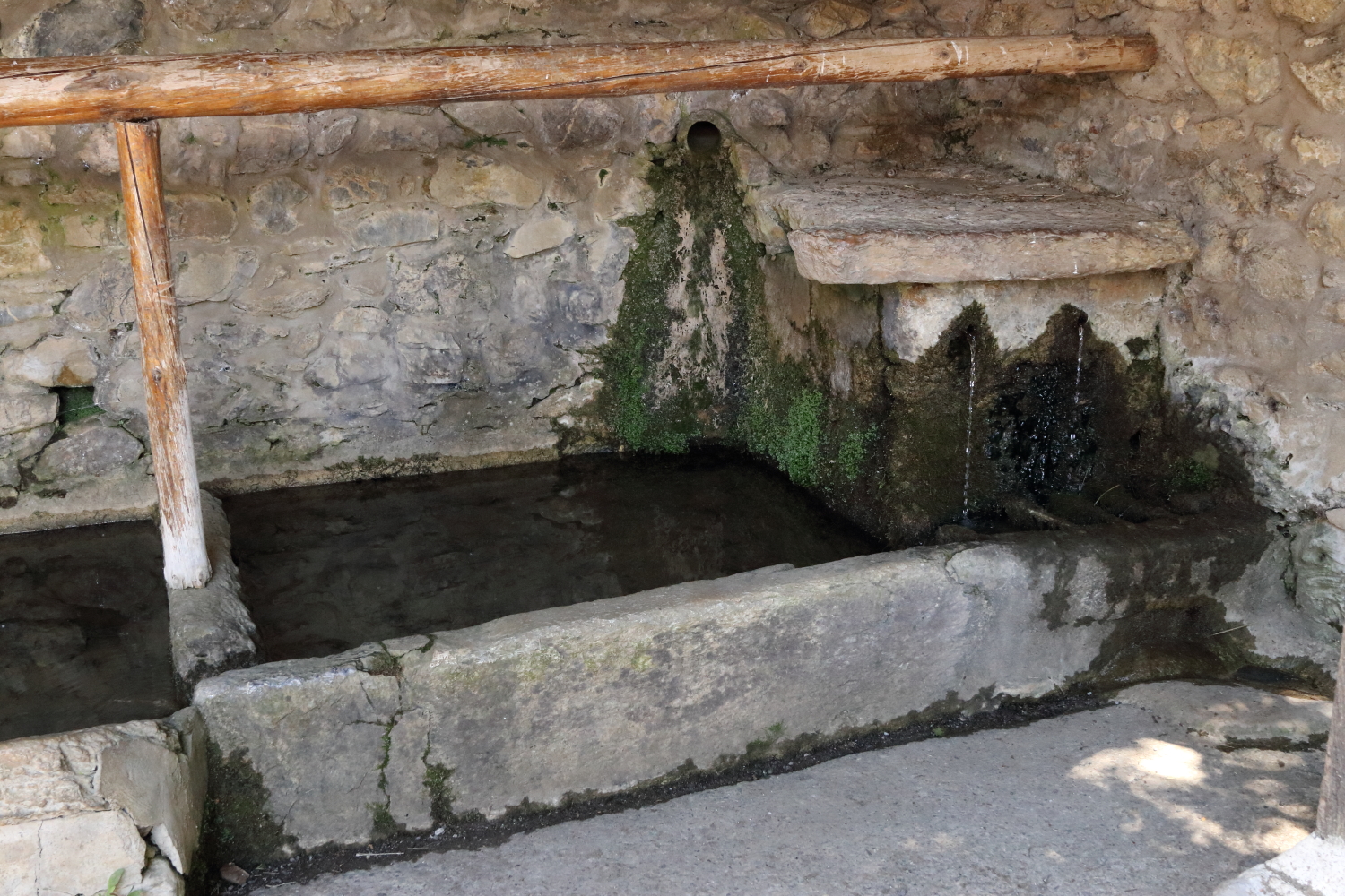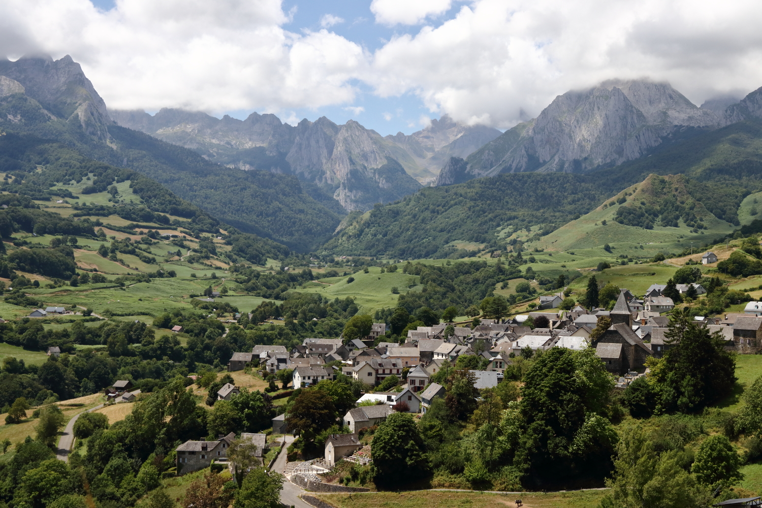 À 897 m, Lescun, petit bourg béarnais. Juste au-dessus du village, un belvédère déroule un panorama sur 180°. Pour leurs bêtes, les anciens ont su imaginer un efficient abreuvoir.