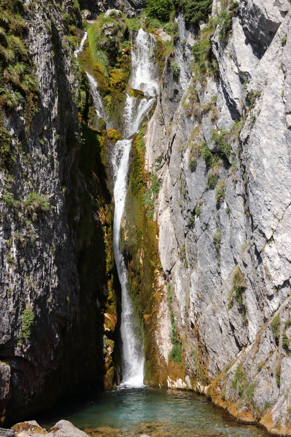 Arrivés aux bouts de nos efforts, le plateau de Sanchèse apparait devant nous. Un cingle plongeur s’immerge en quête de nourriture dans le ruisseau d’Anaye et des randonneurs intrigués un court instant par une formation rocheuse façonnée de cercles concentriques découvrent un labyrinthe de divertissement. Le fruit du désir ruisselle abondamment, la cascade était notre graal, une coupe qui allait nous rafraîchir de ses bienfaits.