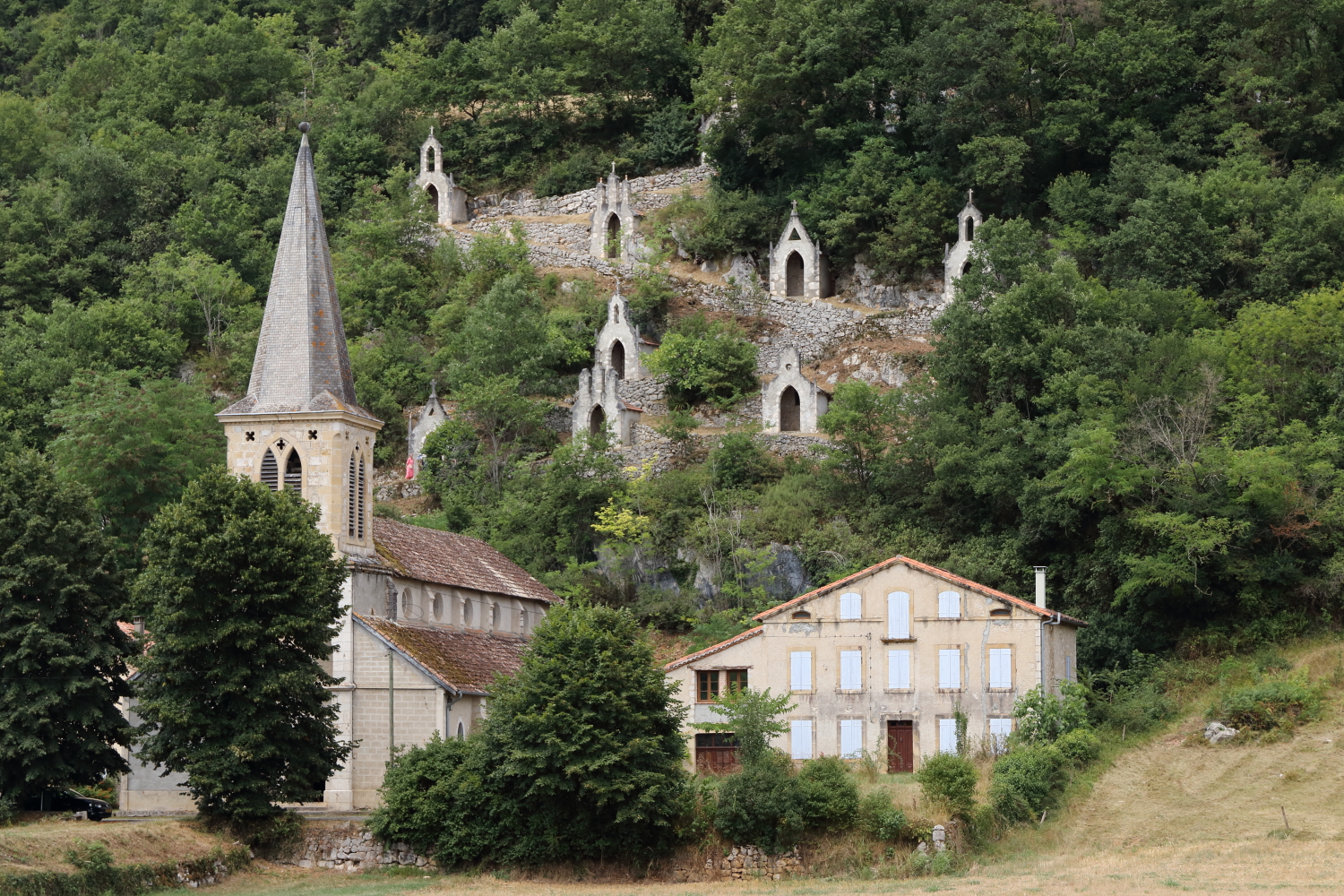 En route, nous apercevons l’église de Raynaude et son chemin de croix, celui-ci se termine avec le cimetière.