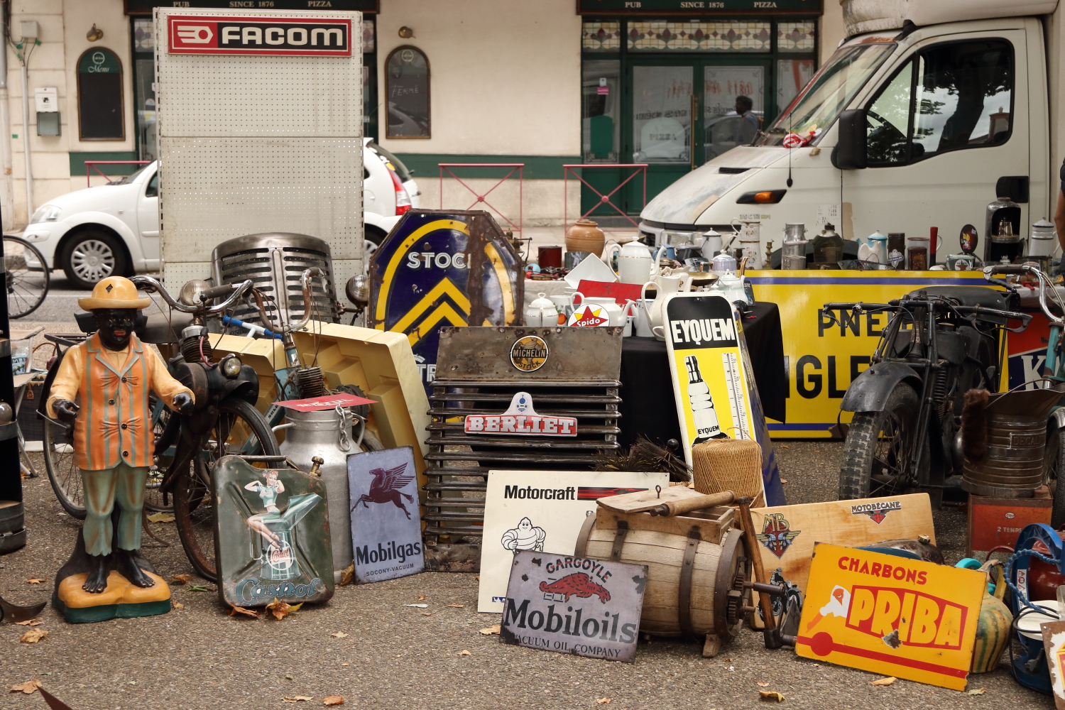 Avec son parcours de canoë-kayak, l’agglomération en fait la promotion un peu partout sur les murs. Nous avons terminé cette visite sous la halle, dans une brocante, objet de toutes les convoitises.