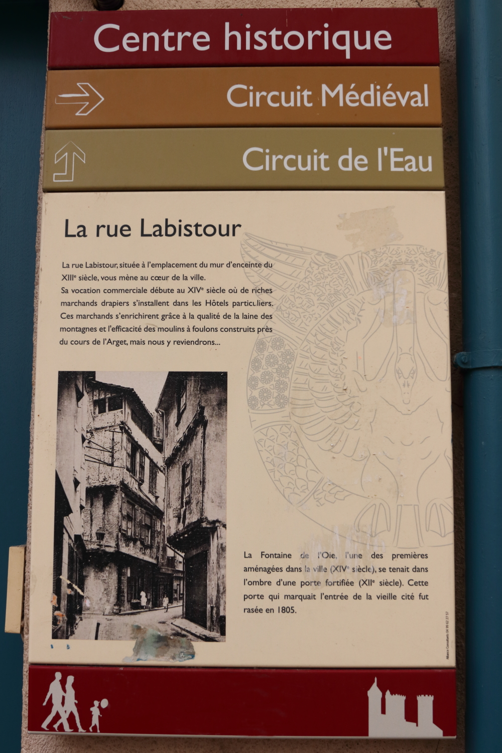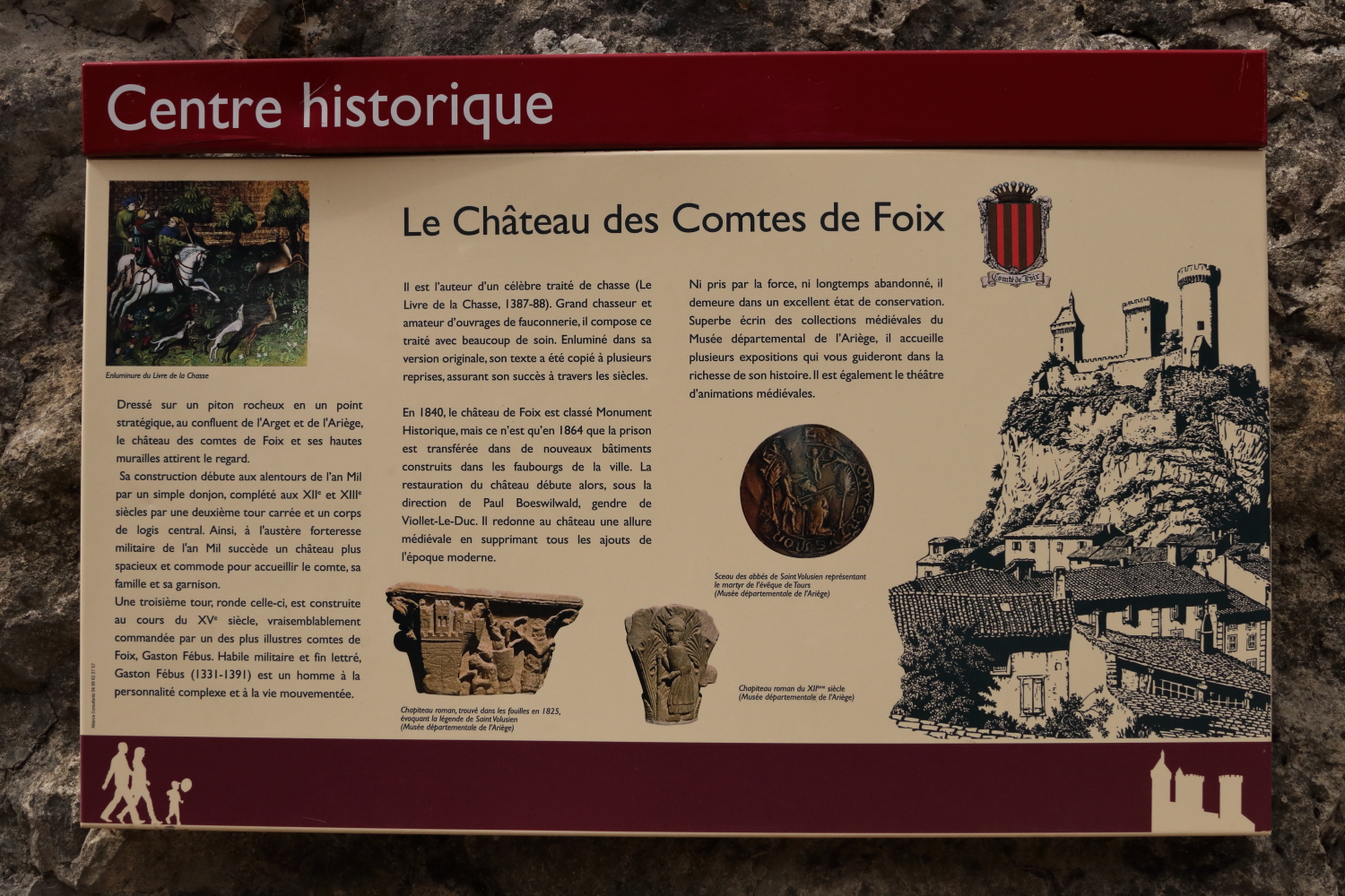 Foix est la préfecture et ancienne capitale du comté. Autrefois, son château verrouillait toute la région. La ville comptait deux rangées de murailles. Derrière les gouttières d’une habitation estimée du 15e siècle se cachent des motifs historiques.