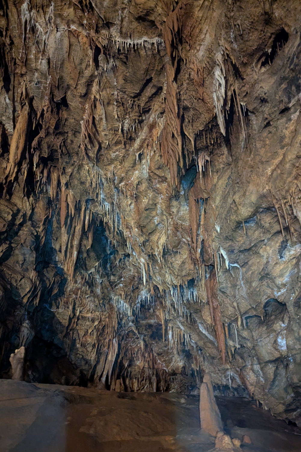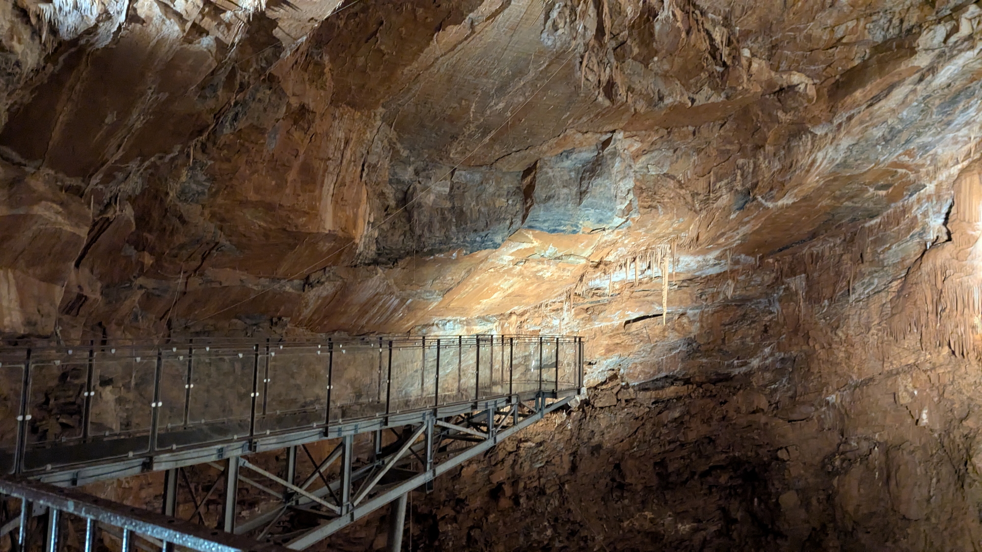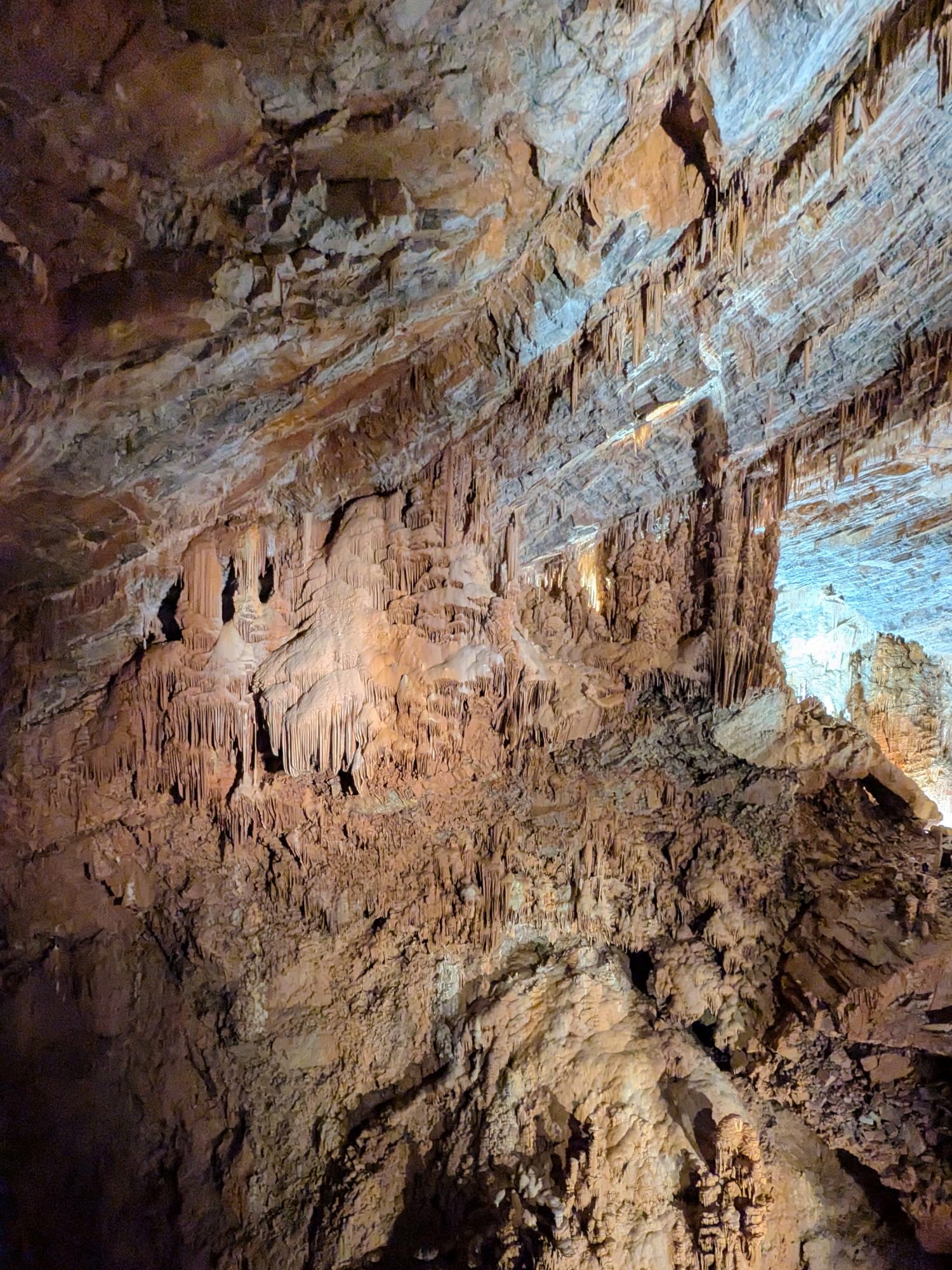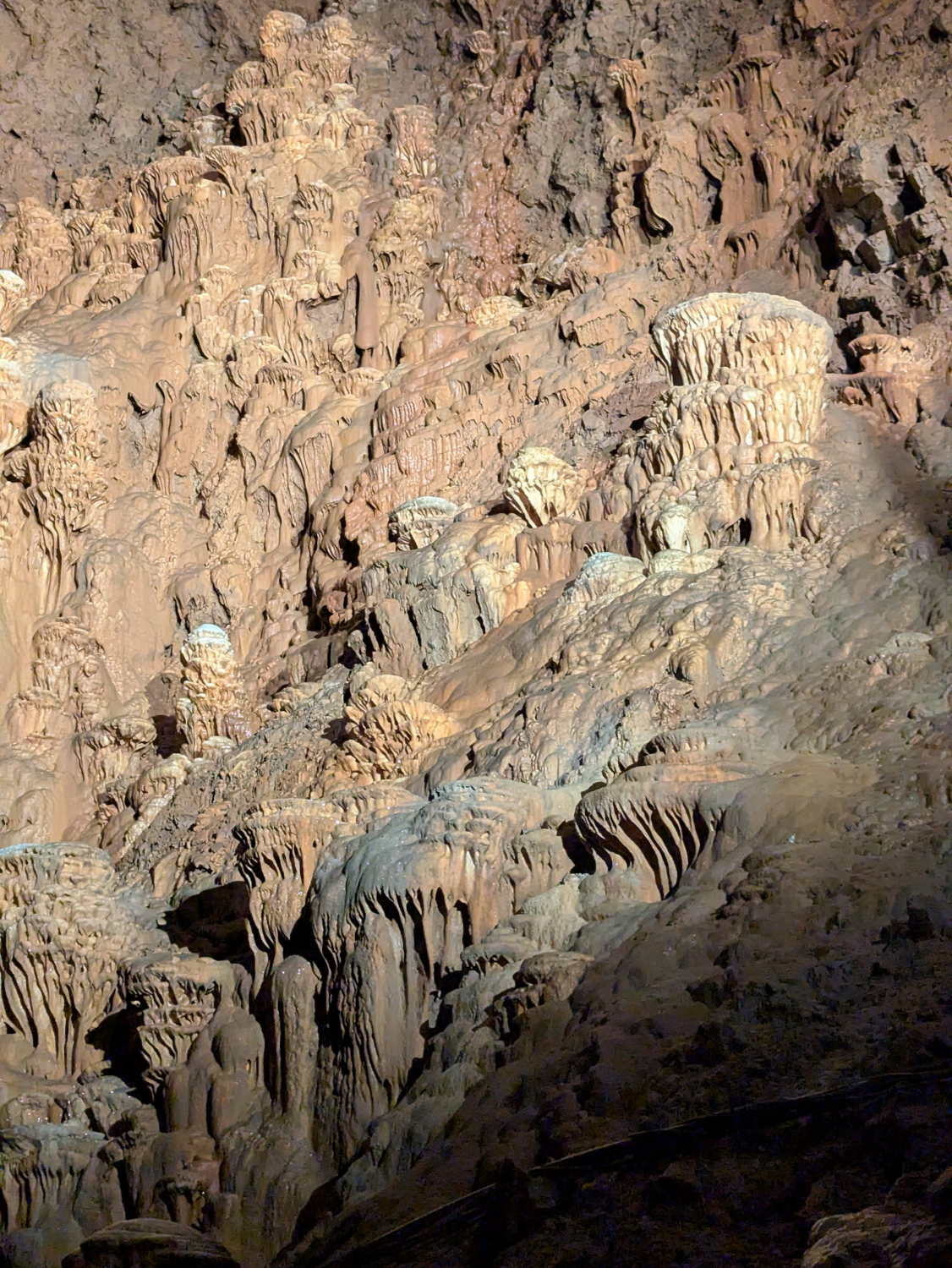 Nous nous sommes rabattus sur une autre découverte à 14 km plus au sud, le gouffre de Cabrespine. Plusieurs activités y sont proposées, j’ai choisi l’accro-grotte en précisant que cela requiert une bonne condition physique. Cette expérience m’a demandé un dépassement de mes limites, très content de l’avoir fait mais je ne m’y risquerais pas une deuxième fois. En effet, lorsqu’on est totalement débutant, on force plus que de raison. D’autre part et surtout, le port du casque associé à une combinaison quasiment hermétique m’ont conduit après 2 h 30 d’effort à une déshydratation (200 m de dénivelé + et -). Sur le parcours, le guide nous a offert un verre d’eau, conscient de l’effort consentit par ses nouveaux explorateurs. Malgré la lampe frontale, trouver ses repères dans la pénombre n’est pas chose aisée. Curieusement, ni le stress des exercices, ni le vertige ne m’ont gêné.