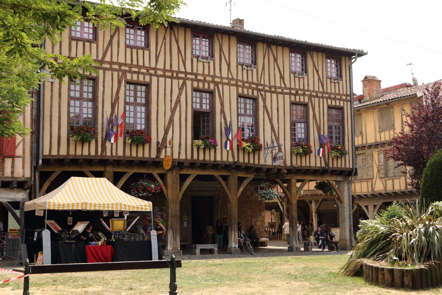 Pénétrer au cœur du centre historique de Mirepoix, c’est revenir à une époque très lointaine. Cette cité médiévale aux façades multicolores située en Ariège, reconstruite après une crue de l’Hers en 1289 sur un plan en damier, renferme une atmosphère très conviviale. Sur la place des Couverts, une poutre en chêne de 12 m de long et de 60 cm d’épaisseur soutient la Maison des Consuls ornée de ses 104 sculptures. La commune était en pleine préparation pour son festival.