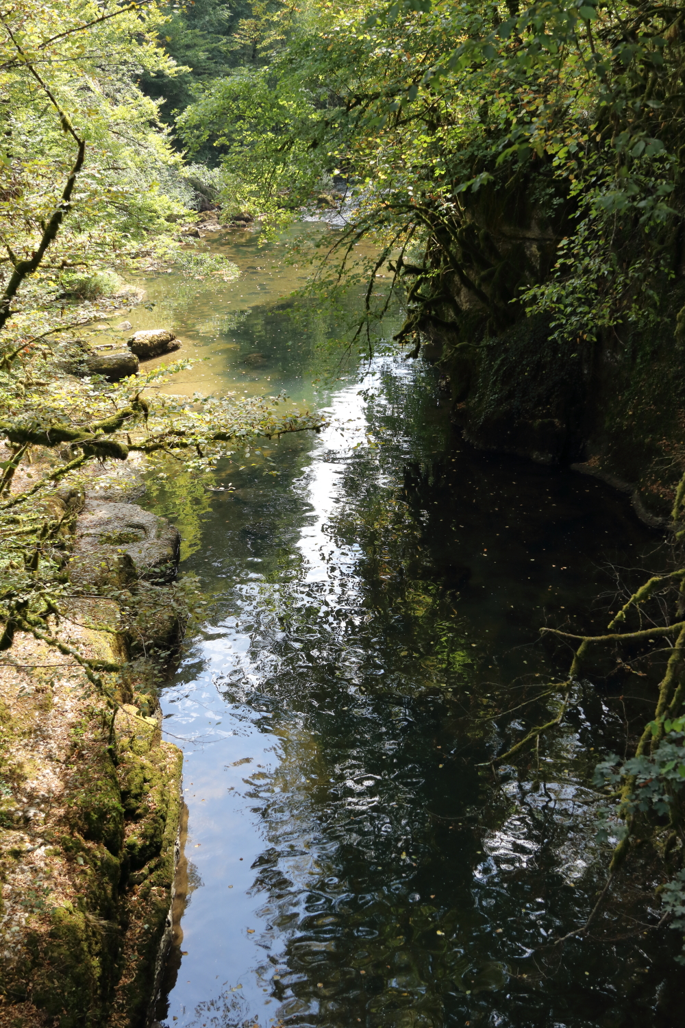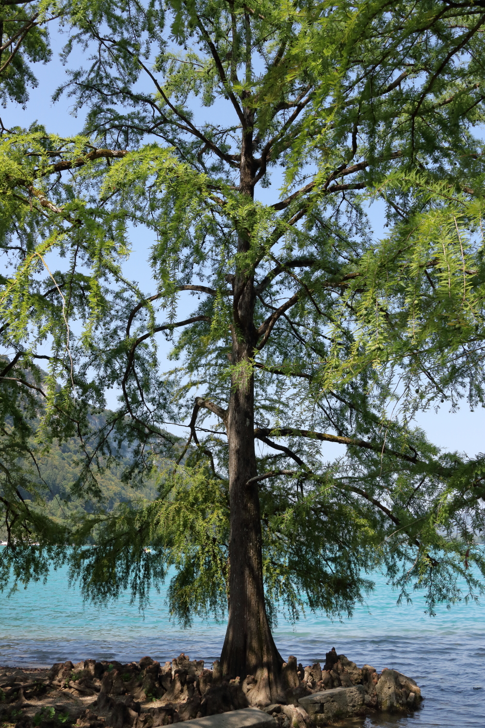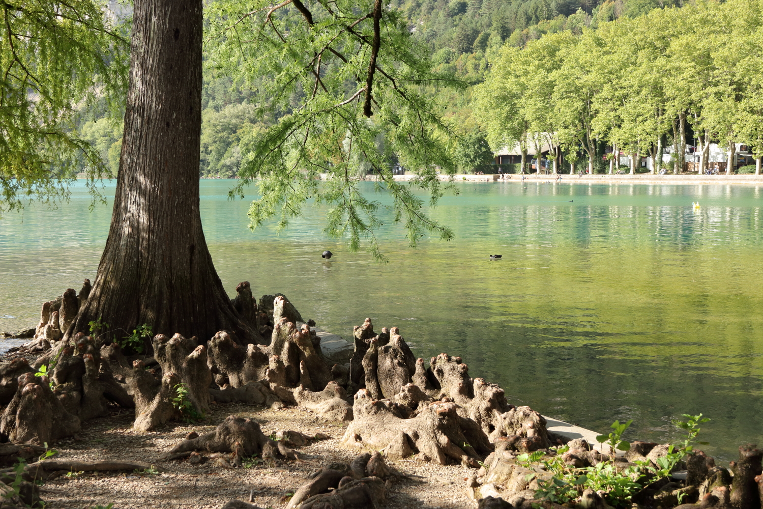 Par endroit, il est bordé de cyprès chauves dont les racines se confondent avec la roche.