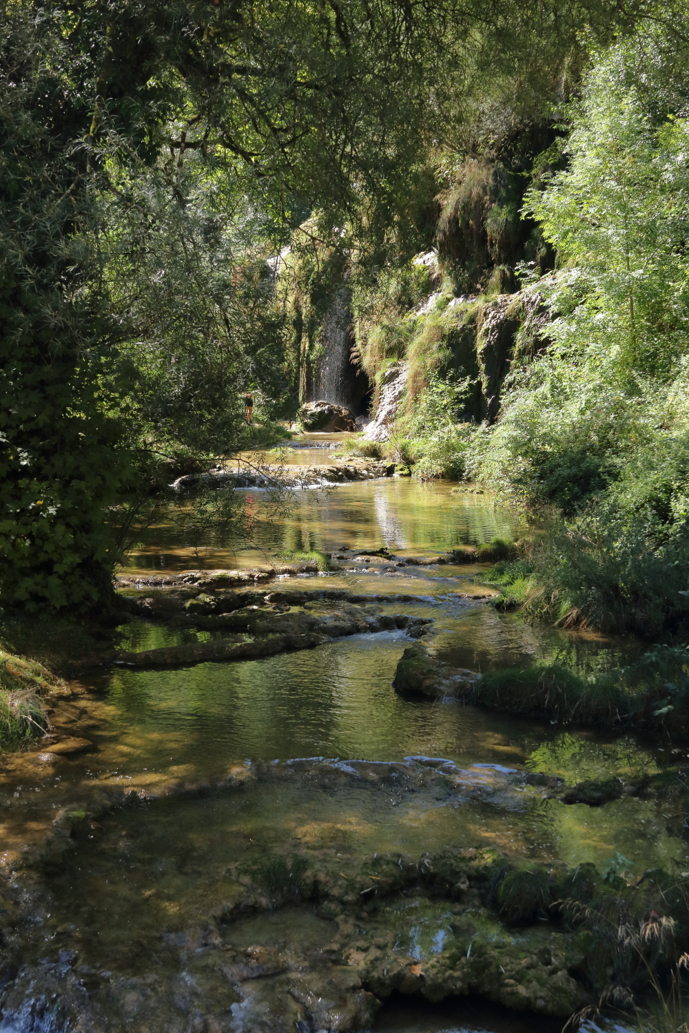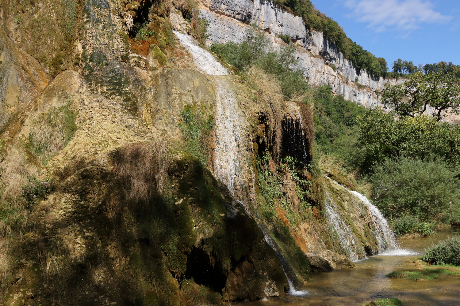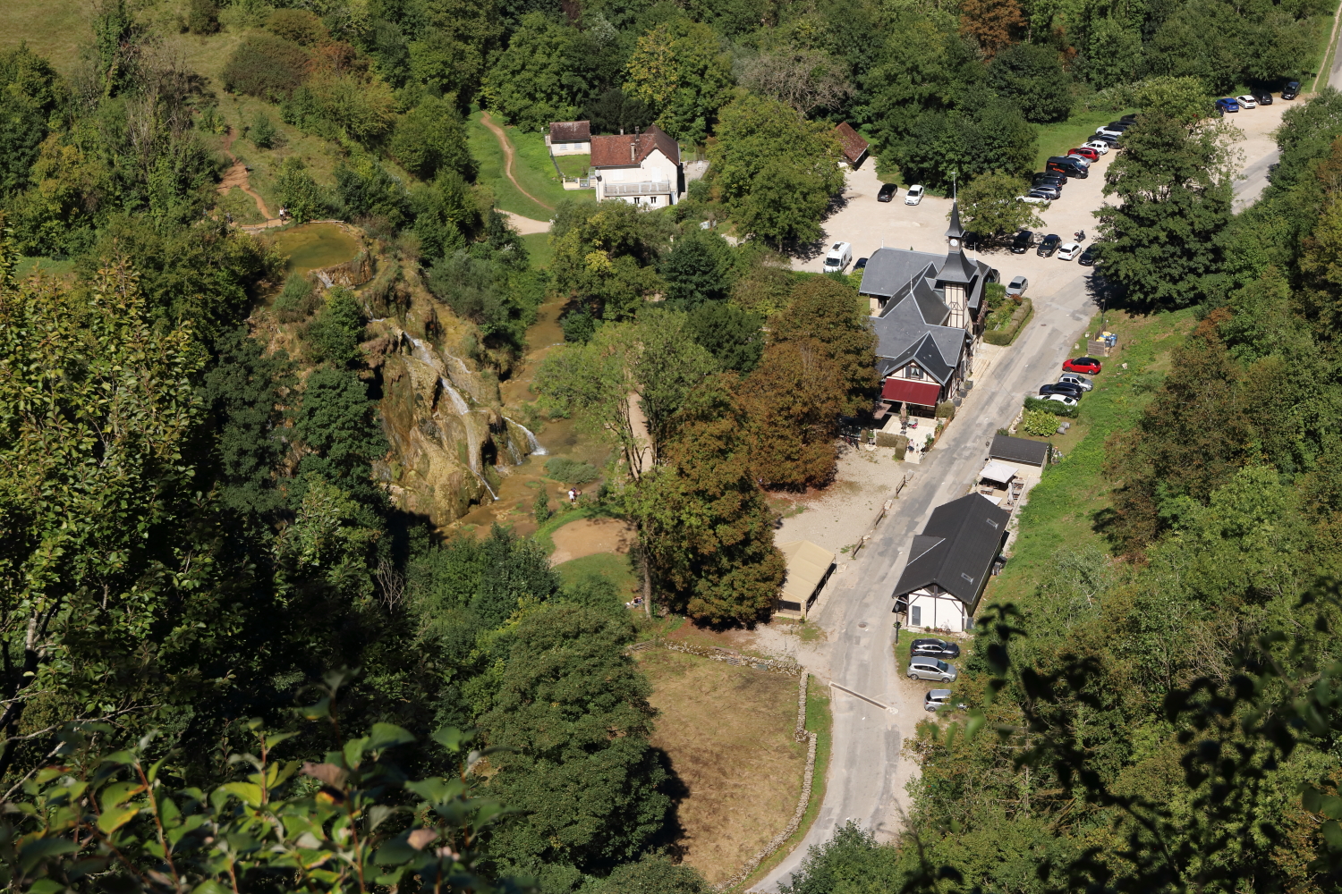 Au fond de sa vallée, la cascade des tufs, parmi les plus belles de France lors de son ruissellement au primtemps. Autre sortie recommandée à quelques mètres de là, sa grotte que nous avions eu l’occasion de visiter.