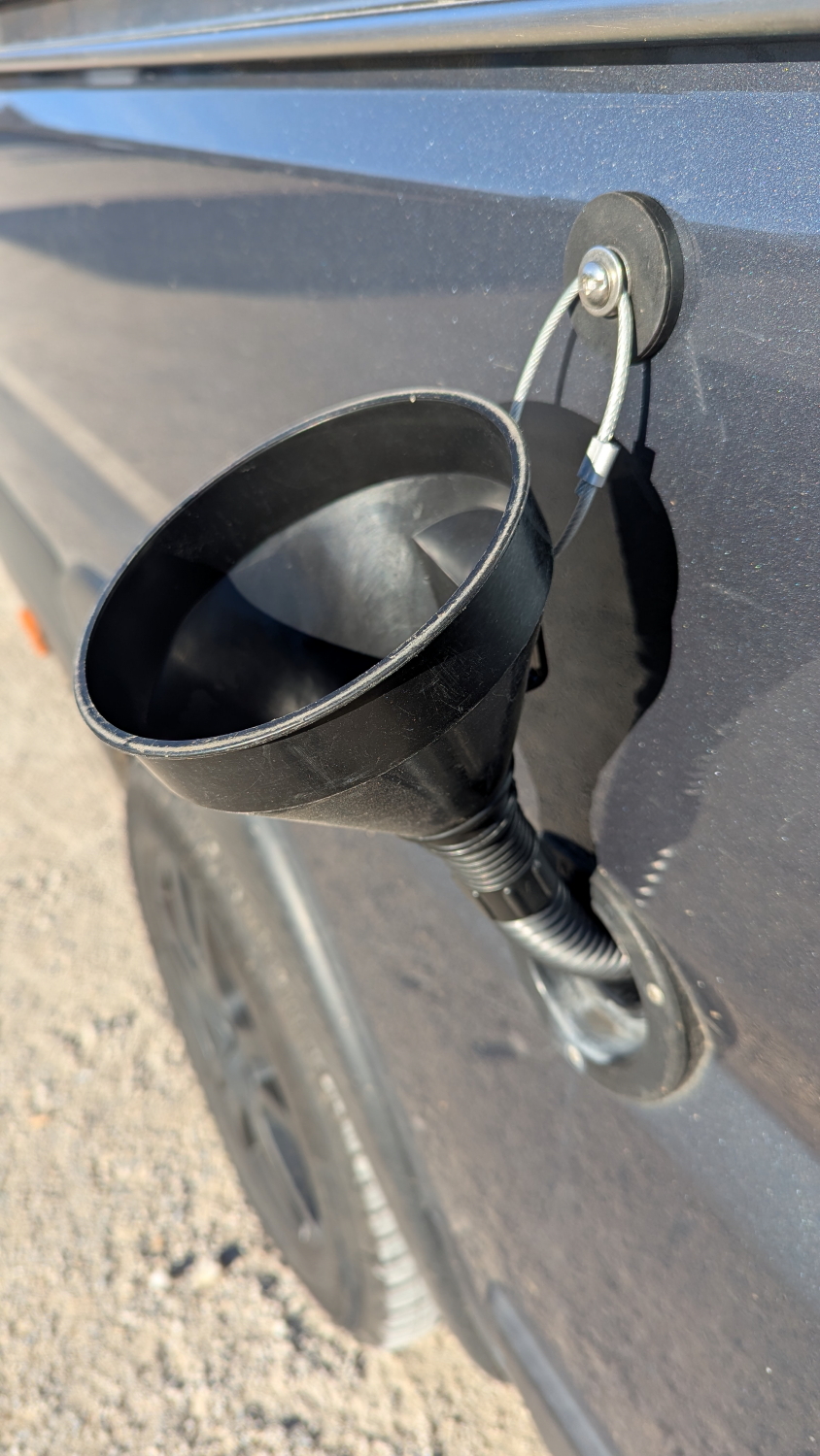 Dans la continuité de l’article précédent, une petite astuce que l’on peut faire partout dans son intérieur et qui évite de faire des trous si jamais on venait à changer d’avis. Une rondelle en acier inoxydable collée sur une paroi et un aimant permettent toute sorte de configurations pour fixer pas mal de bricoles en tout genre. Un exemple avec mon smartphone au-dessus de mon lit, chacun dispose de sa séance de cinéma avec son casque audio. Maintenir un entonnoir pour le remplissage en eau, sur les aires, Il arrive que le ravitaillement soit compliqué avec son tuyau habituel.
