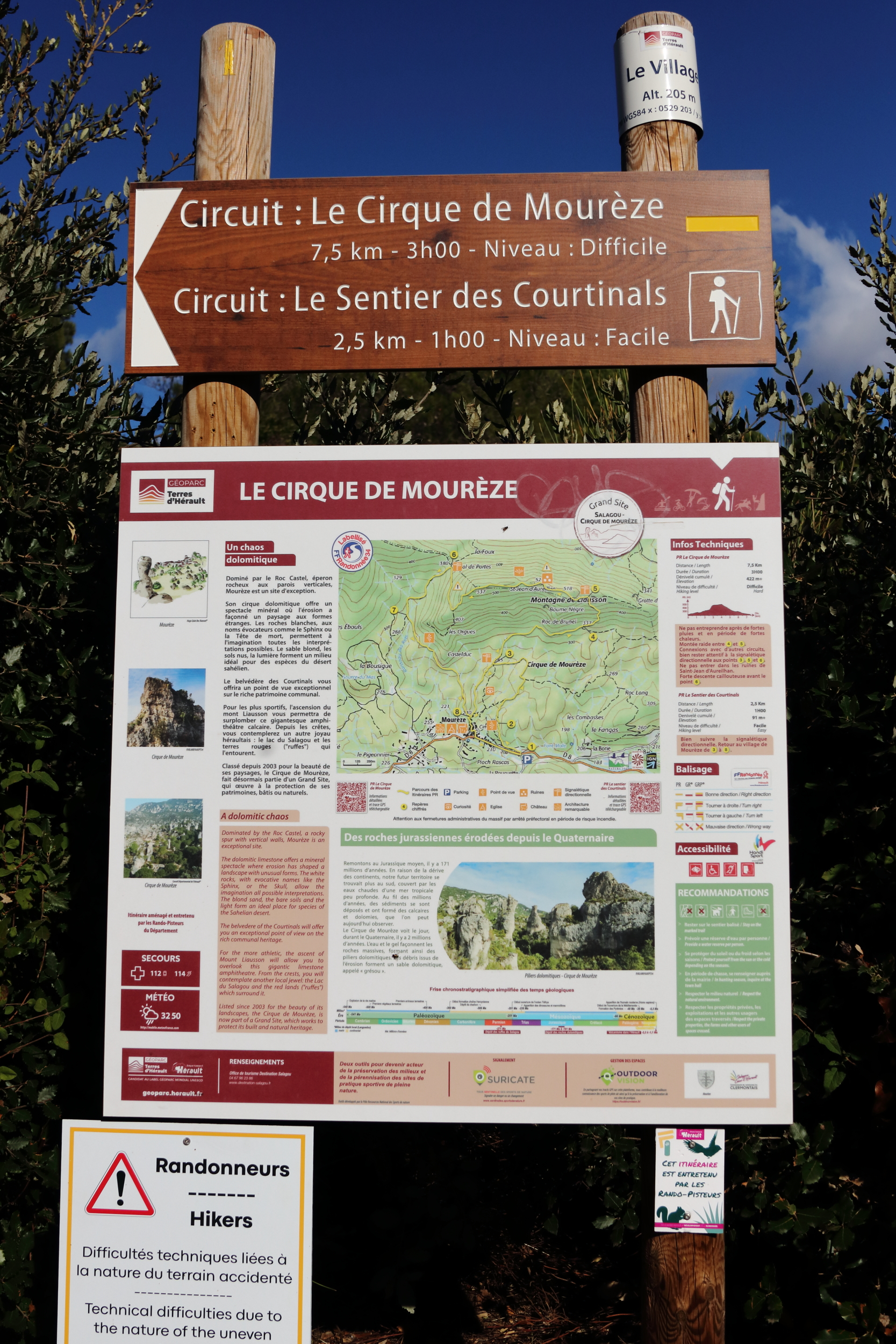 C’est une vue à 360° sur des dizaines de km sur le département de l’Hérault. Du fait de sa difficulté, le cirque de Mourèze est une randonnée qui se mérite . Le terrain est éprouvant car le pied est régulièrement en équilibre sur la roche, passage étroit et marches de plusieurs dizaines de cm, bref c’est physique. Un site géologique sculpté par l’érosion du temps, un décor insolite aux formes étranges.