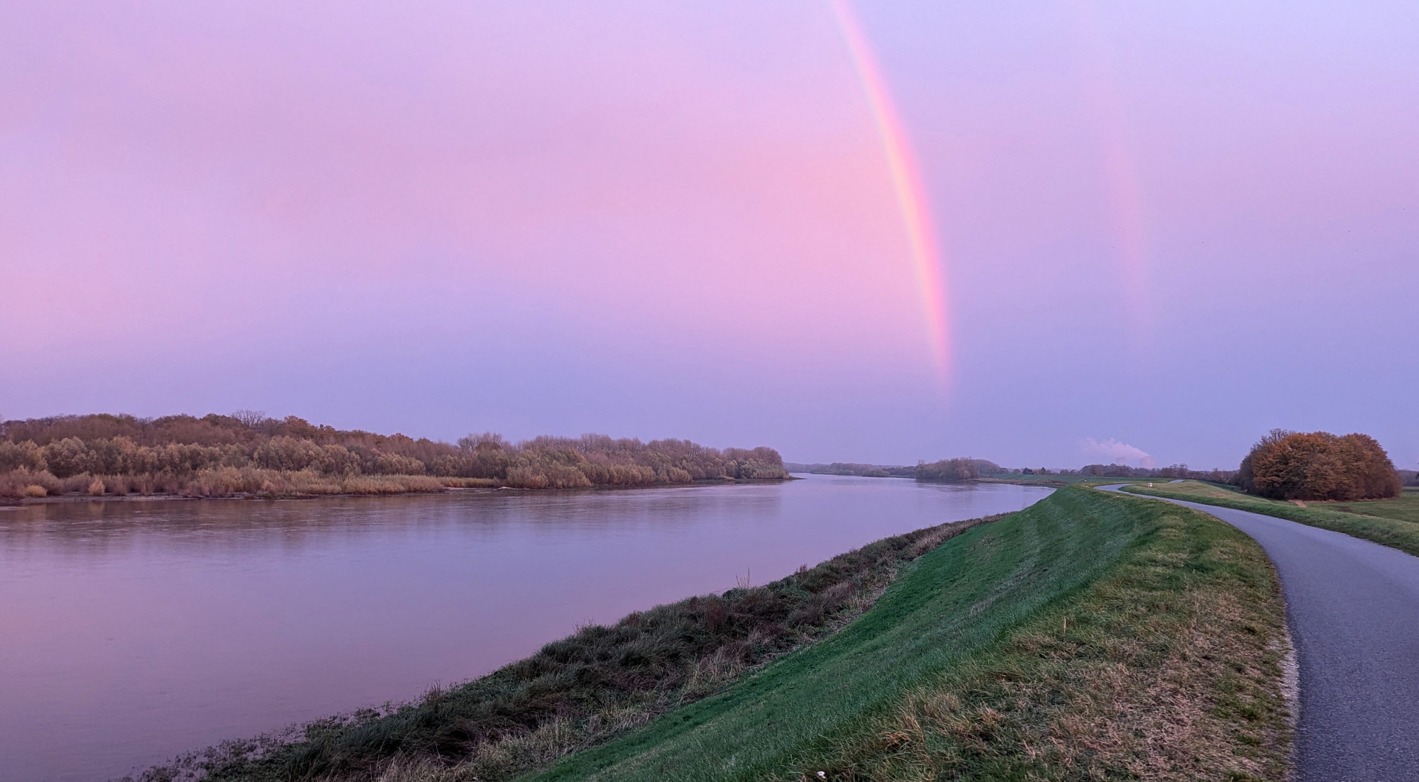 Une première nuit sur les rives de Sully-sur-Loire, souvent propice à un beau coucher de soleil. La nature nous a gâtés en plus d’un arc-en-ciel, c’est un de nos points de chute favoris en quittant l’Île-de-France.