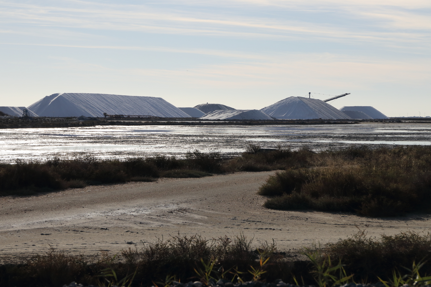 Nous sommes dans la Petite Camargue au sud du département du Gard. Dans les marais, l’évaporation étant insuffisante, la production de sel est à l’arrêt.