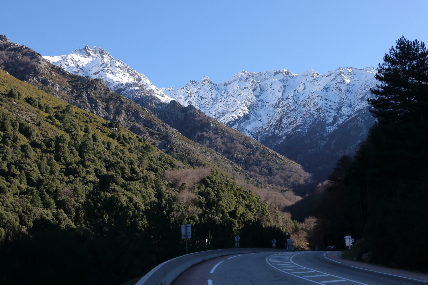 Le circuit Corte-Albertacce-Sagone emprunte la plus haute route de Corse, le col de Vergio (1477 m). Le mont Cinto atteint 2706 m, c’est le point culminant de la Corse. Durant ce parcours, le canyon de La Ruda et autres points de vue sont remarquables.