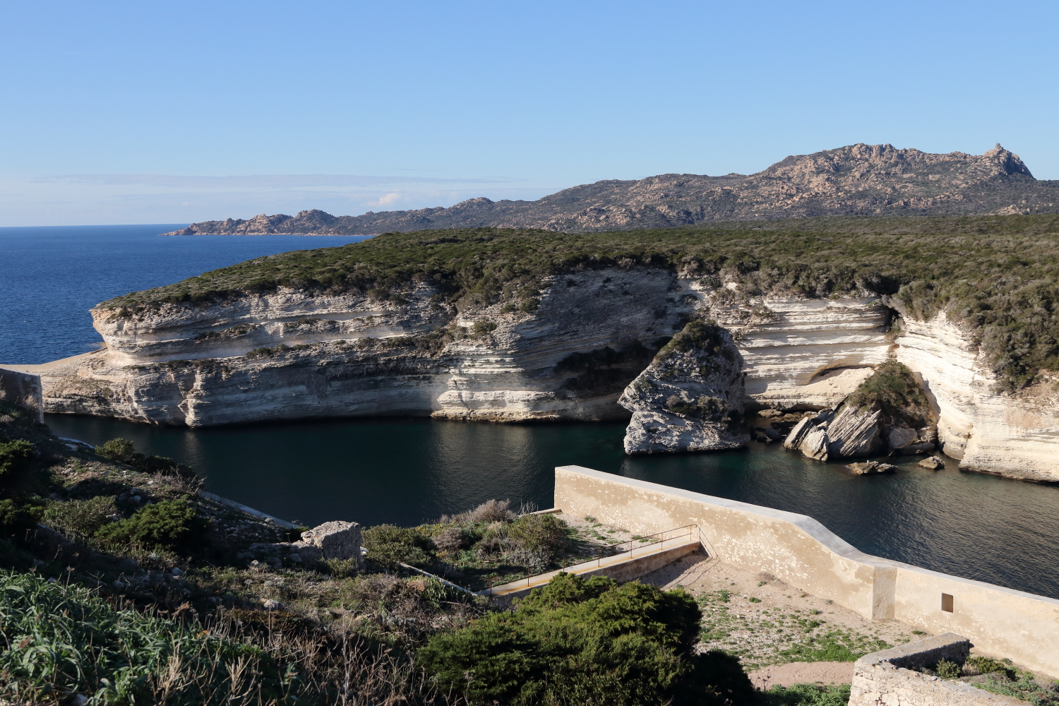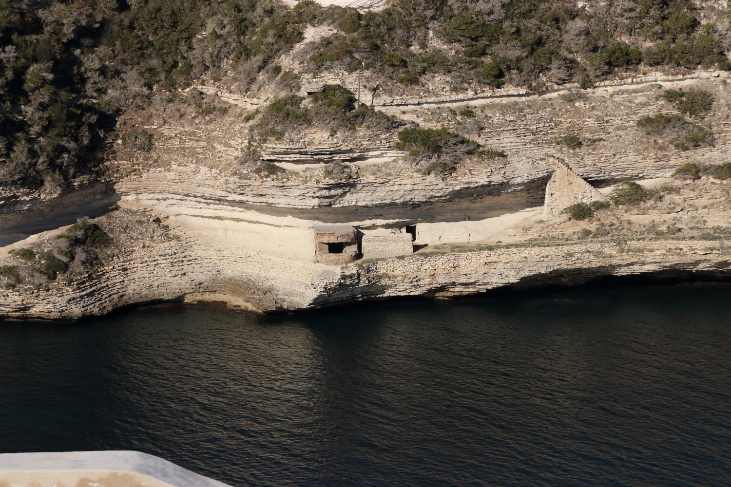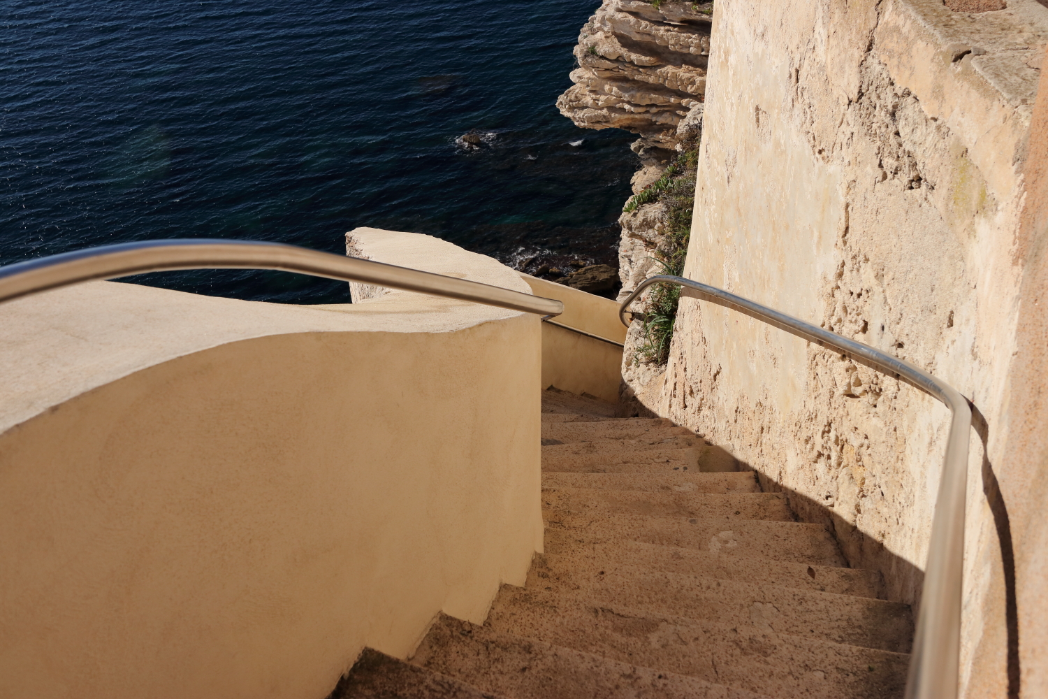 Entre la ville et la mer, la façade rocheuse comporte une incision. En 1420, selon la légende, l’Escalier du Roy d’Aragon aurait été creusé par les troupes de sa majesté en une nuit. Mais la vérité veut que des moines franciscains ont entaillé cette roche calcaire pour puiser de l’eau dans la grotte Saint-Barthélémy située en contrebas. Une déclinaison de 189 marches sur une pente à 45° avec un cheminement horizontal de 15 m au-dessus du niveau de la Méditerranée.