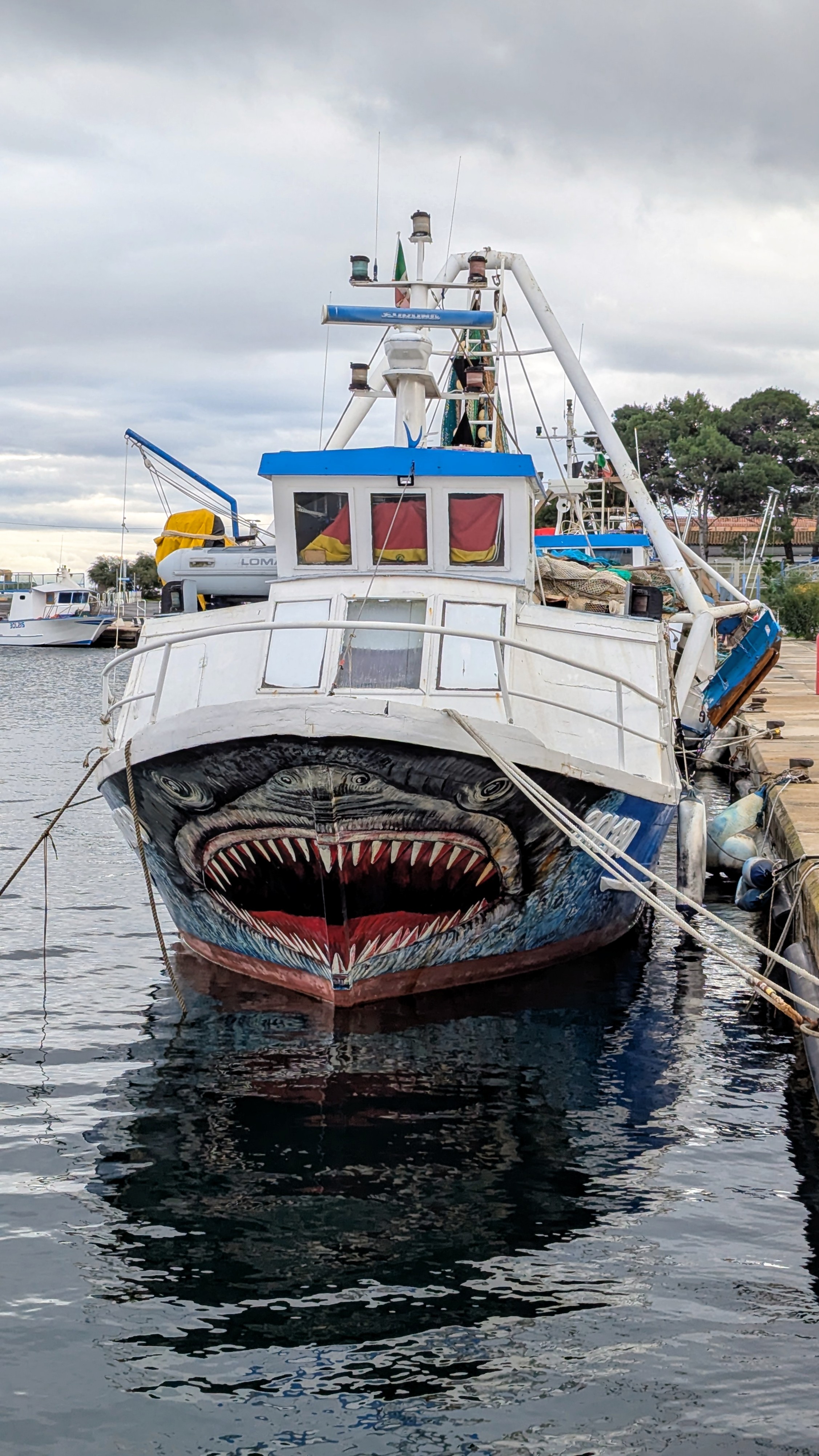 Nous continuons de descendre vers le sud le long de la mer Tyrrhénienne jusqu’à La Caletta, une petite bourgade de pêcheurs. La jetée du port est couverte d’une fresque gigantesque. En fin de journée, le ciel s’est embrasé, telle une flamme jaillissant des nuages.