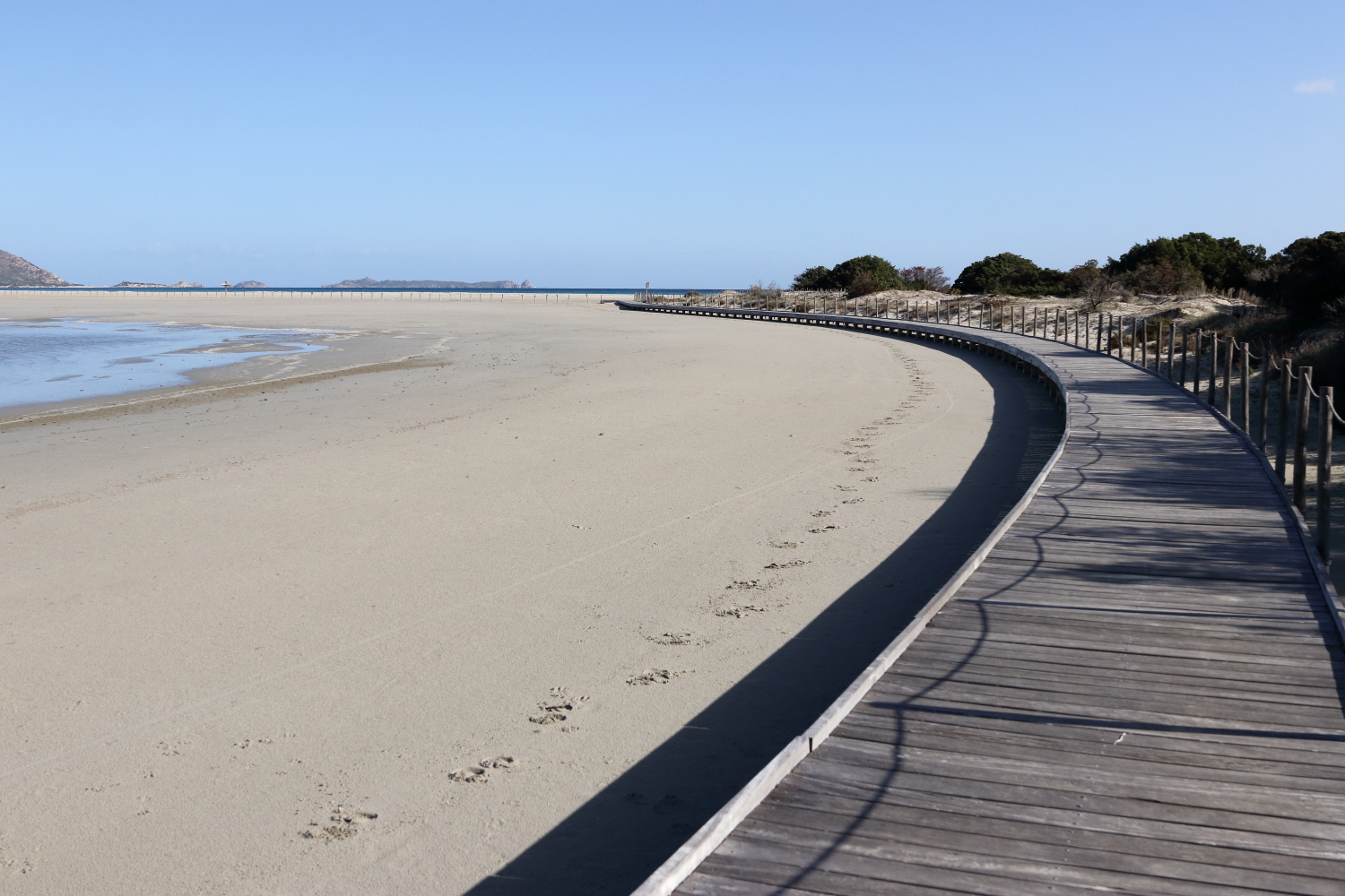 En arrivant au cap Carbonara, il y a une lagune classée réserve naturelle, Stagno di Notteri. Un cordon de sable sépare la limite avec la plage de Porto Guinco, le site est magnifique.