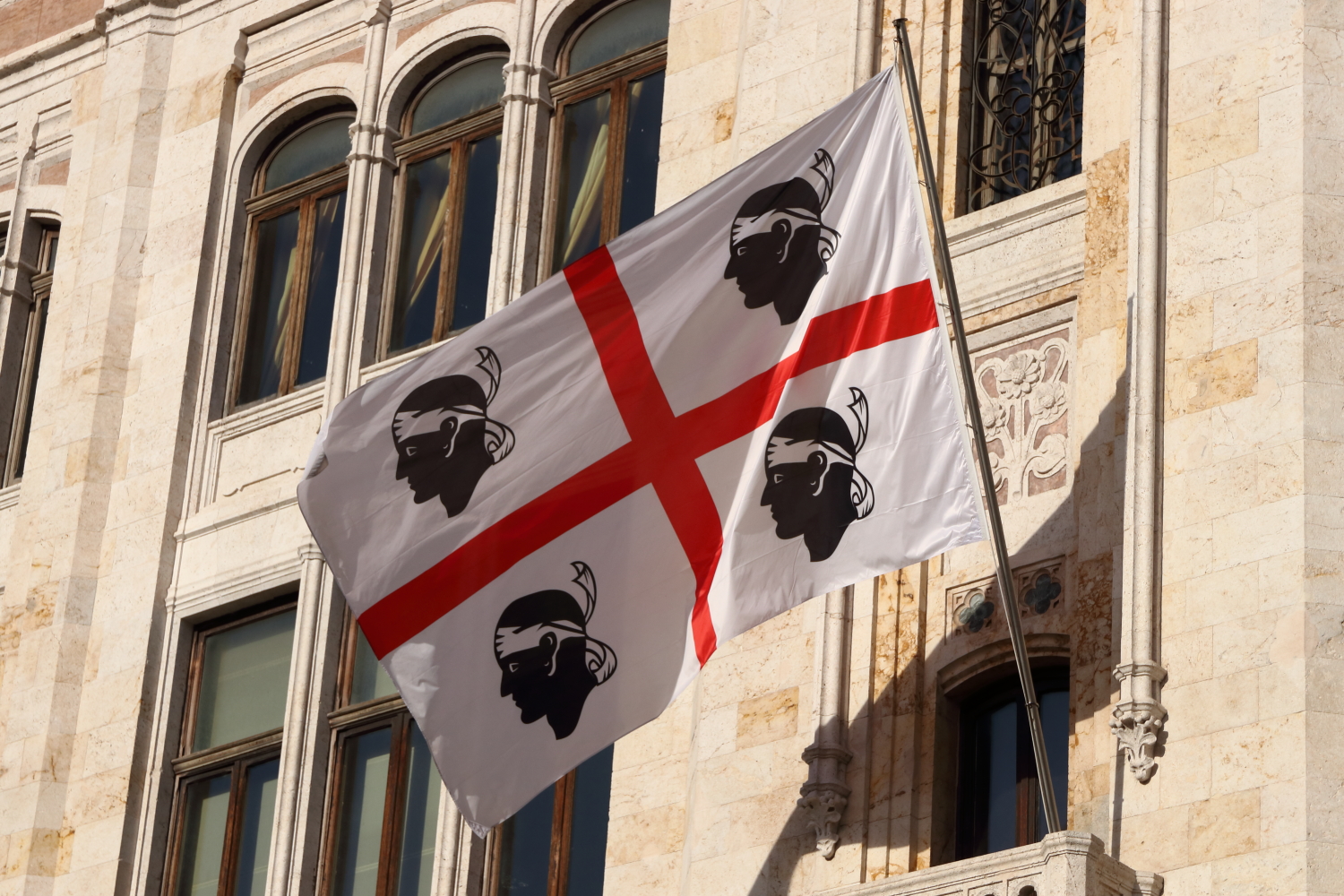 Composé de la croix rouge de saint Georges sur fond blanc, les quatres têtes de Maures rapelle la lutte contre les musulmans par le royaume d’Aragon. Officialisé depuis 1999 dans cette représentation , son ancienne version affichait des têtes aux yeux bandés.